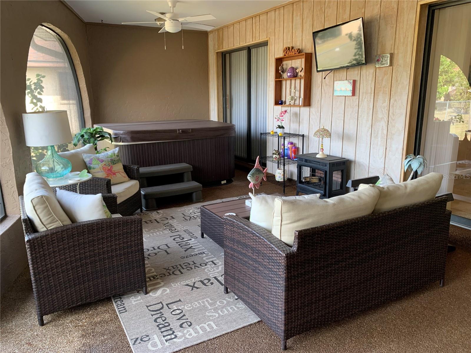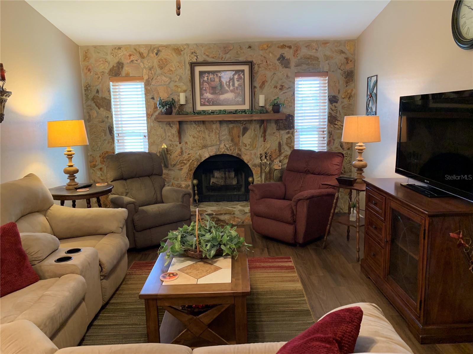 SELLER FINANCING AVAILABLE FOR OWNER OCCUPANTS with 20% down AND NO HOA AND NO FLOOD INSURANCE REQUIRED! This original Builder’s Parade of Homes Model is a stunning 3-bedroom, 2-bathroom, 2,000+ SF residence with a 2-car garage and is being sold FULLY FURNISHED AND TURNKEY, right down to linens, dishes, decor and the hot tub! This home also features a charming stone wall, wood-burning fireplace and a beamed vaulted ceiling in the family room that adds warmth and character to the space. The kitchen includes granite counters, stainless steel appliances and a tumbled marble backsplash. The large master bedroom boasts 2 walk in closets with modern wood shelving, as well as two separate vanities, a skylight, a walk-in shower and a tub/shower in the master bath. You read that right - TWO SHOWERS in the master bath! The second and third bedroom also feature walk in closets. The guest bath, with maple cabinetry, granite counters and a tub/shower functions as a pool bath, with a door to the lanai. The NEARLY 500 SQUARE FOOT LANAI is finished with T111 siding and features a granite counter pass through from the kitchen. The sliding doors all pocket behind the finished walls and there’s plenty of room for a dining area, a sitting area and the BUBBLING HOT TUB. This home has been meticulously maintained and updated to provide peace of mind and comfort. Updates and upgrades include BRAND NEW HURRICANE IMPACT WINDOWS, A NEW FRONT DOOR, NEW GARAGE DOOR, NEW SIDE ENTRY GARAGE DOOR, NEW RUBBER ROOF OVER THE LANAI, NEW GUTTERS, FRESH EXTERIOR PAINT, FRESHLY PAINTED INTERIOR DOORS AND TRIM, NEW HVAC (2023), NEW ELECTRICAL PANEL (2022), NEWER HOT WATER TANK (2021), METAL ROOF (2018), UPDATED KITCHEN with GRANITE COUNTERS, STAINLESS STEEL APPLIANCES and a TUMBLED MARBLE BACKSPLASH, UPDATED BATHROOMS AND PLANK TILE FLOORS IN HALF OF THE HOUSE. For extra storage, there is also a large storage shed in the backyard. And for Peace of Mind, the seller is also offering a One Year Home Warranty. There is nothing to do here but bring your toothbrush and move in. Check out this beautiful home today and be living your Florida Dream in no time.