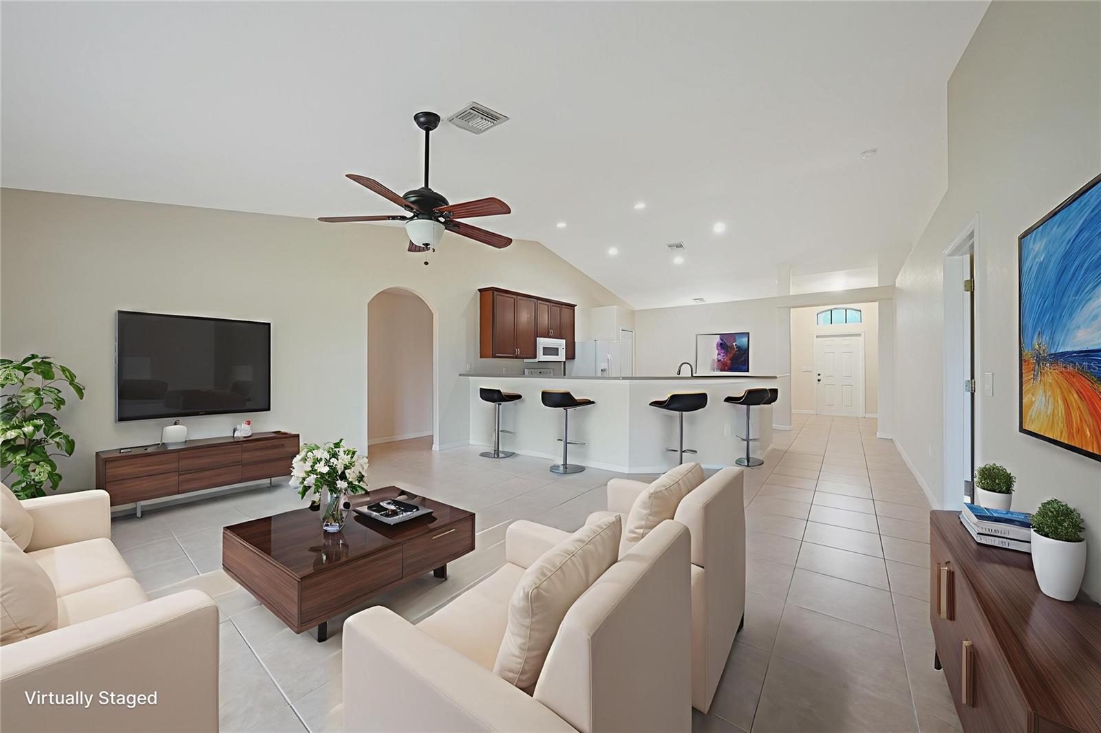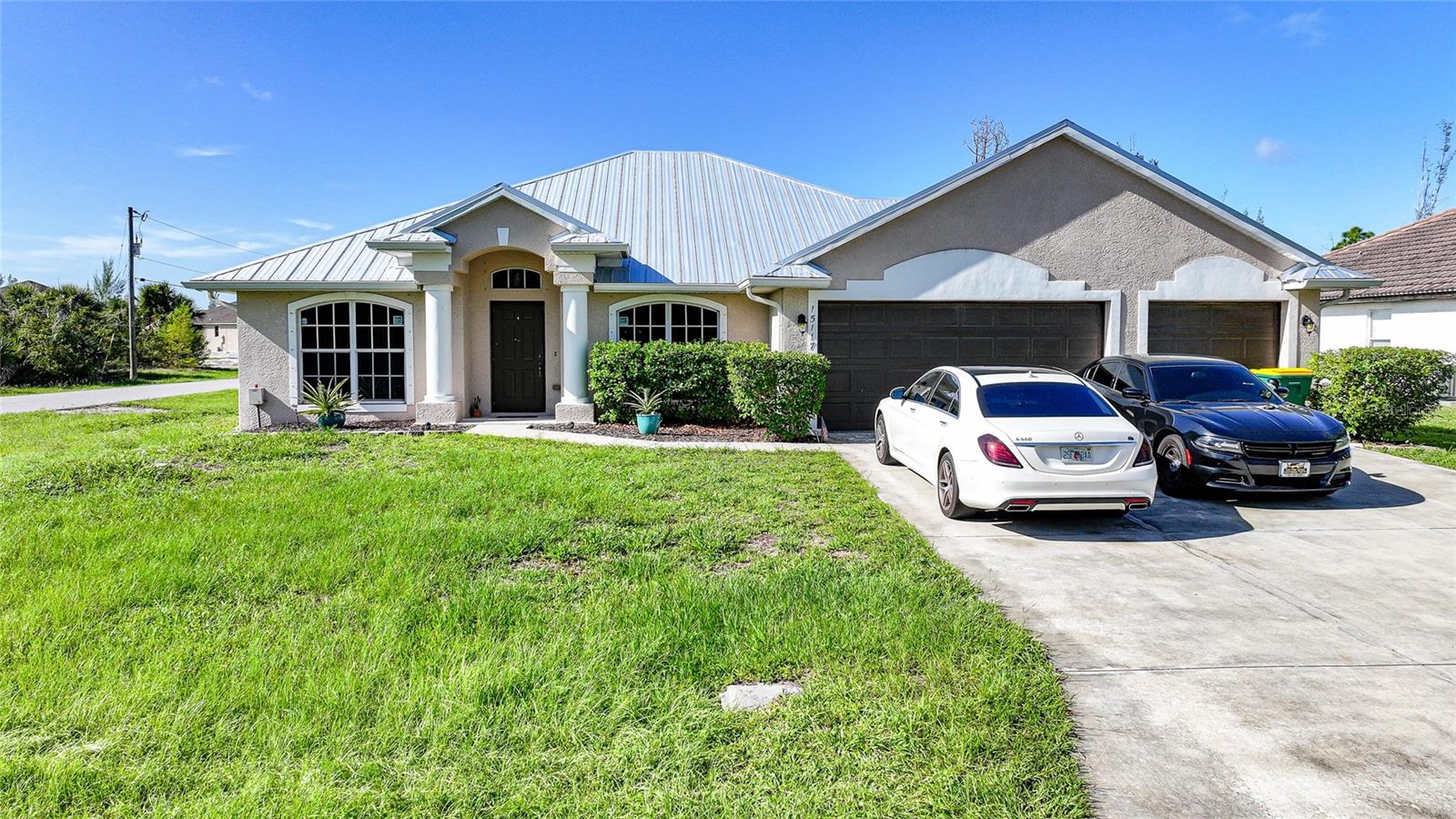 Tucked away in a quiet Port Charlotte neighborhood, 15117 Lyneburg Avenue offers the perfect blend of modern updates, spacious living, and a peaceful setting across from a tranquil canal. NO FLOODING OR FLOOD CLAIMS WERE EVER FILED! This beautifully refreshed 4-bedroom, 2-bathroom home, built in 2005, features 2,126 square feet of thoughtfully designed living space—ideal for families, retirees, or anyone looking for comfort and style in a convenient location. Recent renovations bring peace of mind and a fresh, modern feel. A brand-new metal roof installed in 2023 provides long-term durability, while new insulation, drywall, and interior paint throughout the home ensure energy efficiency and a clean, contemporary atmosphere. New gutters add both function and curb appeal, rounding out the exterior updates. Inside, the home welcomes you with an open floor plan that’s perfect for both everyday living and entertaining. The spacious living and dining areas flow into a large, functional kitchen with room for hosting or family meals. The split-bedroom layout offers maximum privacy, with the primary suite tucked away from the guest rooms and featuring a generous en-suite bath and ample closet space. Each of the additional bedrooms is spacious and versatile—ideal for guests, children, or a home office setup. Positioned across from a quiet canal, the property enjoys a sense of space and serenity, with no rear neighbors directly in front. Freshly painted garage floor and walls, lanai floor and front entry floor. With no HOA, you’ll have the freedom to make the home your own without additional restrictions or fees. Located just a short drive from shopping, dining, medical facilities, and the stunning beaches of Florida’s Gulf Coast, this home combines convenience with comfort in one of Southwest Florida’s most desirable communities.