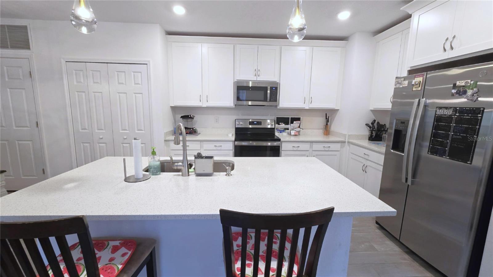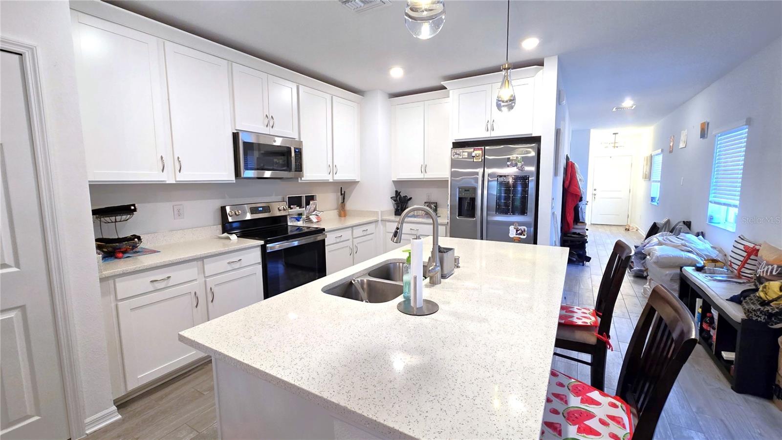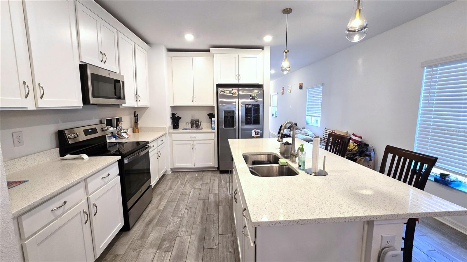 PRIVATE POOL Paradise minutes from Centennial Park! Discover the ultimate Florida lifestyle at 1992 Sunset Preserve Way, a stunning 3-bedroom, 2-bath home built in 2023 in the sought-after Hammocks of West Port. This modern, sunlit retreat features an open floor plan designed for both relaxation and entertaining. Step into the chef-inspired kitchen with 42-inch cabinetry, gleaming quartz countertops, and premium stainless steel appliances, the heart of this elegant home. The spacious great room seamlessly flows into your private backyard oasis, where a screened-in patio and sparkling pool await. Surrounded by lush landscaping and fully fenced for privacy, it's the perfect place to unwind or host family and friends. Location is everything, and this home has it all. Just half a mile from Centennial Park, you’ll have access to world-class recreational amenities, including indoor pickleball and basketball courts, volleyball, a fitness center, meeting spaces, a community garden, and a challenging 18-hole disc golf course. The Aquatic Center’s public pool and nearby baseball, softball, and soccer fields offer even more ways to stay active. Small fee for membership of Centennial and Aquatic Center.