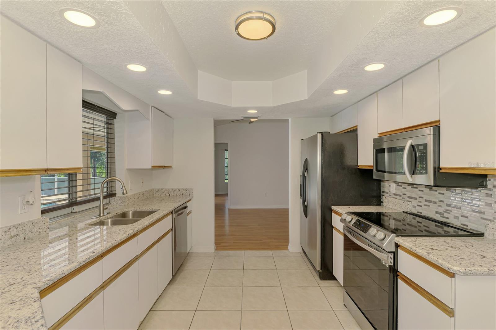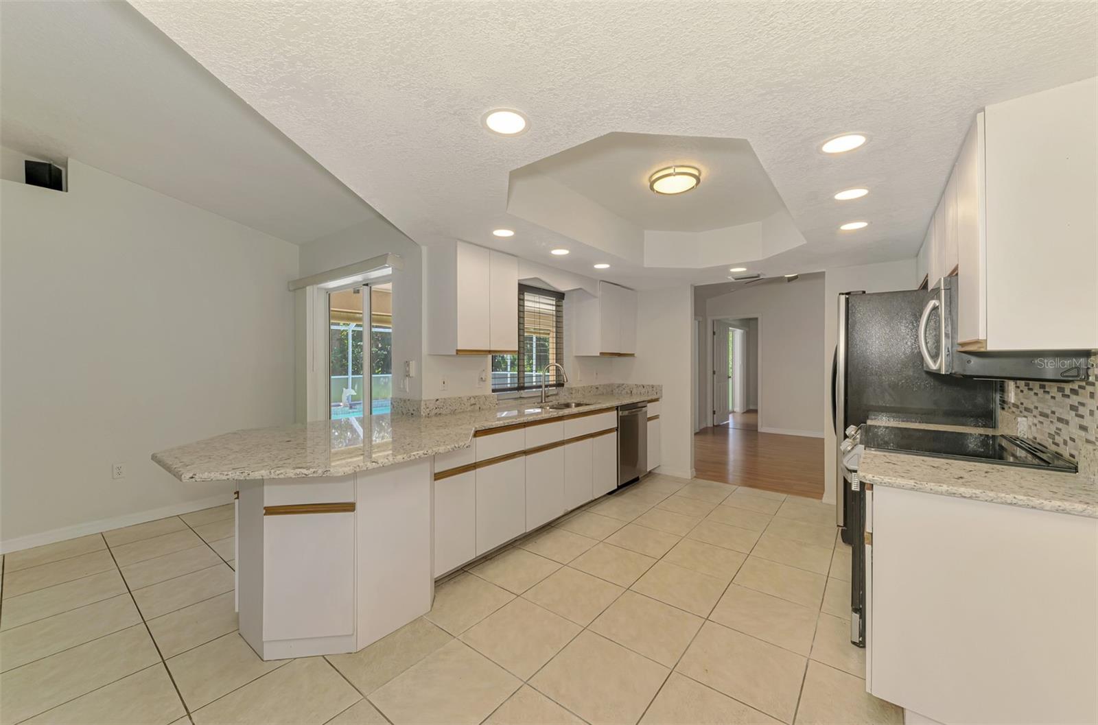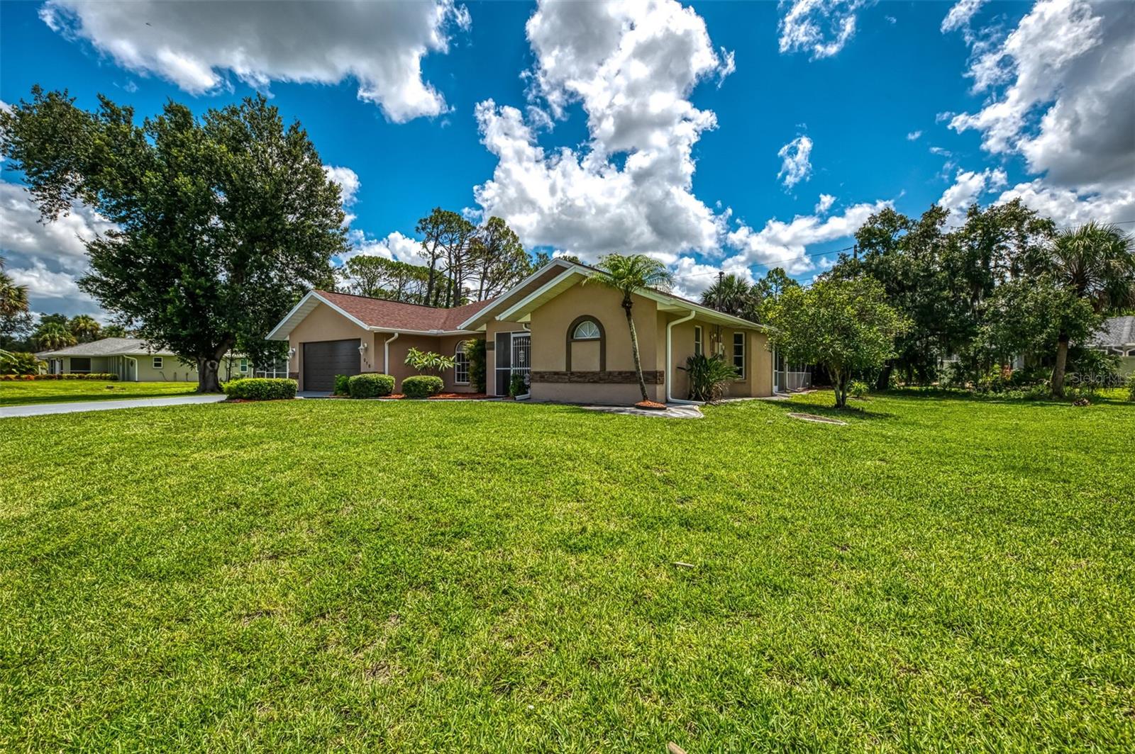 NEW IMPROVED PRICE! SPACIOUS 3-2-2 POOL HOME ON 2 CITY WATER LOTS WTIH A 3RD LOT ON SIDE NEGOTIABLE! HUGE LANAI! OVER 1900 SQ. FT OF LIVING! Discover the perfect blend of luxury and comfort in this remarkable multi-level home, set on two expansive city water lots (21,115 sq. ft.) in a serene, tree-lined neighborhood. With over 1,900 sq. ft. of beautifully upgraded living space, this 3-bedroom, 2-bathroom home offers all the room you need for relaxation, entertainment, and everyday convenience. There’s even an exciting opportunity to purchase a third side lot, expanding your possibilities! Step inside and be greeted by a large, screened, tiled foyer that leads to the elegant double door entry. As you walk through, you’ll find a spacious living room, a formal dining room, and a large family room adjacent to the kitchen, providing a natural flow that’s ideal for gatherings or quiet moments. The heart of this home, the kitchen, boasts stainless steel appliances, granite countertops, and a huge breakfast bar, all beneath a stylish tray ceiling with recessed lighting. The double pantry ensures you’ll never be short on space, and a convenient pass-through window allows easy serving to the pool area. Speaking of the pool, the expansive 32x33ft lanai is one of this home’s highlights. It surrounds the multi-level in-ground caged pool, complete with a dolphin spray fountain and a built-in planter—perfect for outdoor relaxation or entertaining. You’ll enjoy easy access to the pool area from the master bedroom, kitchen, dining area, and guest bath—the ultimate convenience for poolside fun. The master suite is a peaceful retreat, offering ample space for your furnishings and a bump-out area for extra room. Sliding doors lead directly to the pool area, while the en-suite bath features an upgraded tiled walk-in shower with a glass door, a separate tub, and a dual-sink vanity for added luxury. The guest bathroom is also beautifully updated, with a tiled shower and direct access to the pool area, making it both functional and stylish. All the bedrooms come with laminate wood flooring, remote ceiling fans, and generous walk-in closets, ensuring both comfort and practicality. Other recent upgrades include a new roof (2022), new lighting fixtures, remote ceiling fans, fresh interior paint, a newly painted driveway and sidewalk, and much more. The oversized laundry room comes equipped with a full-size washer and dryer, a wet sink, and above-cabinet storage—adding even more value and convenience. Located near shopping, dining, and entertainment options like Coco Plum Shops, Atlanta Braves Stadium, Costco, and Sam’s Club, this home offers the perfect combination of peaceful living with quick access to everything you need. Plus, with easy access to I-75 and the beautiful Gulf beaches, you’ll have the best of both worlds. Schedule a private viewing today and experience everything this incredible home has to offer!