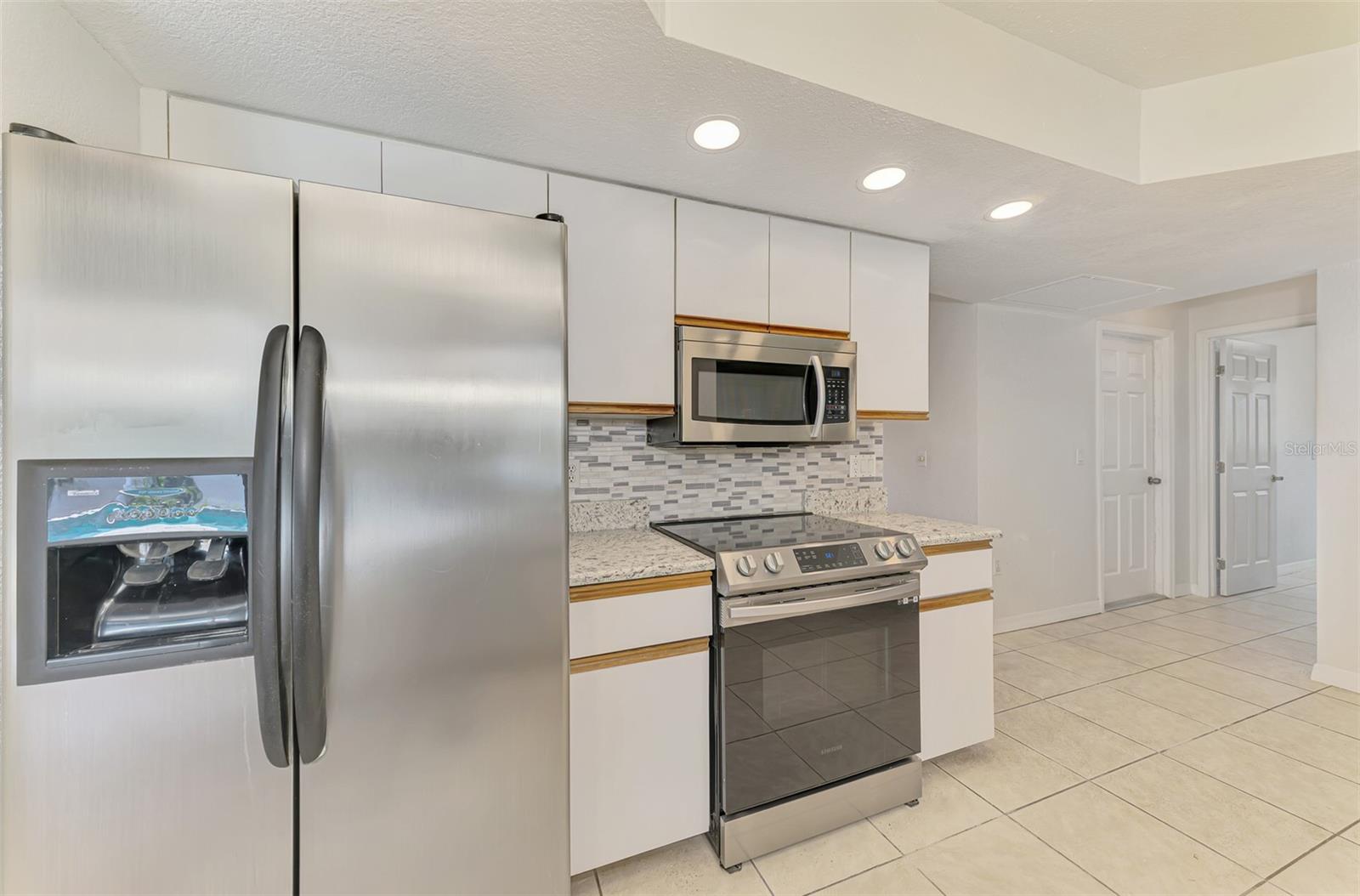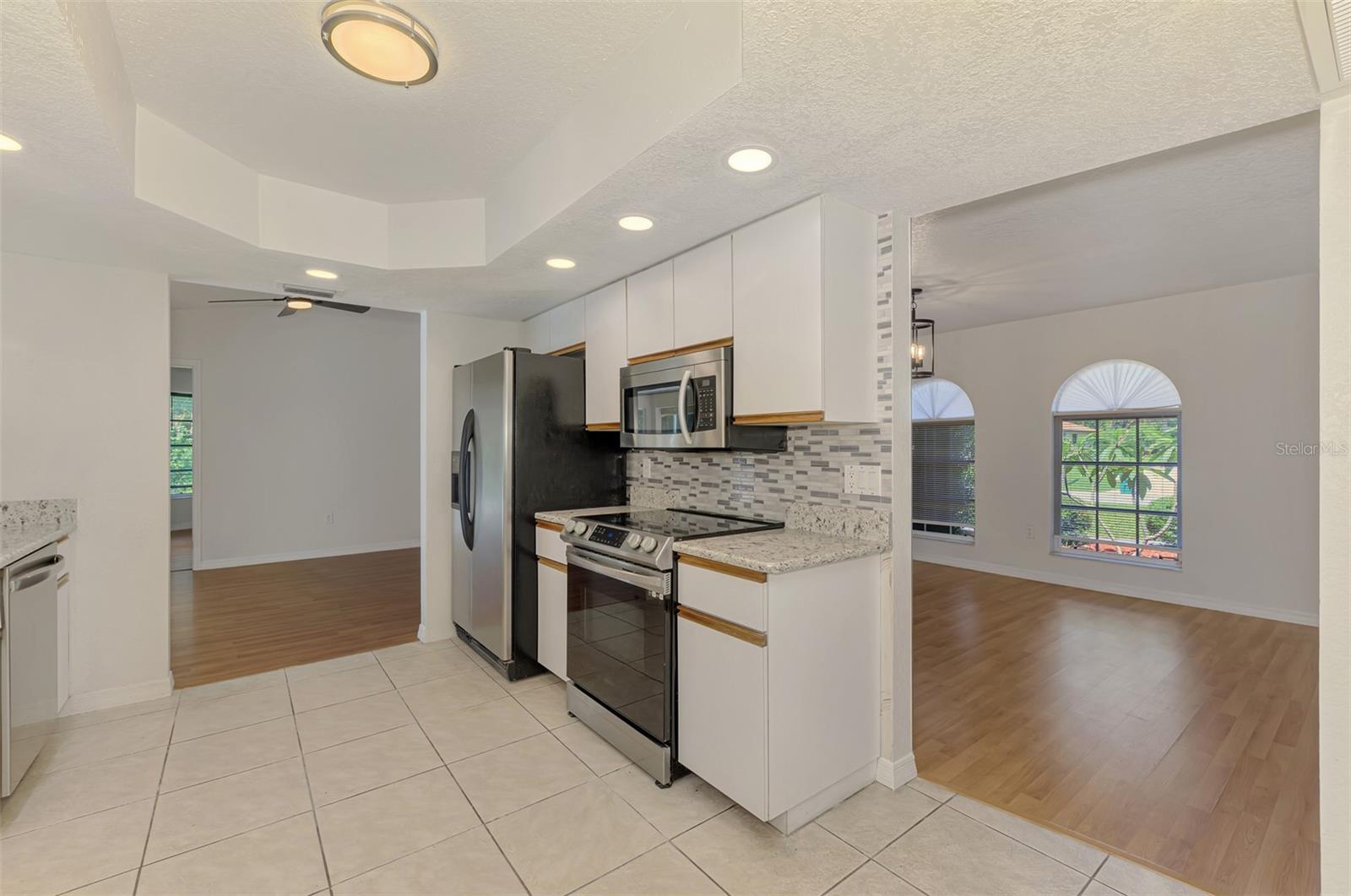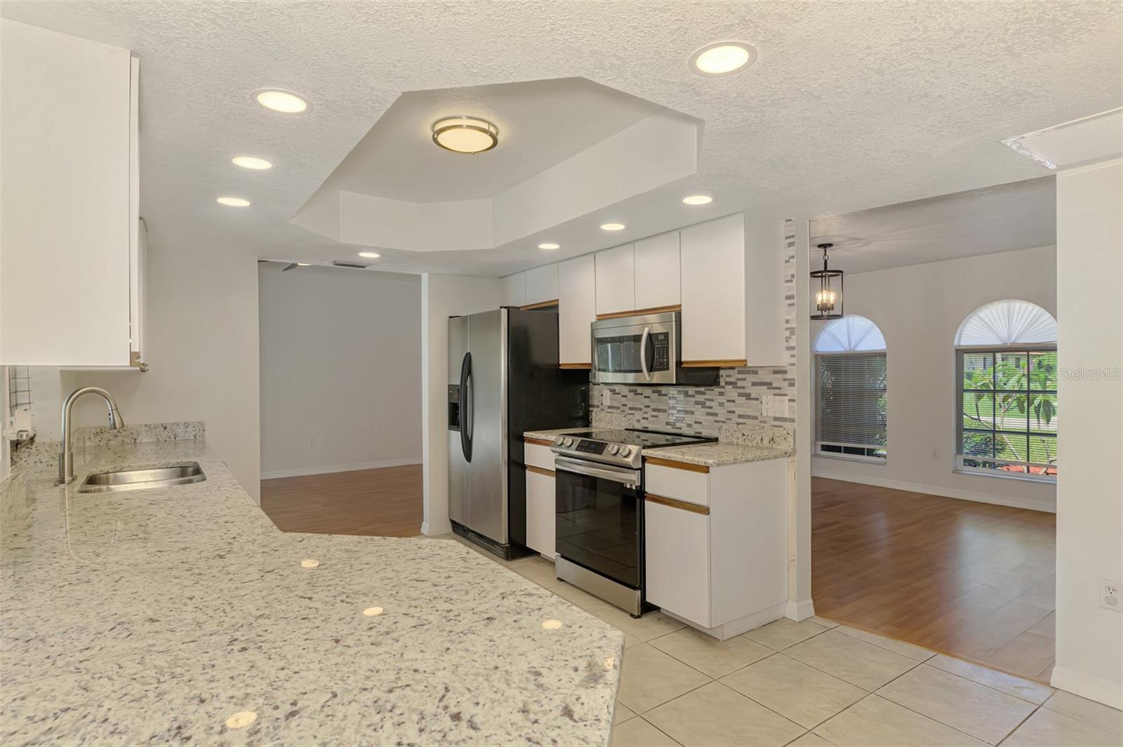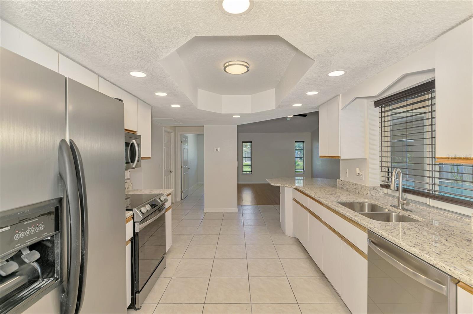 NEW IMPROVED PRICE! SPACIOUS 3-2-2 POOL HOME ON 2 CITY WATER LOTS WTIH A 3RD LOT ON SIDE NEGOTIABLE! HUGE LANAI! OVER 1900 SQ. FT OF LIVING! Discover the perfect blend of luxury and comfort in this remarkable multi-level home, set on two expansive city water lots (21,115 sq. ft.) in a serene, tree-lined neighborhood. With over 1,900 sq. ft. of beautifully upgraded living space, this 3-bedroom, 2-bathroom home offers all the room you need for relaxation, entertainment, and everyday convenience. There’s even an exciting opportunity to purchase a third side lot, expanding your possibilities! Step inside and be greeted by a large, screened, tiled foyer that leads to the elegant double door entry. As you walk through, you’ll find a spacious living room, a formal dining room, and a large family room adjacent to the kitchen, providing a natural flow that’s ideal for gatherings or quiet moments. The heart of this home, the kitchen, boasts stainless steel appliances, granite countertops, and a huge breakfast bar, all beneath a stylish tray ceiling with recessed lighting. The double pantry ensures you’ll never be short on space, and a convenient pass-through window allows easy serving to the pool area. Speaking of the pool, the expansive 32x33ft lanai is one of this home’s highlights. It surrounds the multi-level in-ground caged pool, complete with a dolphin spray fountain and a built-in planter—perfect for outdoor relaxation or entertaining. You’ll enjoy easy access to the pool area from the master bedroom, kitchen, dining area, and guest bath—the ultimate convenience for poolside fun. The master suite is a peaceful retreat, offering ample space for your furnishings and a bump-out area for extra room. Sliding doors lead directly to the pool area, while the en-suite bath features an upgraded tiled walk-in shower with a glass door, a separate tub, and a dual-sink vanity for added luxury. The guest bathroom is also beautifully updated, with a tiled shower and direct access to the pool area, making it both functional and stylish. All the bedrooms come with laminate wood flooring, remote ceiling fans, and generous walk-in closets, ensuring both comfort and practicality. Other recent upgrades include a new roof (2022), new lighting fixtures, remote ceiling fans, fresh interior paint, a newly painted driveway and sidewalk, and much more. The oversized laundry room comes equipped with a full-size washer and dryer, a wet sink, and above-cabinet storage—adding even more value and convenience. Located near shopping, dining, and entertainment options like Coco Plum Shops, Atlanta Braves Stadium, Costco, and Sam’s Club, this home offers the perfect combination of peaceful living with quick access to everything you need. Plus, with easy access to I-75 and the beautiful Gulf beaches, you’ll have the best of both worlds. Schedule a private viewing today and experience everything this incredible home has to offer!