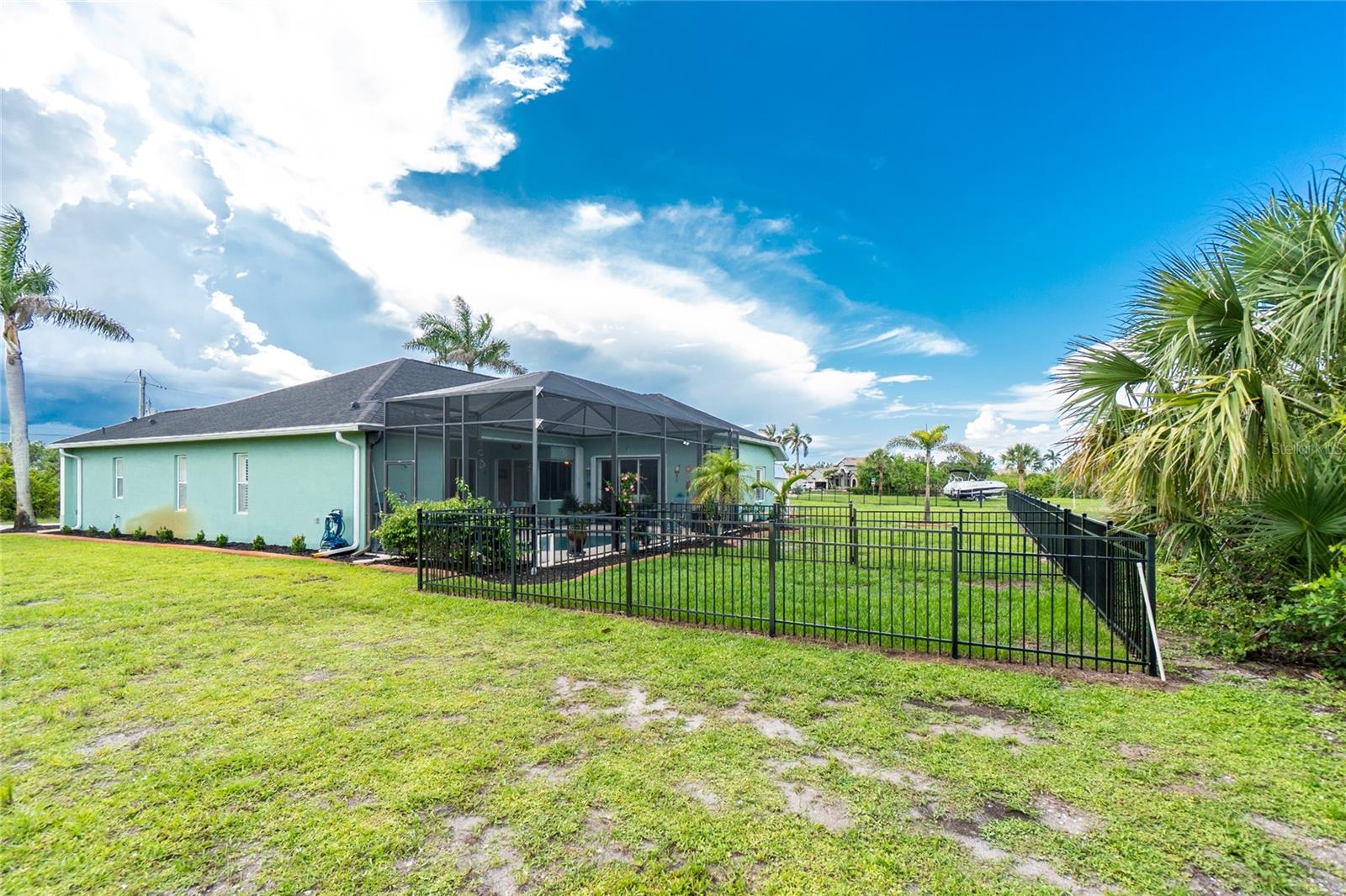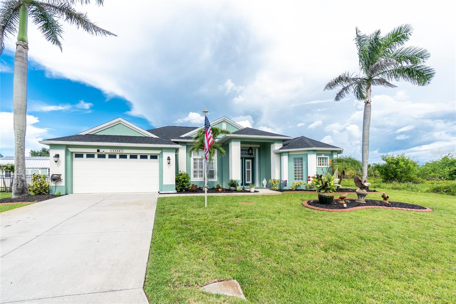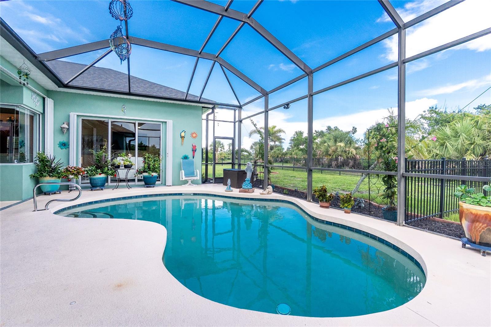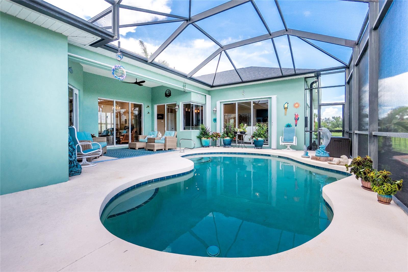 This beautifully updated home in South Gulf Cove offers over 2,300 sq ft of living space on a fully fenced double lot with a separate dog run, custom curbing, and lush landscaping. Tucked away on a quiet street and surrounded by stately palms, this home delivers the space, upgrades, and privacy you've been seeking. Ready to move right in?? There are no projects to tackle here! Enjoy all-new flooring throughout, fresh interior and exterior paint, a 2022 roof, hurricane shutters, and plantation shutters. The large 8-foot sliding glass doors from the living room, dining room, and primary bedroom lead to an oversized screened in lanai with a heated pool, half bath, and outdoor shower. The kitchen features Corian countertops, stainless steel appliances, a breakfast bar, and a dinette with an aquarium window overlooking the pool. The spacious primary suite includes a walk-in closet, soaking tub, Roman walk-in shower, and dual vanities. Two guest bedrooms and a full bath are located on the opposite side of the home for added privacy. This home checks every box: IT IS THE PERFECT PLACE TO CALL HOME!! MAKE YOUR APPOINTMENT TODAY TO SEE THIS BEAUTIFUL HOME!!