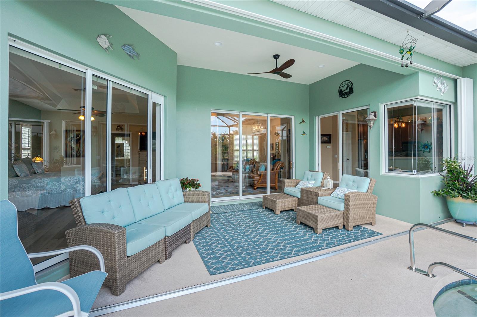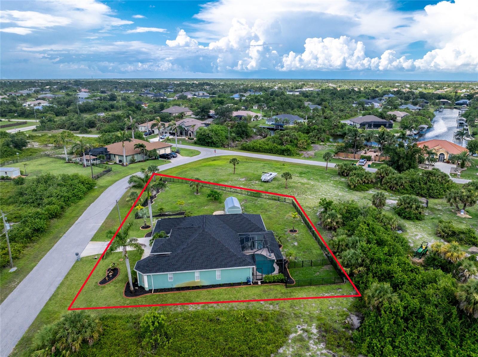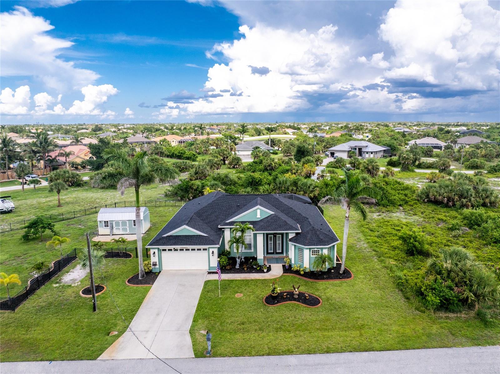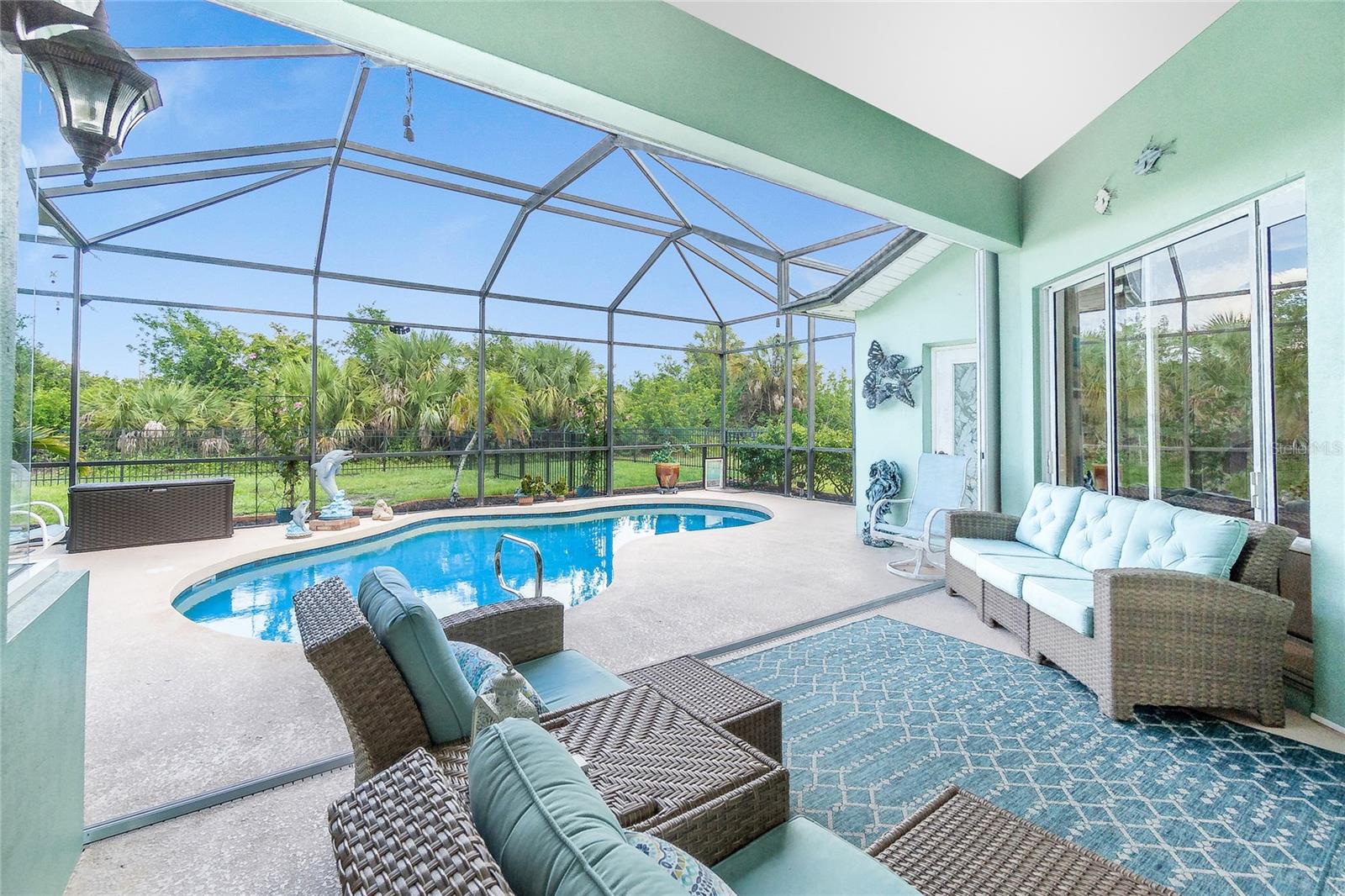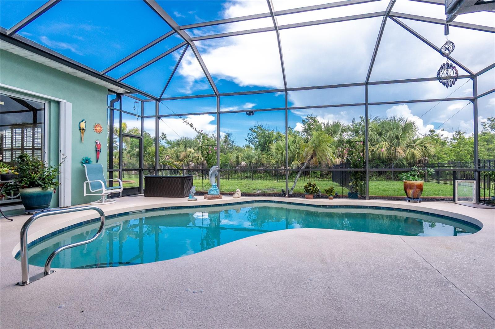This beautifully updated home in South Gulf Cove offers over 2,300 sq ft of living space on a fully fenced double lot with a separate dog run, custom curbing, and lush landscaping. Tucked away on a quiet street and surrounded by stately palms, this home delivers the space, upgrades, and privacy you've been seeking. Ready to move right in?? There are no projects to tackle here! Enjoy all-new flooring throughout, fresh interior and exterior paint, a 2022 roof, hurricane shutters, and plantation shutters. The large 8-foot sliding glass doors from the living room, dining room, and primary bedroom lead to an oversized screened in lanai with a heated pool, half bath, and outdoor shower. The kitchen features Corian countertops, stainless steel appliances, a breakfast bar, and a dinette with an aquarium window overlooking the pool. The spacious primary suite includes a walk-in closet, soaking tub, Roman walk-in shower, and dual vanities. Two guest bedrooms and a full bath are located on the opposite side of the home for added privacy. This home checks every box: IT IS THE PERFECT PLACE TO CALL HOME!! MAKE YOUR APPOINTMENT TODAY TO SEE THIS BEAUTIFUL HOME!!