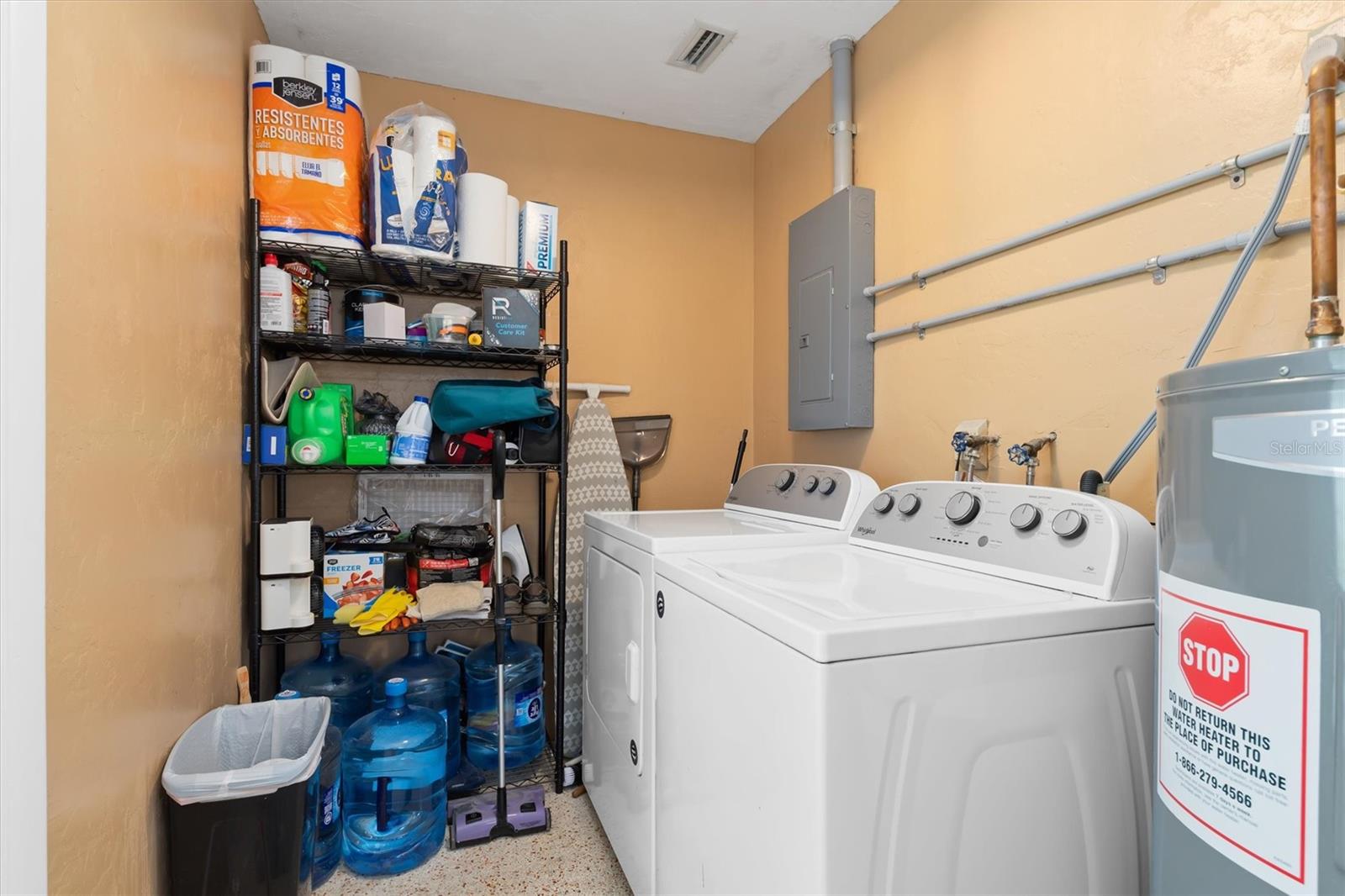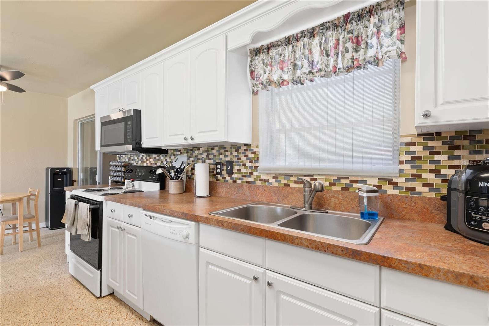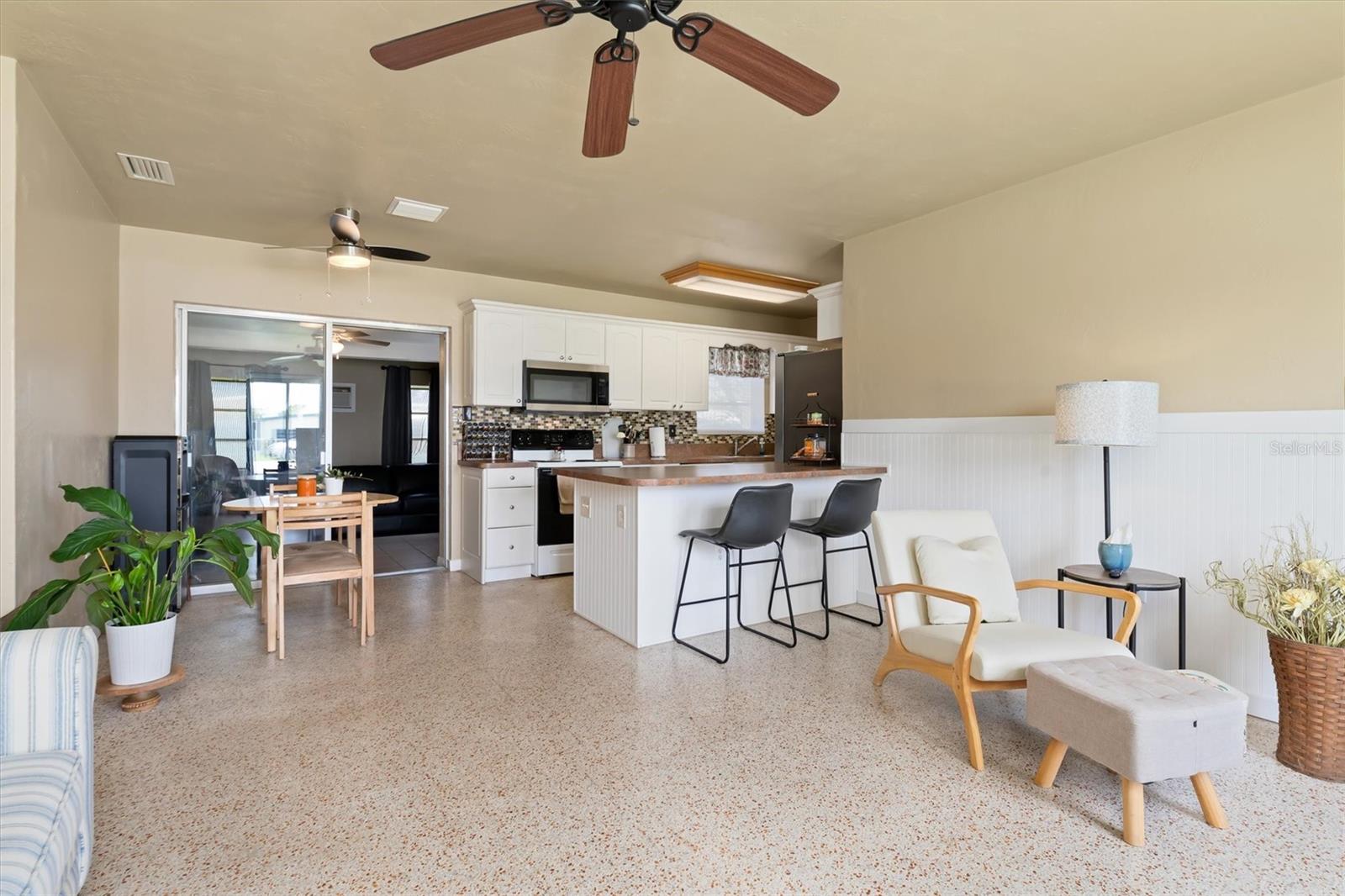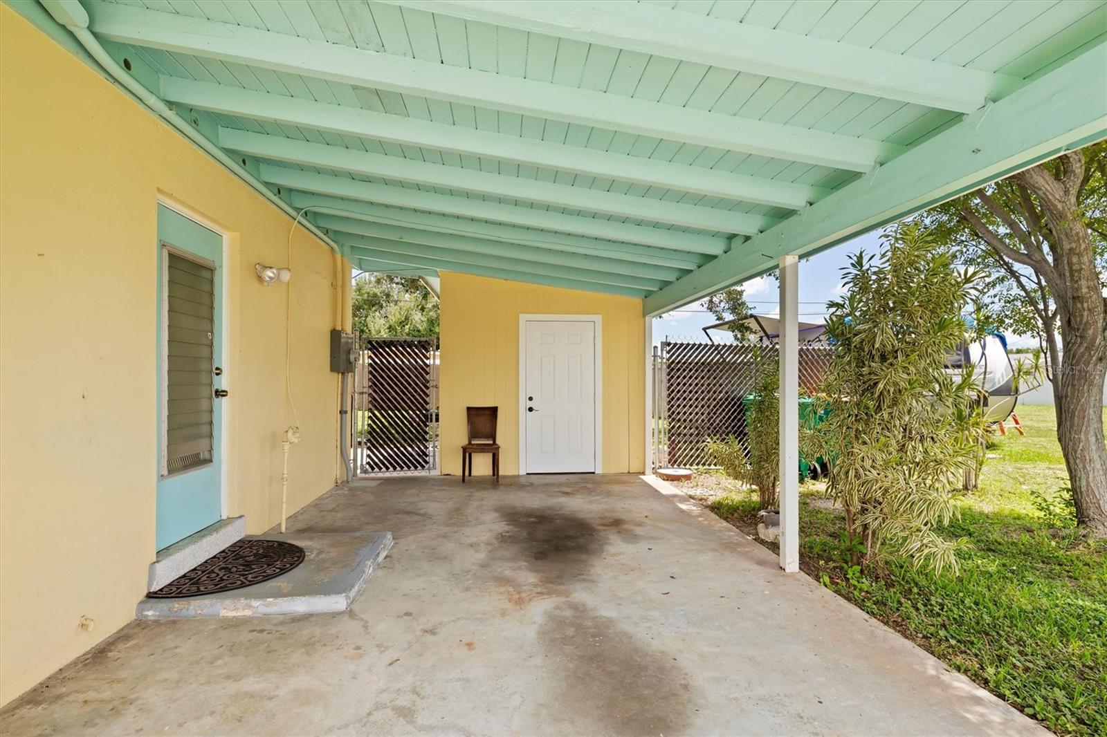 This beautifully upgraded and centrally located home can be your slice of paradise in Port Charlotte, SW Florida. Offering 3 bedrooms and one bath, the house features an updated kitchen with ample counter space, a beautiful glass tile backsplash, and a popular peninsula that connects it to the living room. ** The terrazzo floor throughout the house brings back that charming vintage look. ** The indoor utility room and a large shed provide lots of space for storage. *** The ROOF was replaced in 2021, giving you peace of mind. ** A concrete pad under the trees is perfect for a shaded sitting area in the fenced-in backyard. ** Conveniently located, close to dining, shopping, schools, hospitals, and a short drive to the beaches. Schedule an appointment now!