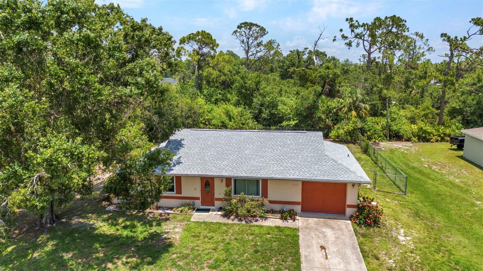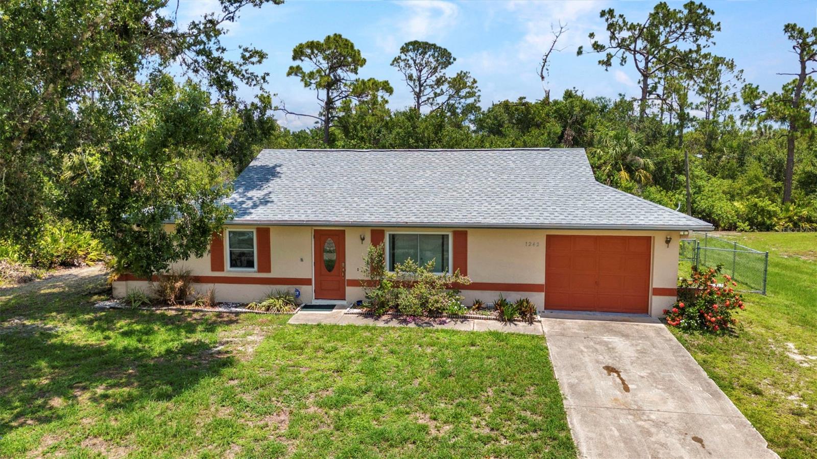 NO HOA – FENCED YARD – MINUTES TO CHARLOTTE HARBOR! This 2-bedroom, 1 & 1/2 bath concrete block home is located in the heart of Port Charlotte and offers an ideal combination of comfort and convenience. The open layout includes tile flooring throughout, a spacious living area, and a bonus room accessed by French doors—perfect for a home office, playroom, or hobby space. Step outside to a fully fenced backyard with ample room for pets, outdoor entertaining, or future additions. The attached 1-car garage adds convenience and storage, and the oversized ¼-acre lot offers room to spread out—all with no HOA restrictions. Enjoy quick access to everything the area has to offer! You're just minutes from Charlotte Harbor, Port Charlotte Beach Park, and SunSeeker Resort. Golf enthusiasts will appreciate nearby courses like Kings Gate Golf Club and Maple Leaf Golf & Country Club. Spend weekends fishing or launching your boat from El Jobean Boat Ramp or exploring the shops and restaurants at Port Charlotte Town Center. Downtown Punta Gorda is just over the bridge, offering a vibrant waterfront scene, farmers markets, and dining along the Peace River. Whether you're a full-time resident, snowbird, or investor, this property offers great value in a highly desirable location—without the fees or rules of an HOA!