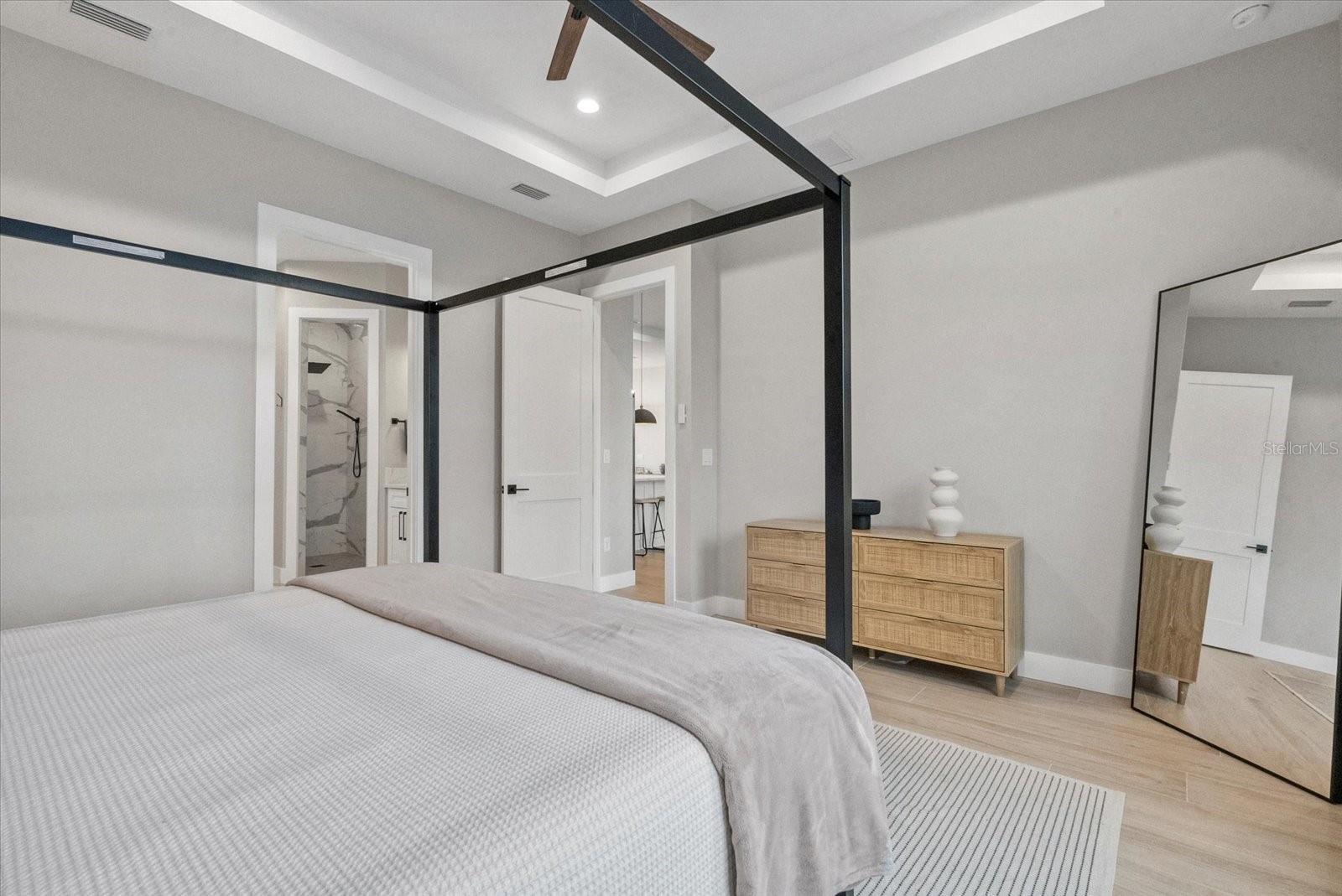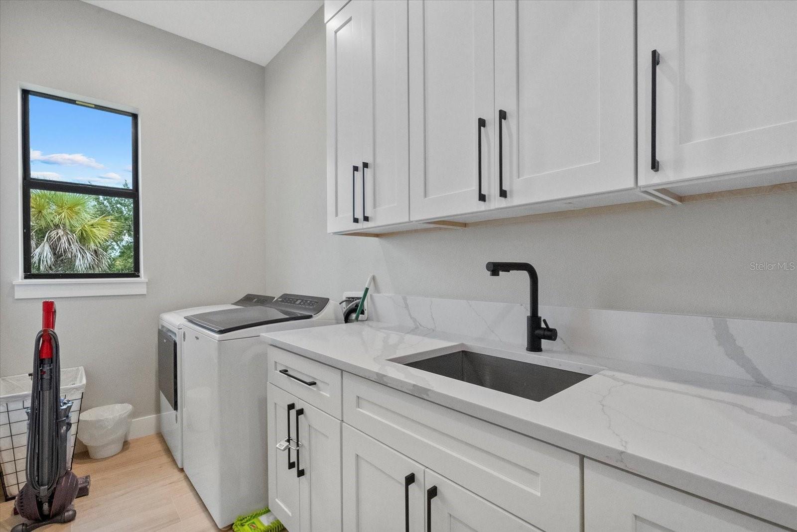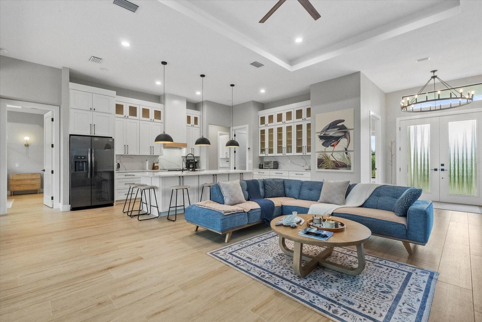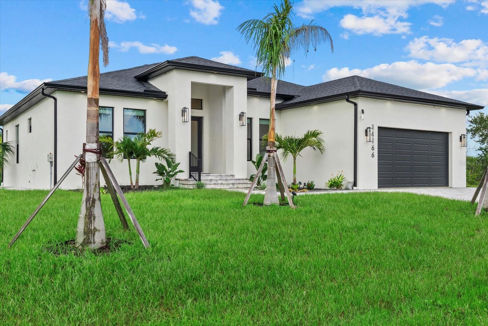 Newly built in 2024 and move-in ready! This stunning WATERFRONT home with GULF ACCESS is packed with high-end features and modern coastal charm. Offering 3 bedrooms + a den, 3 bathrooms, and 2,166 sq ft of living space, the home is built on a 4-course stem wall for added elevation and features IMPACT WINDOWS AND DOORS throughout. A grand entrance welcomes you with modern GLASS DOUBLE DOORS, leading into a bright and airy space with SOARING CEILINGS, 8’ INTERIOR DOORS, and wood-look plank TILE flooring that flows seamlessly throughout. The chef’s kitchen is a showstopper, featuring QUARTZ COUNTERTOPS with a WATERFALL feature on the island, soft-close cabinetry, and a WALK IN PANTRY with built-in shelving—perfect for both function and style. The primary suite is a true retreat, featuring spacious walk-in closets and a spa-inspired en-suite bathroom with designer tile, a DOUBLE VANITY, and a luxurious walk-in TILED shower. The split floor plan ensures privacy, with two additional bedrooms located on the opposite side of the home—one of which includes its own private en-suite bath, ideal for guests or multigenerational living.The home also features a pavered driveway, pavered walkway all around the home, canal-fed irrigation system, and gutters all around the home for added function and curb appeal. Step outside to take in breathtaking canal views and embrace the best of Florida living—boating, fishing, kayaking, or simply relaxing in the peace and privacy of your own turnkey waterfront retreat. Nestled in the sought-after boating community of South Gulf Cove, this location offers direct access to the Gulf and is just minutes from world-class beaches, top-rated golf courses, and some of the best fishing in Southwest Florida. With an optional HOA of just $120/ year, South Gulf Cove combines relaxed coastal living with unbeatable convenience—a true hidden gem for waterfront lifestyle seekers.