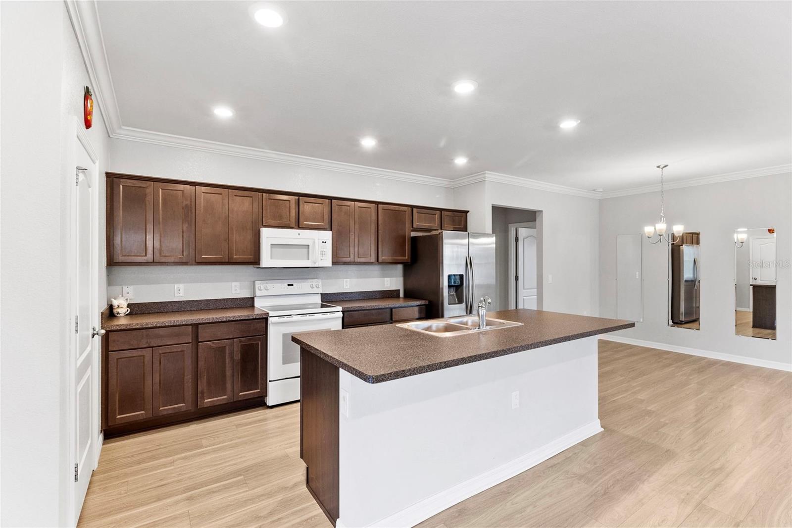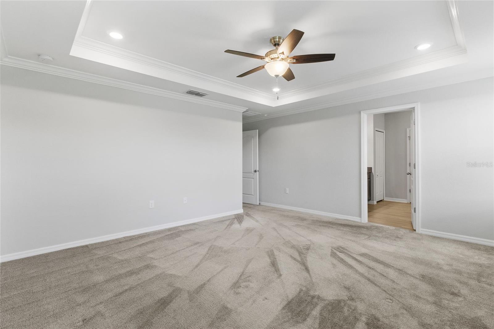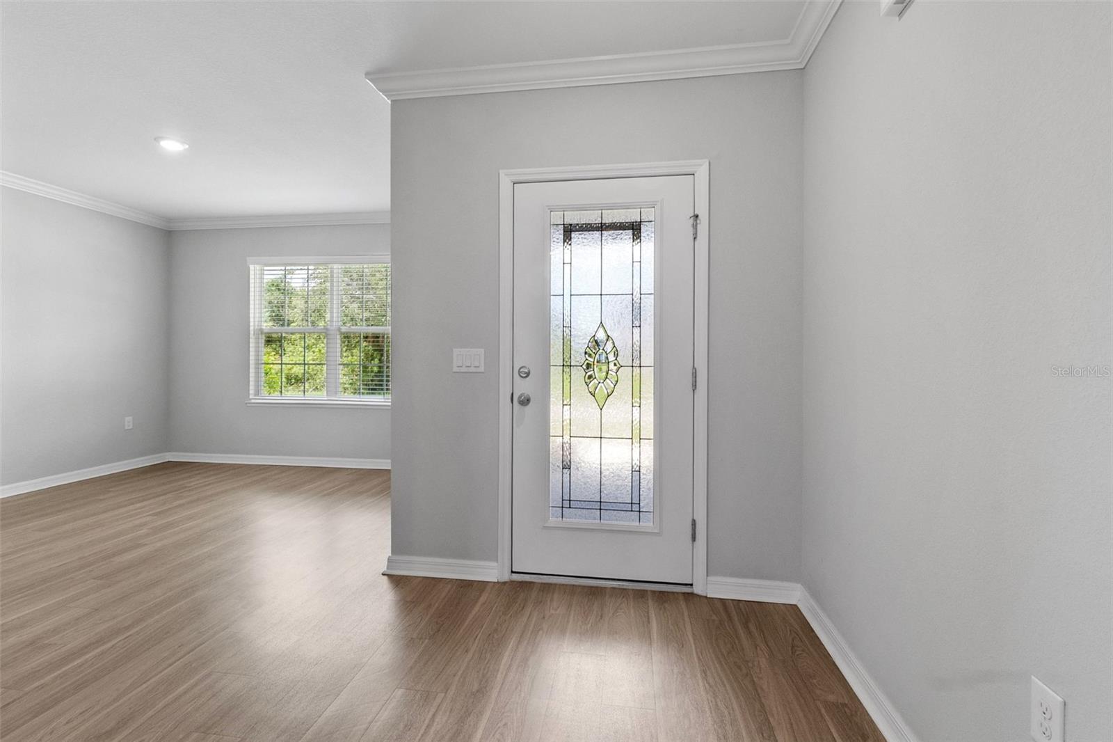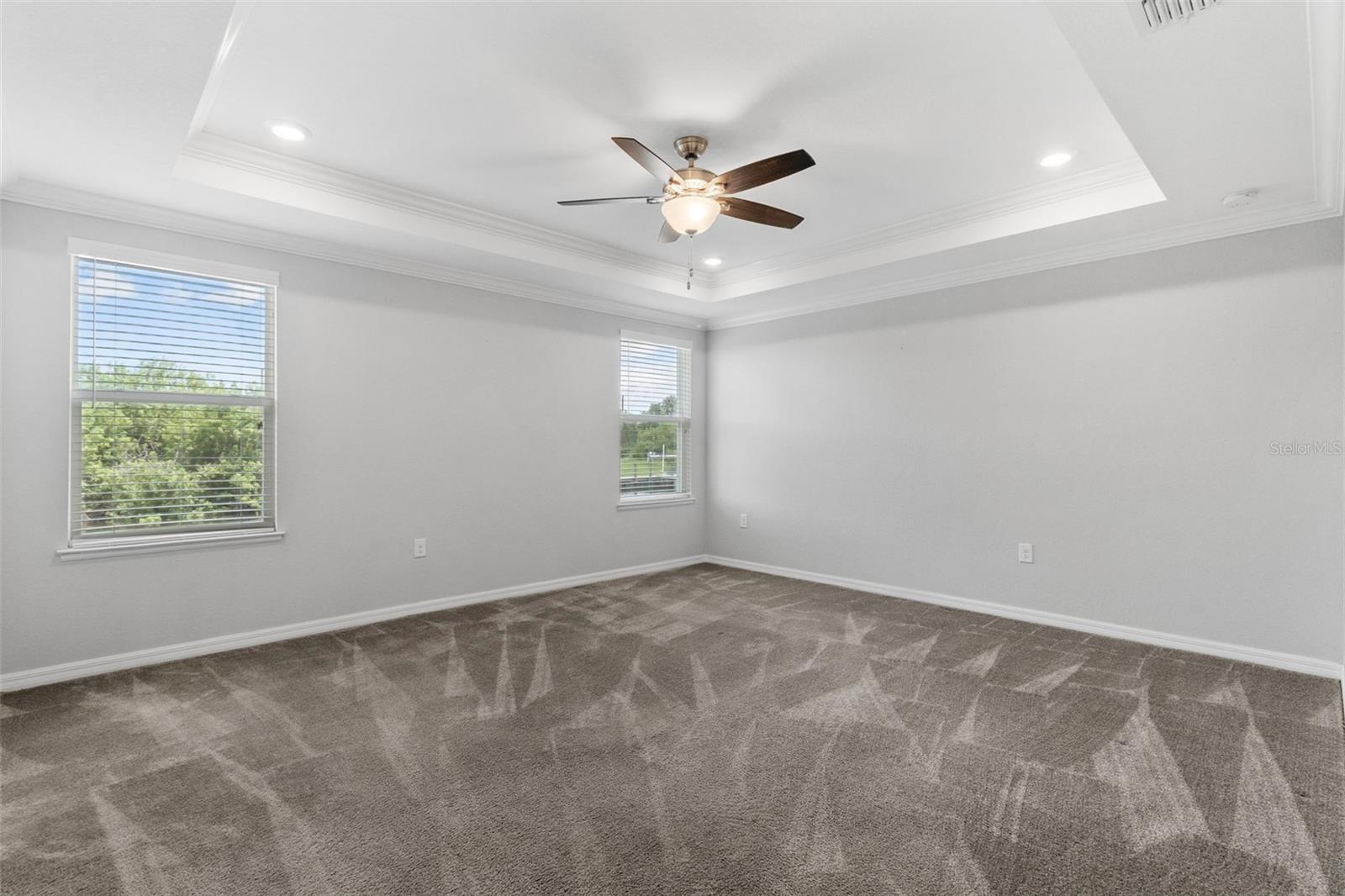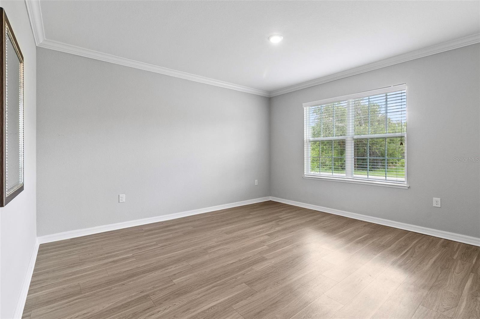 A beautiful newer waterfront home built in 2019 has a lovely open floor plan with access to a lanai and a wonderful view of the canal. This lovely home has an open-floor plan with high ceilings and crown molding. The Living room is located in the front and can be used as an office, a play room or whatever you want to use it for. The garage is oversized, allowing for tools and toys. Enjoy relaxing on the lanai watching the fish jump and the birds fly over. There is plenty of room for your custom pool and spa. You can build the dock and boat life to accommodate your boat, so size won’t matter. A new roof was installed in 2024. All you need to do is move in and decorate to your own standards and likes. (Please note, that the carpet in the bedrooms is a gray color not blue/green.)