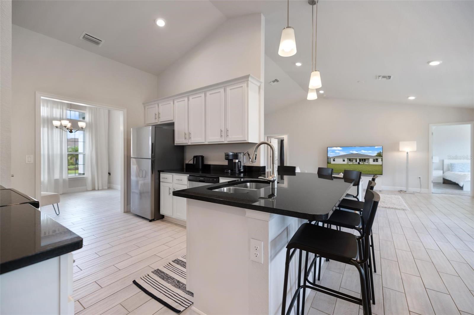 Stunner!! Go and See this one! SELLER CREDIT $7,000!! SOARING VAULTED CEILINGS, BUILT IN 2022, located in SOUTH GULF COVE, 55 miles of CANALS. Under market value, 2169 sq ft., this is a dream home. No updates needed, MOVE IN READY. With 4 spacious bedrooms, 2 bathrooms, landscaped front and back yards, and open-concept living space, this home blends crisp architectural lines with stylish finishes and an abundance of natural light. The modern design welcomes you in with clean, contemporary finishes, from the neutral tile flooring to the recessed LED lighting and vaulted ceilings. The PRIMARY SUITE is a RETREAT sanctuary with his and her walk-in closet, dual vanities, and a combo tub shower, as well as an extra built-in linen closet. Indoor luxury and outdoor space big enough to host friends, or put in a pool. TURNKEY & STYLISH, Impeccably maintained, thoughtfully designed, and ready for immediate move-in—no updates needed!! You must see this one today! Nestled in a quiet residential enclave of South Gulf Cove, 15329 Aldama Circle could be your Florida paradise. Just a short drive to Boca Grande, Englewood Beach, and all the coastal charm Southwest Florida offers. Stop in today! Make it Yours! Everything you see inside this home is included.