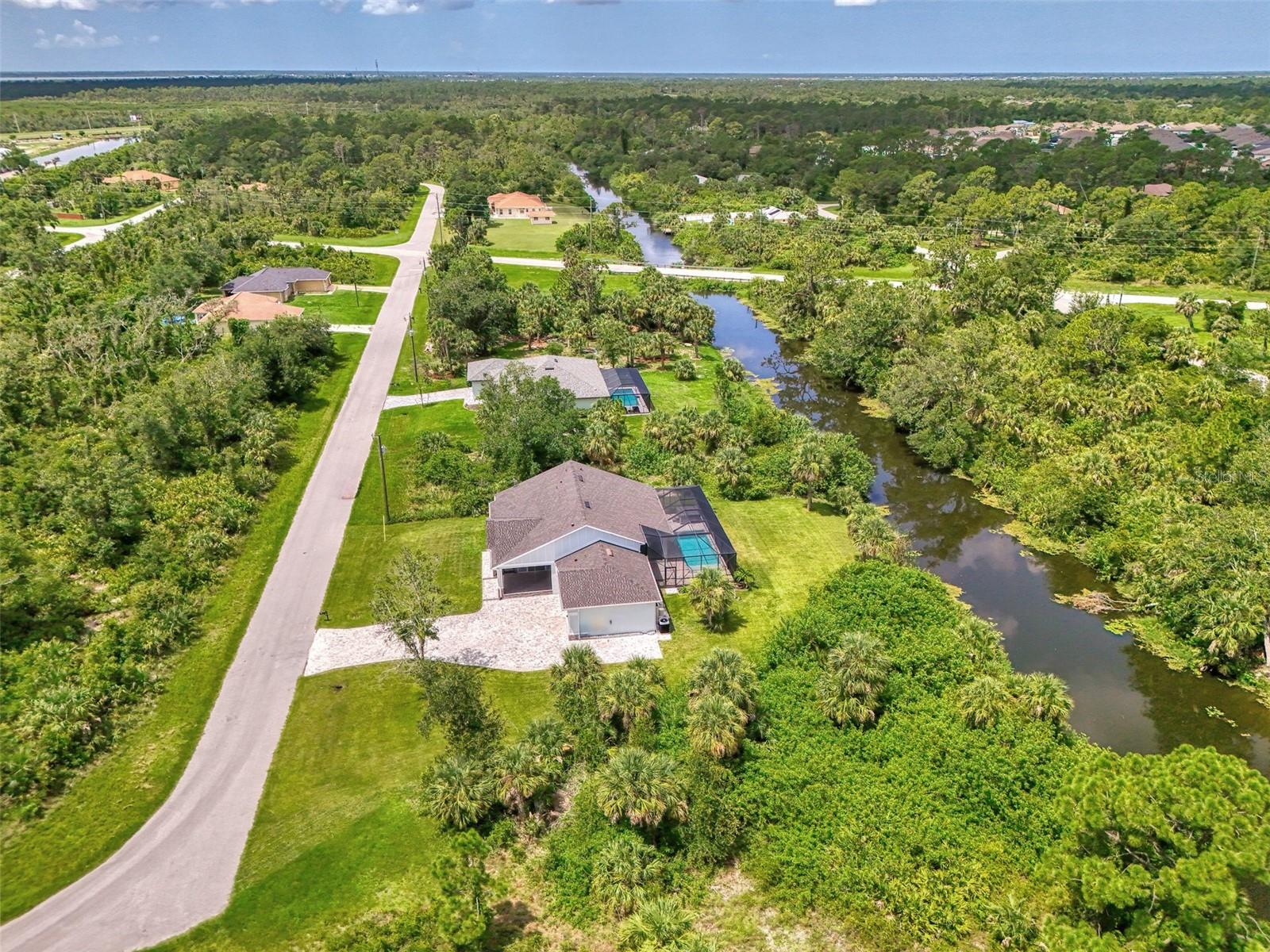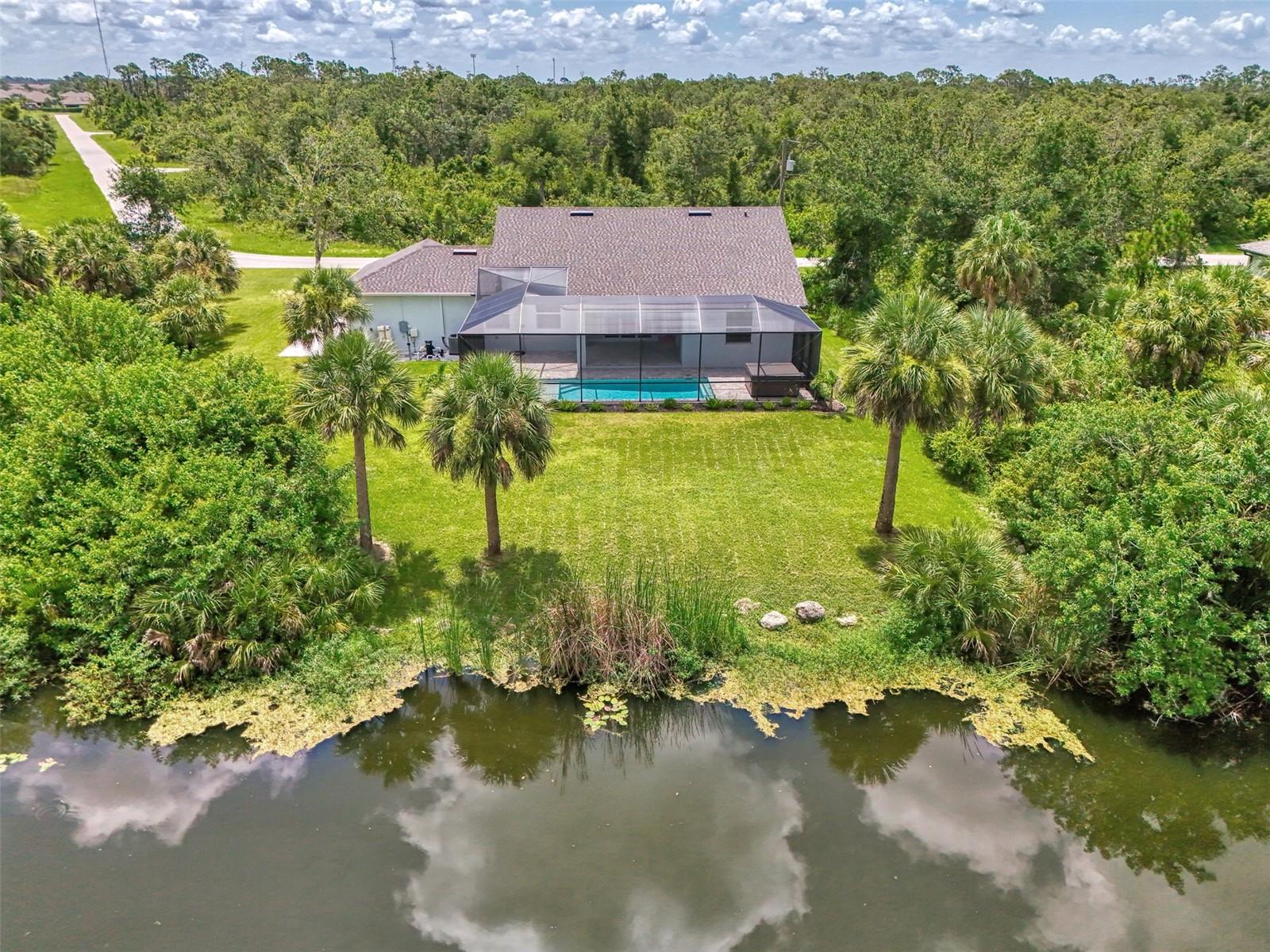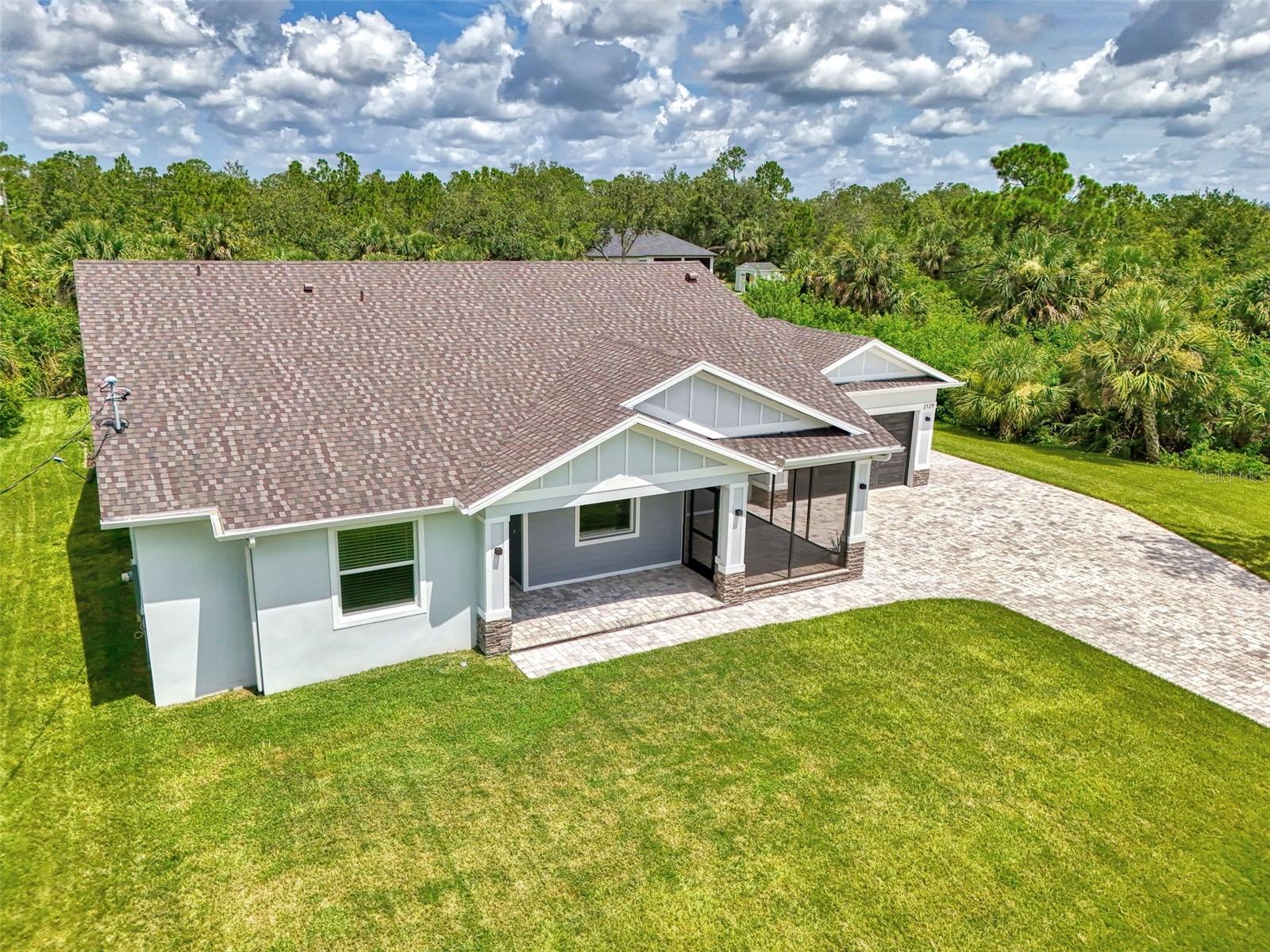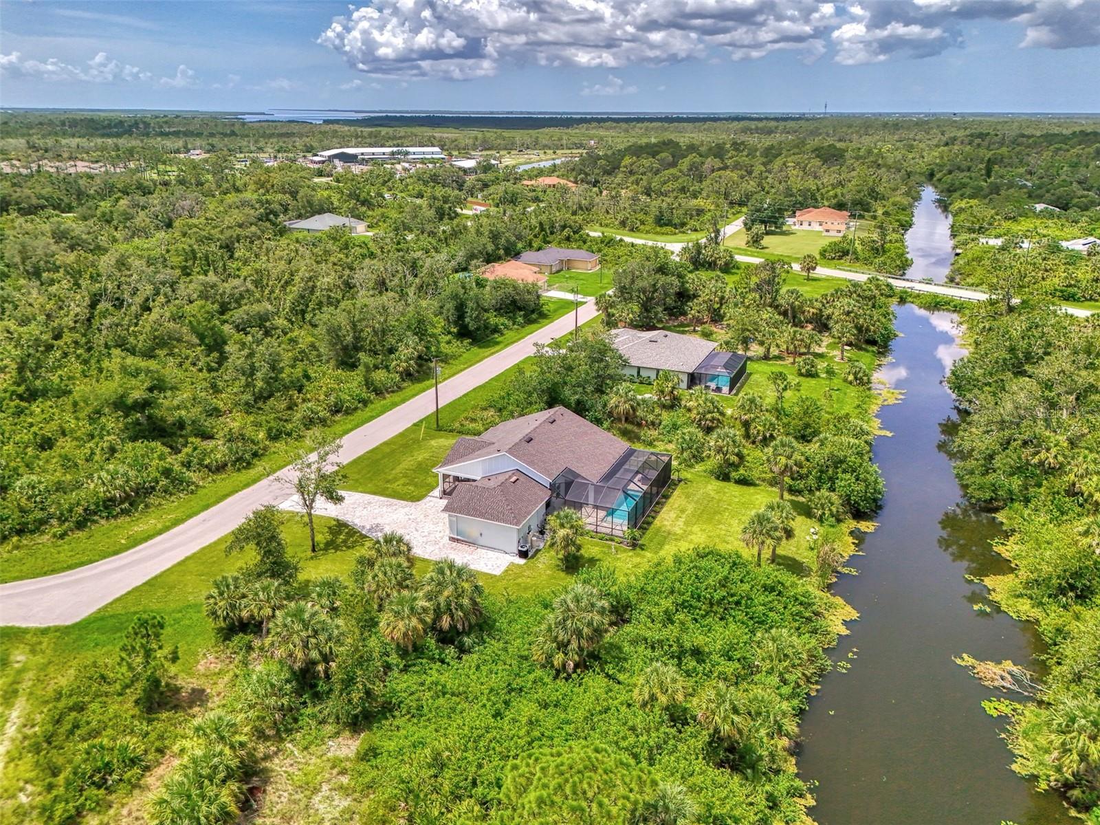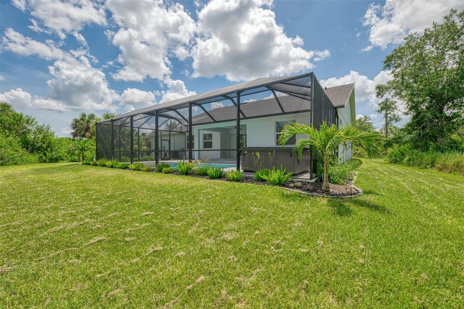 This beautiful 2023 canal-front pool home is packed with upgrades and custom touches, making it one of the most eye-catching homes on the market today. Tucked into a peaceful neighborhood that feels private yet keeps you close to shopping, schools, and restaurants, this property has the best of both worlds—comfort and convenience. Pulling into the oversized paver driveway, you’ll immediately notice there’s extra room for your boat or RV. The curb appeal is just the beginning. A screened and covered front porch is the perfect place to sip your morning coffee and take in the quiet charm of the area. Around the house, you'll find full gutters and clean modern lighting that adds a polished look to the exterior. Step inside, and you’re greeted by an open layout with smart design details throughout. The dedicated office with double doors and its own French doors out to the front porch gives you a peaceful space to work or relax. The living room is a true highlight with an electric fireplace, double tray ceilings, and detailed crown molding. Triple pocket sliders open wide, pulling your eyes straight to the canal and the show-stopping backyard. The saltwater heated pool is one of the home’s best features. With a large 50x28 pool deck, a sun shelf for relaxing, and an above-ground heated saltwater spa, this outdoor area is made for enjoying the Florida lifestyle. The covered lanai (16x15) gives you shade when you need it, and the full canal view is unforgettable. Inside the kitchen, you’ll find top-quality appliances including double ovens, a flat-top glass stove, stainless steel finishes, and a center island with a pull-out microwave. Wooden cabinets extend all the way to the ceiling, with glass doors and soft-close drawers that add an upscale touch. The spacious dining area is perfect for hosting and entertaining. The master suite overlooks the pool and canal and includes French doors, two walk-in closets, and a spa-style bathroom with dual sinks, a garden tub, and a rain shower with glass doors. Every bedroom includes a walk-in closet, and the entire home features wood-look tile flooring for easy maintenance and style. Additional features include an oversized garage with high ceilings, a fully equipped laundry room, impact windows, and professional landscaping with concrete curbing and flower beds. This one-of-a-kind home sits on an oversized lot right next to county-owned land and a scenic lake. Don’t miss your chance to see this remarkable property. Schedule your private tour today!