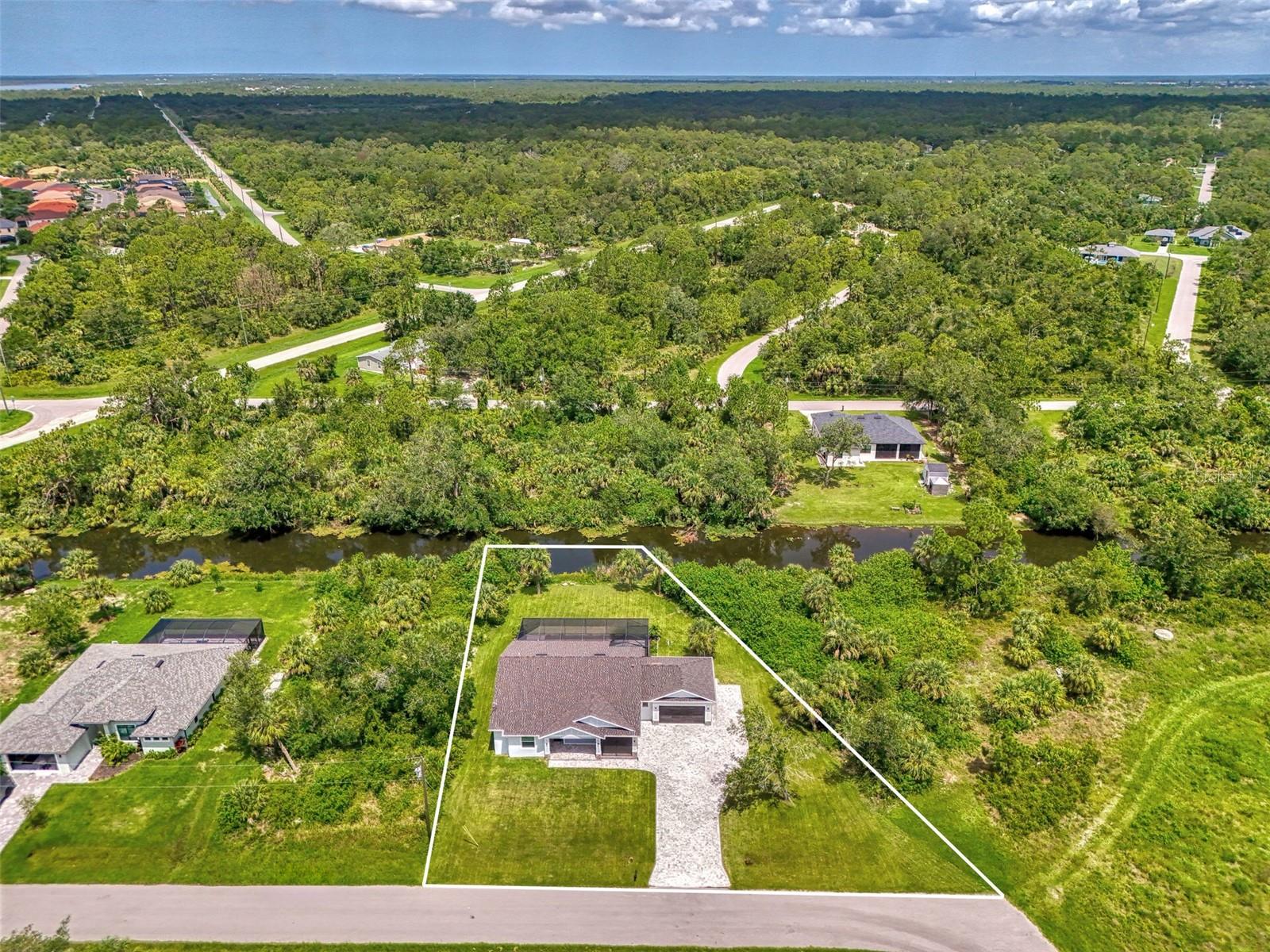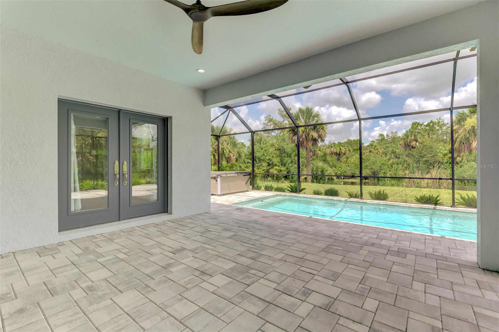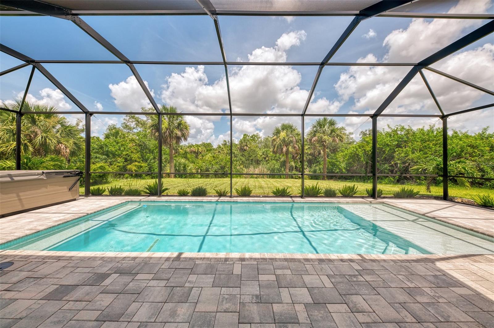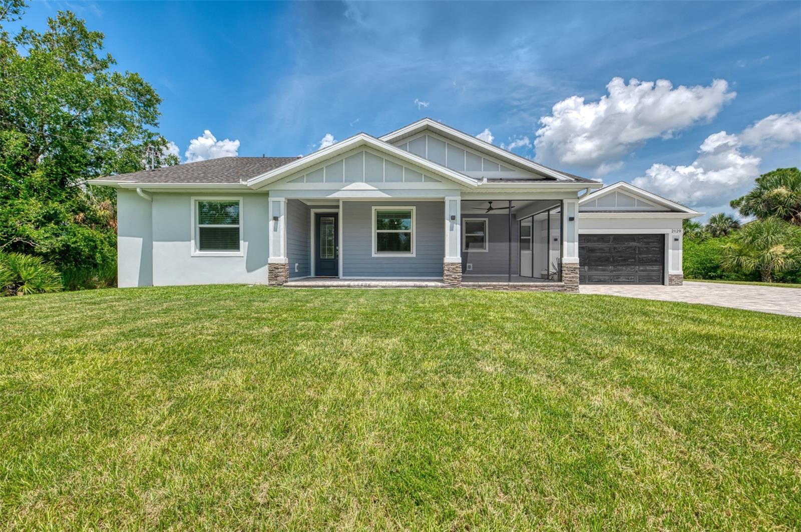 This beautiful 2023 canal-front pool home is packed with upgrades and custom touches, making it one of the most eye-catching homes on the market today. Tucked into a peaceful neighborhood that feels private yet keeps you close to shopping, schools, and restaurants, this property has the best of both worlds—comfort and convenience. Pulling into the oversized paver driveway, you’ll immediately notice there’s extra room for your boat or RV. The curb appeal is just the beginning. A screened and covered front porch is the perfect place to sip your morning coffee and take in the quiet charm of the area. Around the house, you'll find full gutters and clean modern lighting that adds a polished look to the exterior. Step inside, and you’re greeted by an open layout with smart design details throughout. The dedicated office with double doors and its own French doors out to the front porch gives you a peaceful space to work or relax. The living room is a true highlight with an electric fireplace, double tray ceilings, and detailed crown molding. Triple pocket sliders open wide, pulling your eyes straight to the canal and the show-stopping backyard. The saltwater heated pool is one of the home’s best features. With a large 50x28 pool deck, a sun shelf for relaxing, and an above-ground heated saltwater spa, this outdoor area is made for enjoying the Florida lifestyle. The covered lanai (16x15) gives you shade when you need it, and the full canal view is unforgettable. Inside the kitchen, you’ll find top-quality appliances including double ovens, a flat-top glass stove, stainless steel finishes, and a center island with a pull-out microwave. Wooden cabinets extend all the way to the ceiling, with glass doors and soft-close drawers that add an upscale touch. The spacious dining area is perfect for hosting and entertaining. The master suite overlooks the pool and canal and includes French doors, two walk-in closets, and a spa-style bathroom with dual sinks, a garden tub, and a rain shower with glass doors. Every bedroom includes a walk-in closet, and the entire home features wood-look tile flooring for easy maintenance and style. Additional features include an oversized garage with high ceilings, a fully equipped laundry room, impact windows, and professional landscaping with concrete curbing and flower beds. This one-of-a-kind home sits on an oversized lot right next to county-owned land and a scenic lake. Don’t miss your chance to see this remarkable property. Schedule your private tour today!