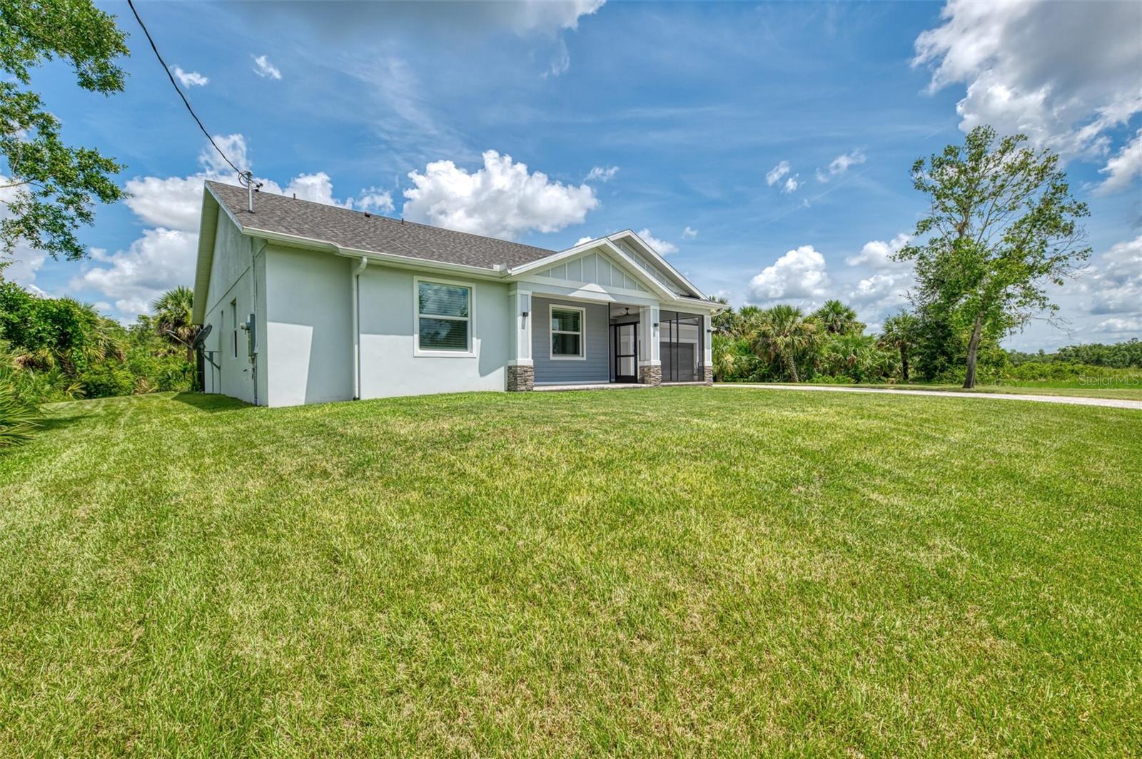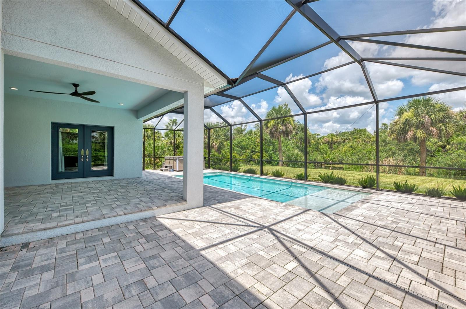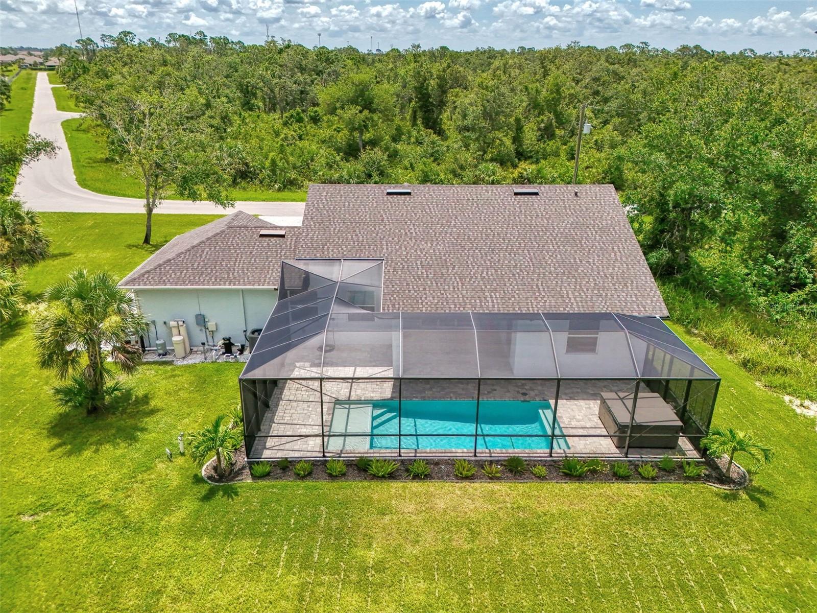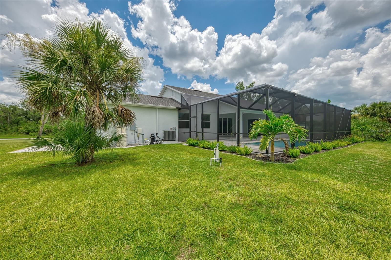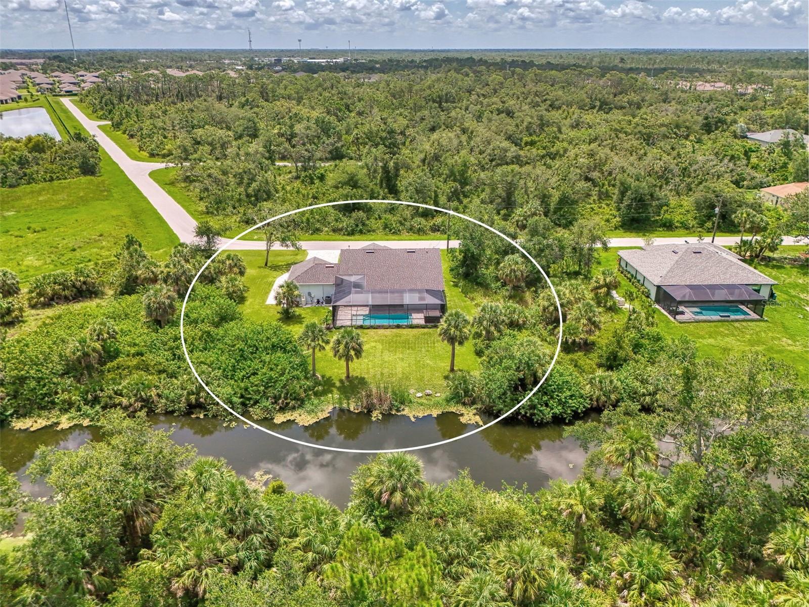 This beautiful 2023 canal-front pool home is packed with upgrades and custom touches, making it one of the most eye-catching homes on the market today. Tucked into a peaceful neighborhood that feels private yet keeps you close to shopping, schools, and restaurants, this property has the best of both worlds—comfort and convenience. Pulling into the oversized paver driveway, you’ll immediately notice there’s extra room for your boat or RV. The curb appeal is just the beginning. A screened and covered front porch is the perfect place to sip your morning coffee and take in the quiet charm of the area. Around the house, you'll find full gutters and clean modern lighting that adds a polished look to the exterior. Step inside, and you’re greeted by an open layout with smart design details throughout. The dedicated office with double doors and its own French doors out to the front porch gives you a peaceful space to work or relax. The living room is a true highlight with an electric fireplace, double tray ceilings, and detailed crown molding. Triple pocket sliders open wide, pulling your eyes straight to the canal and the show-stopping backyard. The saltwater heated pool is one of the home’s best features. With a large 50x28 pool deck, a sun shelf for relaxing, and an above-ground heated saltwater spa, this outdoor area is made for enjoying the Florida lifestyle. The covered lanai (16x15) gives you shade when you need it, and the full canal view is unforgettable. Inside the kitchen, you’ll find top-quality appliances including double ovens, a flat-top glass stove, stainless steel finishes, and a center island with a pull-out microwave. Wooden cabinets extend all the way to the ceiling, with glass doors and soft-close drawers that add an upscale touch. The spacious dining area is perfect for hosting and entertaining. The master suite overlooks the pool and canal and includes French doors, two walk-in closets, and a spa-style bathroom with dual sinks, a garden tub, and a rain shower with glass doors. Every bedroom includes a walk-in closet, and the entire home features wood-look tile flooring for easy maintenance and style. Additional features include an oversized garage with high ceilings, a fully equipped laundry room, impact windows, and professional landscaping with concrete curbing and flower beds. This one-of-a-kind home sits on an oversized lot right next to county-owned land and a scenic lake. Don’t miss your chance to see this remarkable property. Schedule your private tour today!