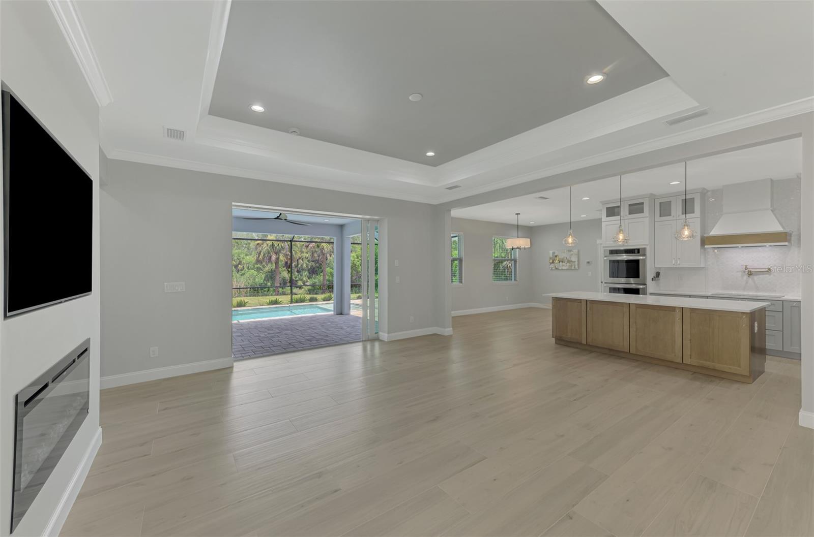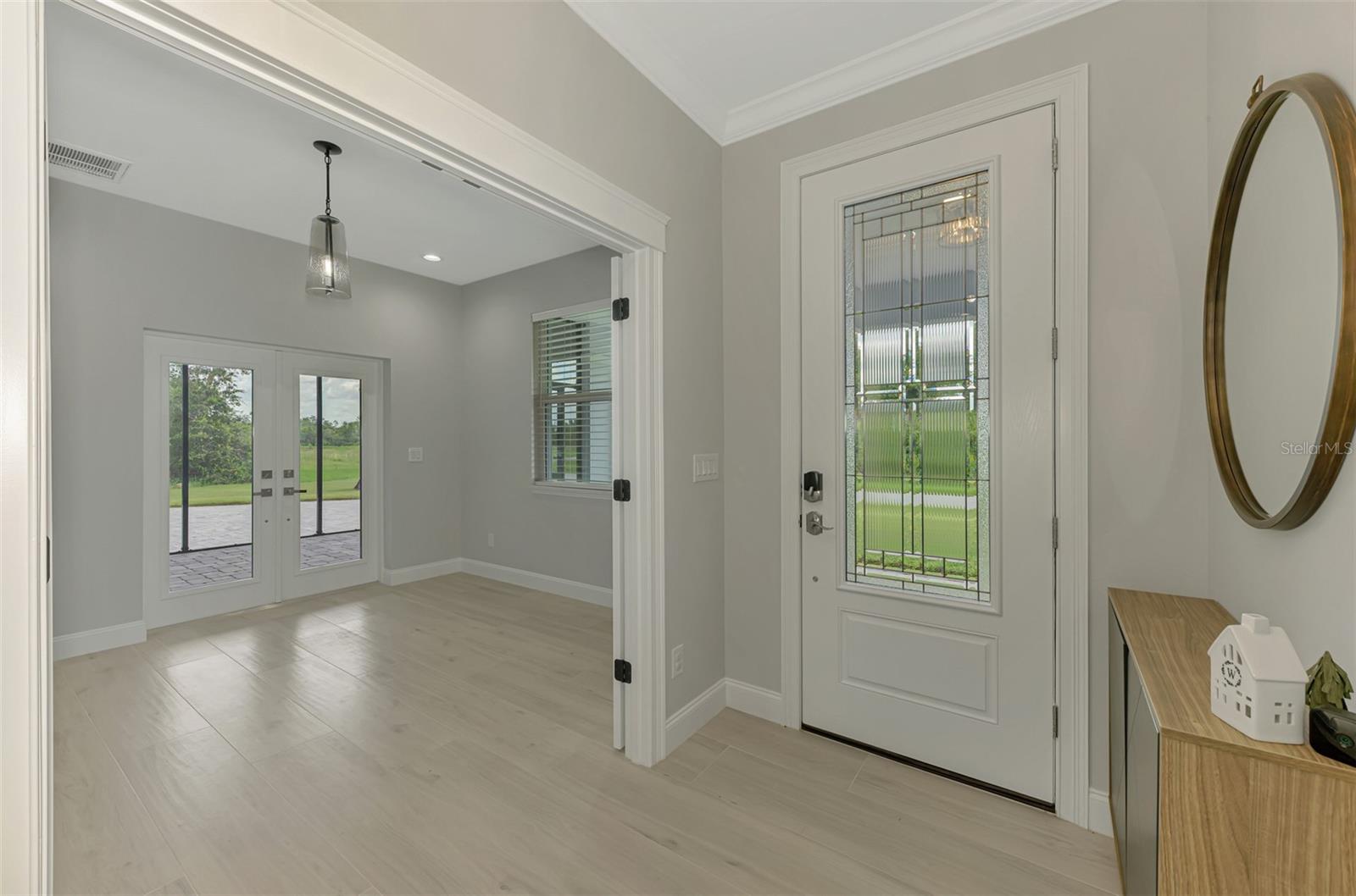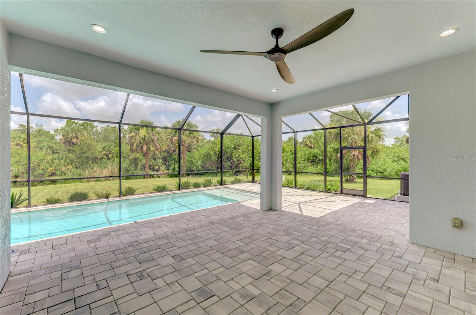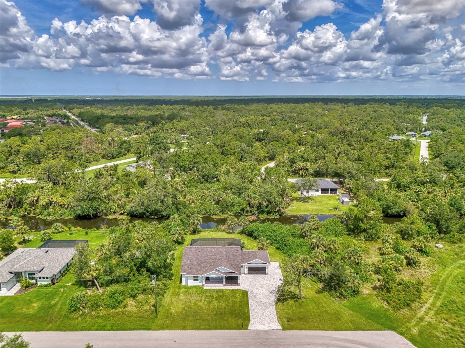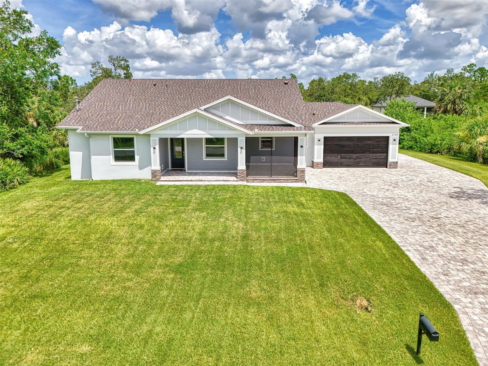 This beautiful 2023 canal-front pool home is packed with upgrades and custom touches, making it one of the most eye-catching homes on the market today. Tucked into a peaceful neighborhood that feels private yet keeps you close to shopping, schools, and restaurants, this property has the best of both worlds—comfort and convenience. Pulling into the oversized paver driveway, you’ll immediately notice there’s extra room for your boat or RV. The curb appeal is just the beginning. A screened and covered front porch is the perfect place to sip your morning coffee and take in the quiet charm of the area. Around the house, you'll find full gutters and clean modern lighting that adds a polished look to the exterior. Step inside, and you’re greeted by an open layout with smart design details throughout. The dedicated office with double doors and its own French doors out to the front porch gives you a peaceful space to work or relax. The living room is a true highlight with an electric fireplace, double tray ceilings, and detailed crown molding. Triple pocket sliders open wide, pulling your eyes straight to the canal and the show-stopping backyard. The saltwater heated pool is one of the home’s best features. With a large 50x28 pool deck, a sun shelf for relaxing, and an above-ground heated saltwater spa, this outdoor area is made for enjoying the Florida lifestyle. The covered lanai (16x15) gives you shade when you need it, and the full canal view is unforgettable. Inside the kitchen, you’ll find top-quality appliances including double ovens, a flat-top glass stove, stainless steel finishes, and a center island with a pull-out microwave. Wooden cabinets extend all the way to the ceiling, with glass doors and soft-close drawers that add an upscale touch. The spacious dining area is perfect for hosting and entertaining. The master suite overlooks the pool and canal and includes French doors, two walk-in closets, and a spa-style bathroom with dual sinks, a garden tub, and a rain shower with glass doors. Every bedroom includes a walk-in closet, and the entire home features wood-look tile flooring for easy maintenance and style. Additional features include an oversized garage with high ceilings, a fully equipped laundry room, impact windows, and professional landscaping with concrete curbing and flower beds. This one-of-a-kind home sits on an oversized lot right next to county-owned land and a scenic lake. Don’t miss your chance to see this remarkable property. Schedule your private tour today!