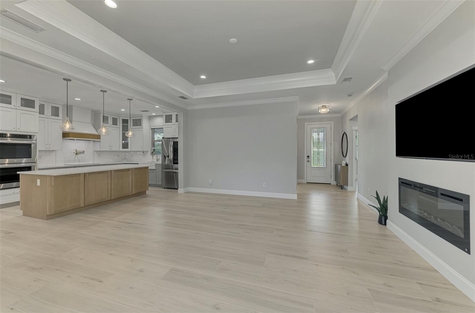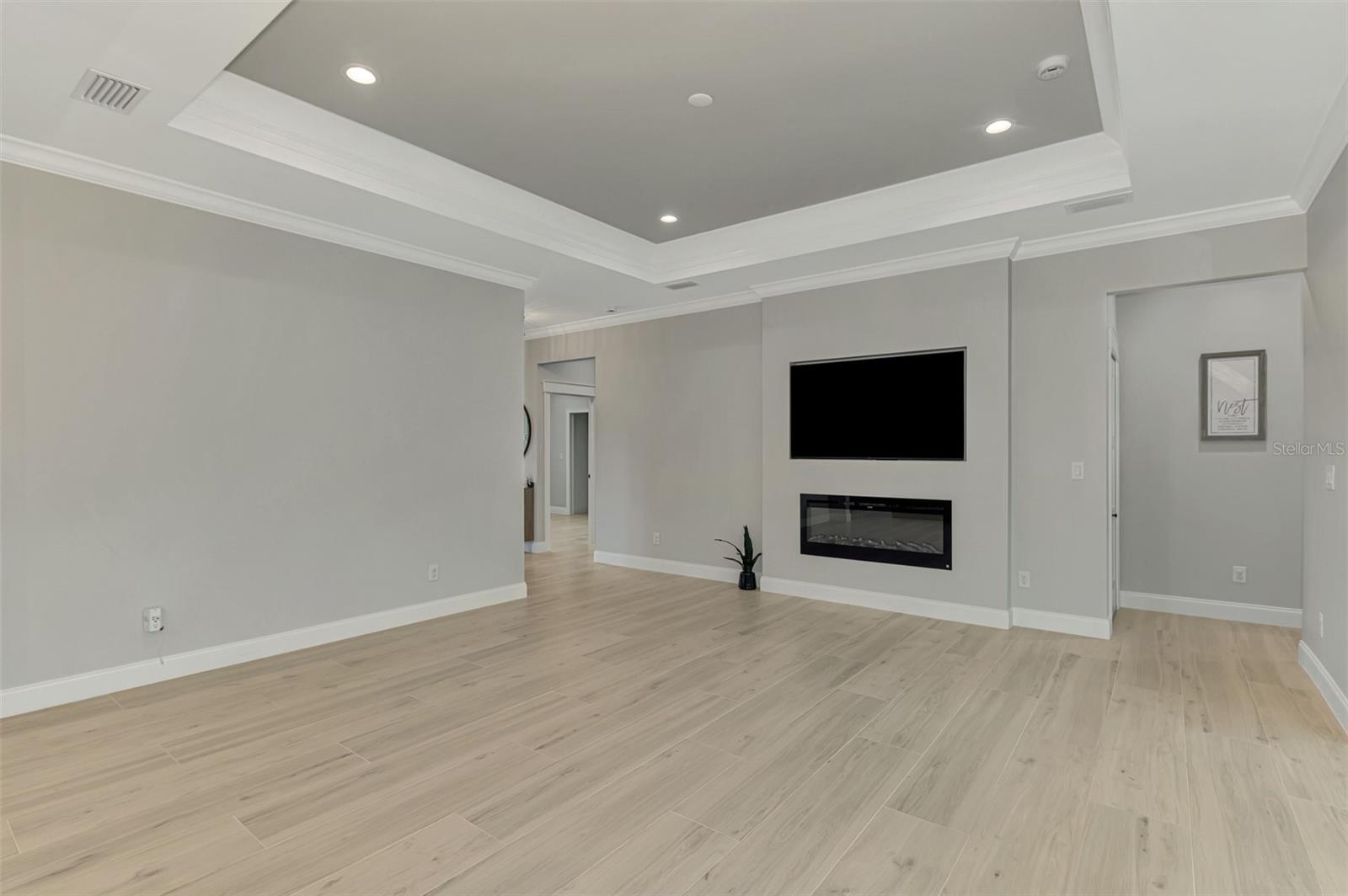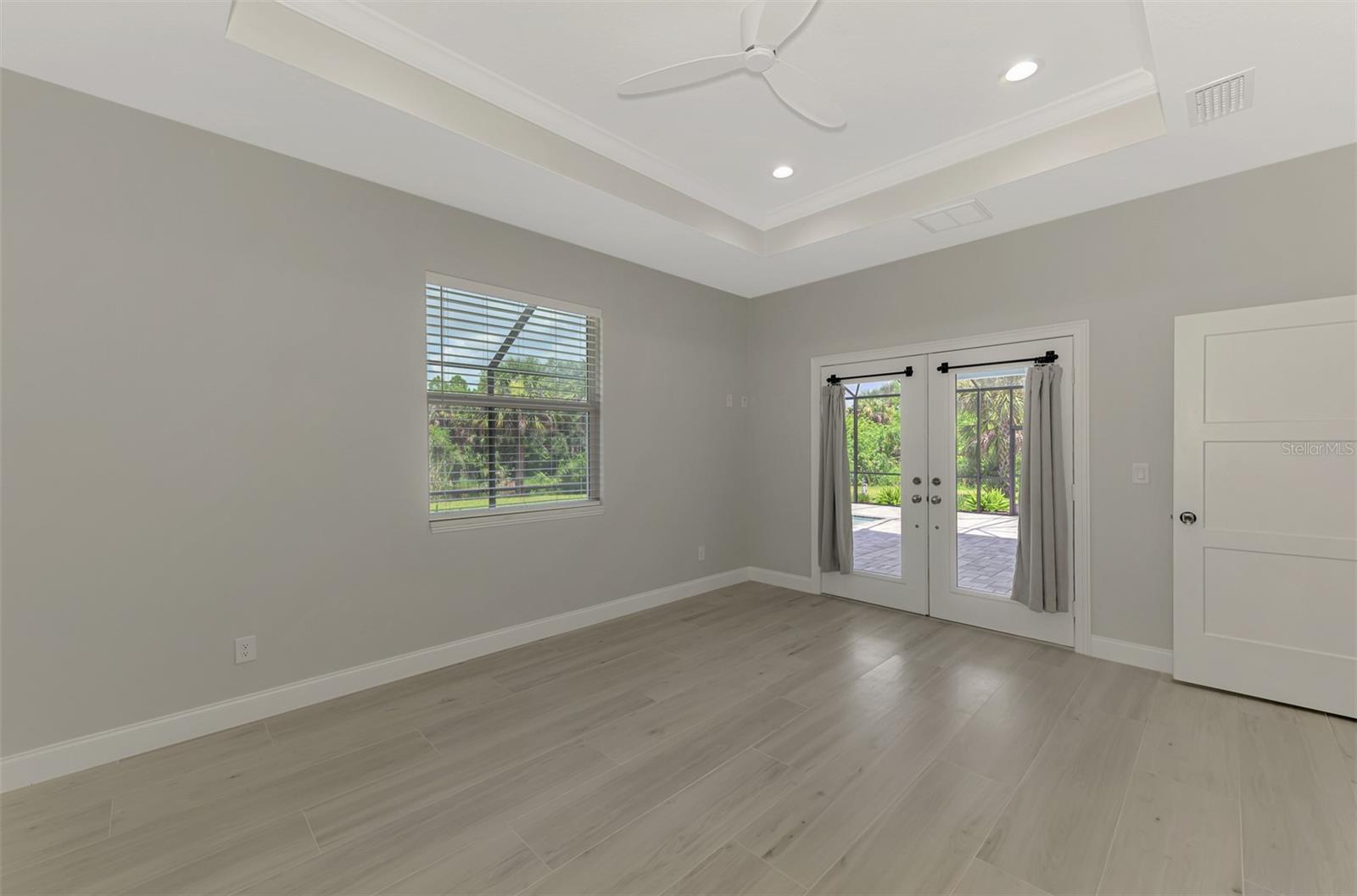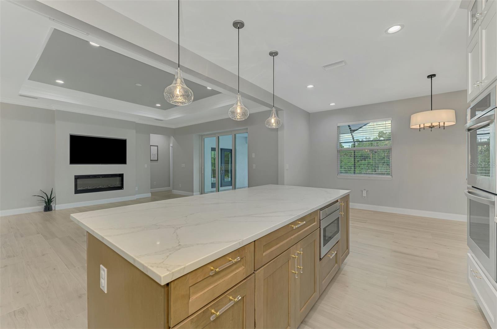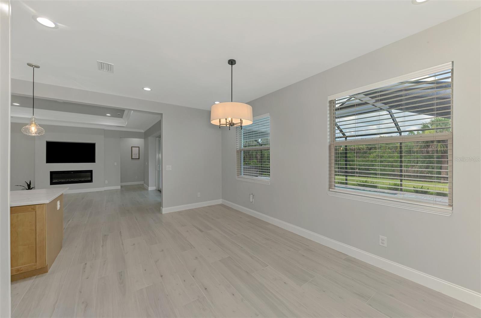 This beautiful 2023 canal-front pool home is packed with upgrades and custom touches, making it one of the most eye-catching homes on the market today. Tucked into a peaceful neighborhood that feels private yet keeps you close to shopping, schools, and restaurants, this property has the best of both worlds—comfort and convenience. Pulling into the oversized paver driveway, you’ll immediately notice there’s extra room for your boat or RV. The curb appeal is just the beginning. A screened and covered front porch is the perfect place to sip your morning coffee and take in the quiet charm of the area. Around the house, you'll find full gutters and clean modern lighting that adds a polished look to the exterior. Step inside, and you’re greeted by an open layout with smart design details throughout. The dedicated office with double doors and its own French doors out to the front porch gives you a peaceful space to work or relax. The living room is a true highlight with an electric fireplace, double tray ceilings, and detailed crown molding. Triple pocket sliders open wide, pulling your eyes straight to the canal and the show-stopping backyard. The saltwater heated pool is one of the home’s best features. With a large 50x28 pool deck, a sun shelf for relaxing, and an above-ground heated saltwater spa, this outdoor area is made for enjoying the Florida lifestyle. The covered lanai (16x15) gives you shade when you need it, and the full canal view is unforgettable. Inside the kitchen, you’ll find top-quality appliances including double ovens, a flat-top glass stove, stainless steel finishes, and a center island with a pull-out microwave. Wooden cabinets extend all the way to the ceiling, with glass doors and soft-close drawers that add an upscale touch. The spacious dining area is perfect for hosting and entertaining. The master suite overlooks the pool and canal and includes French doors, two walk-in closets, and a spa-style bathroom with dual sinks, a garden tub, and a rain shower with glass doors. Every bedroom includes a walk-in closet, and the entire home features wood-look tile flooring for easy maintenance and style. Additional features include an oversized garage with high ceilings, a fully equipped laundry room, impact windows, and professional landscaping with concrete curbing and flower beds. This one-of-a-kind home sits on an oversized lot right next to county-owned land and a scenic lake. Don’t miss your chance to see this remarkable property. Schedule your private tour today!
