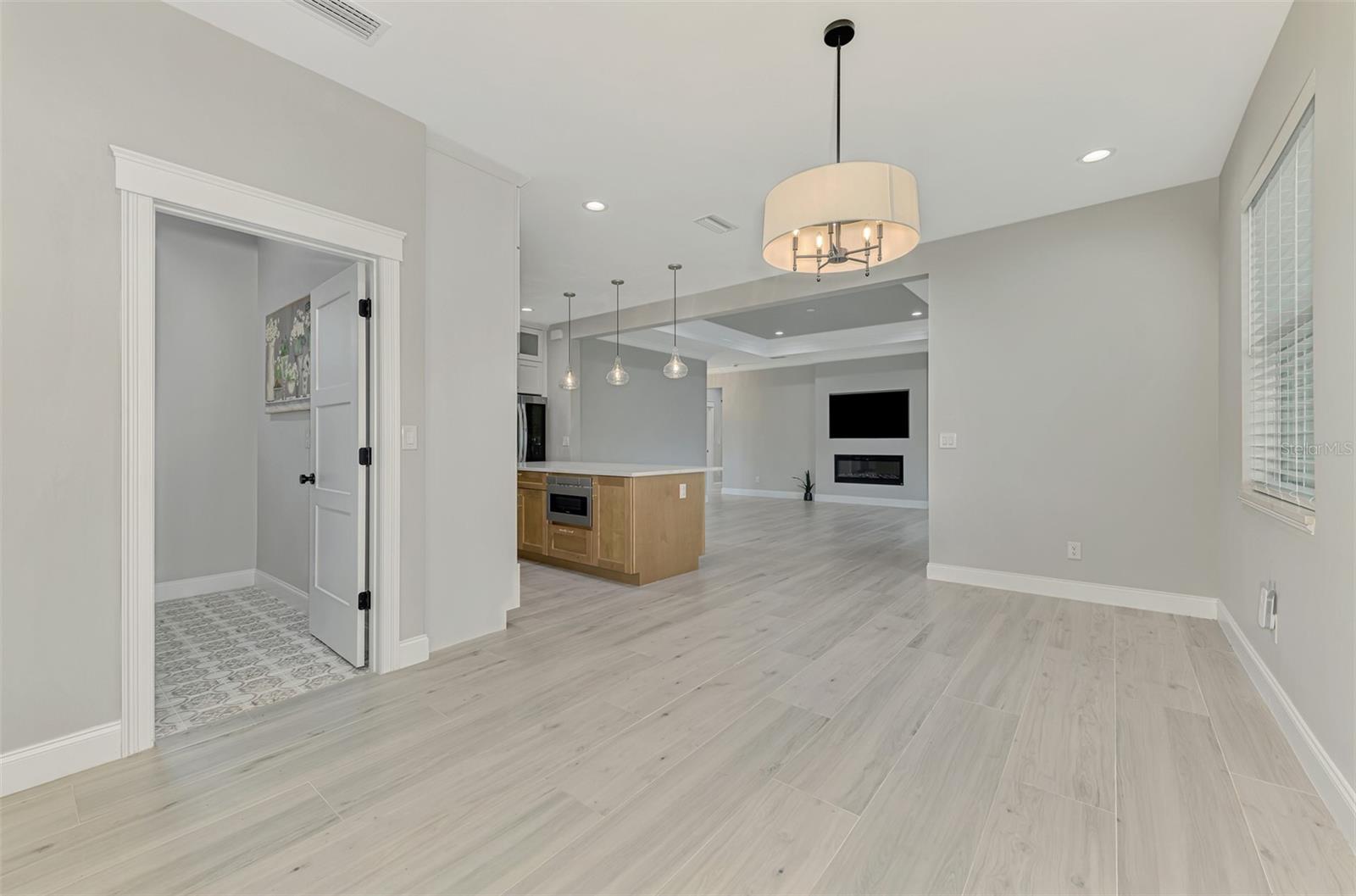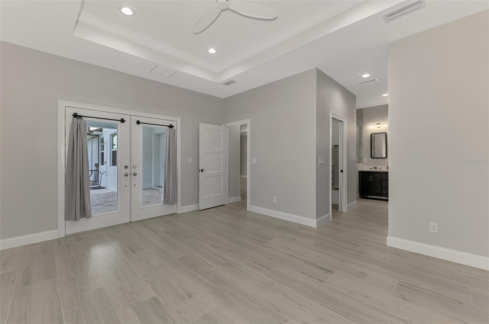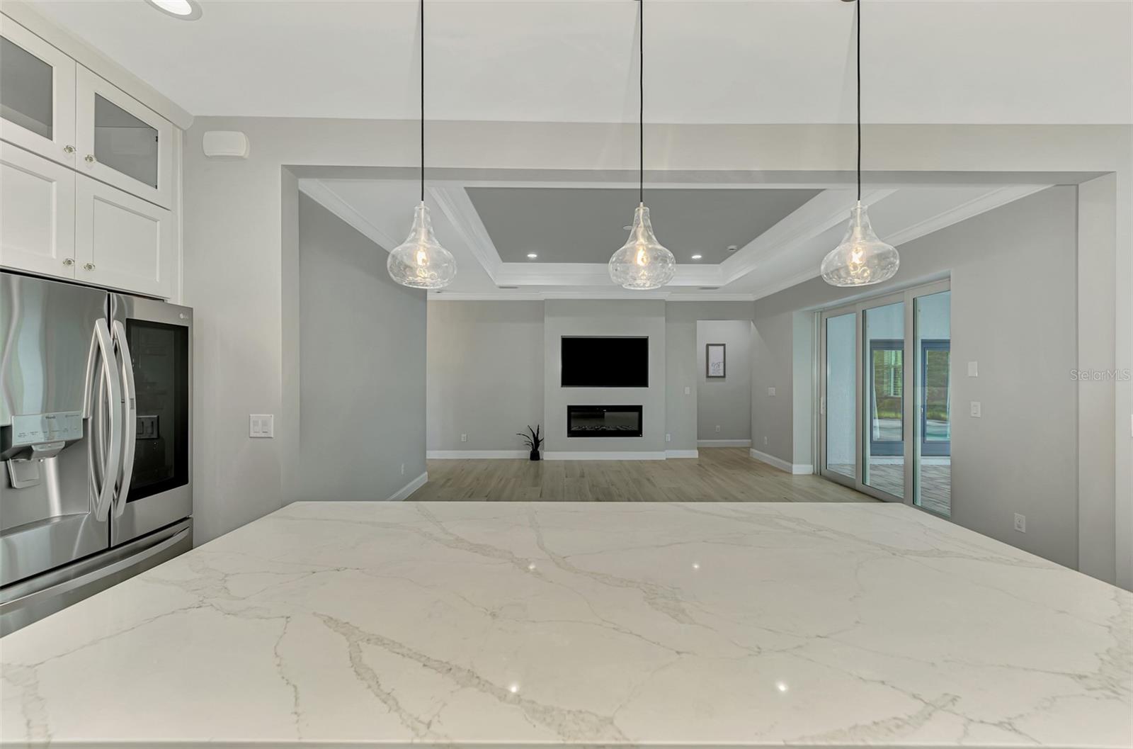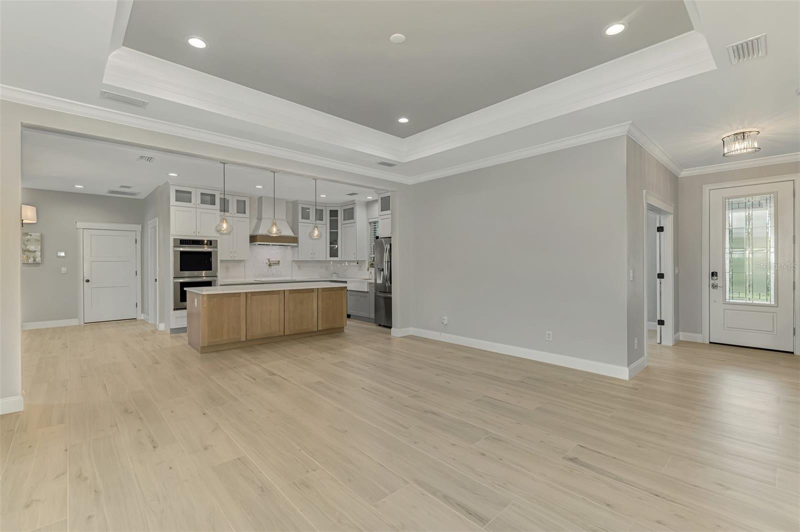 This beautiful 2023 canal-front pool home is packed with upgrades and custom touches, making it one of the most eye-catching homes on the market today. Tucked into a peaceful neighborhood that feels private yet keeps you close to shopping, schools, and restaurants, this property has the best of both worlds—comfort and convenience. Pulling into the oversized paver driveway, you’ll immediately notice there’s extra room for your boat or RV. The curb appeal is just the beginning. A screened and covered front porch is the perfect place to sip your morning coffee and take in the quiet charm of the area. Around the house, you'll find full gutters and clean modern lighting that adds a polished look to the exterior. Step inside, and you’re greeted by an open layout with smart design details throughout. The dedicated office with double doors and its own French doors out to the front porch gives you a peaceful space to work or relax. The living room is a true highlight with an electric fireplace, double tray ceilings, and detailed crown molding. Triple pocket sliders open wide, pulling your eyes straight to the canal and the show-stopping backyard. The saltwater heated pool is one of the home’s best features. With a large 50x28 pool deck, a sun shelf for relaxing, and an above-ground heated saltwater spa, this outdoor area is made for enjoying the Florida lifestyle. The covered lanai (16x15) gives you shade when you need it, and the full canal view is unforgettable. Inside the kitchen, you’ll find top-quality appliances including double ovens, a flat-top glass stove, stainless steel finishes, and a center island with a pull-out microwave. Wooden cabinets extend all the way to the ceiling, with glass doors and soft-close drawers that add an upscale touch. The spacious dining area is perfect for hosting and entertaining. The master suite overlooks the pool and canal and includes French doors, two walk-in closets, and a spa-style bathroom with dual sinks, a garden tub, and a rain shower with glass doors. Every bedroom includes a walk-in closet, and the entire home features wood-look tile flooring for easy maintenance and style. Additional features include an oversized garage with high ceilings, a fully equipped laundry room, impact windows, and professional landscaping with concrete curbing and flower beds. This one-of-a-kind home sits on an oversized lot right next to county-owned land and a scenic lake. Don’t miss your chance to see this remarkable property. Schedule your private tour today!
