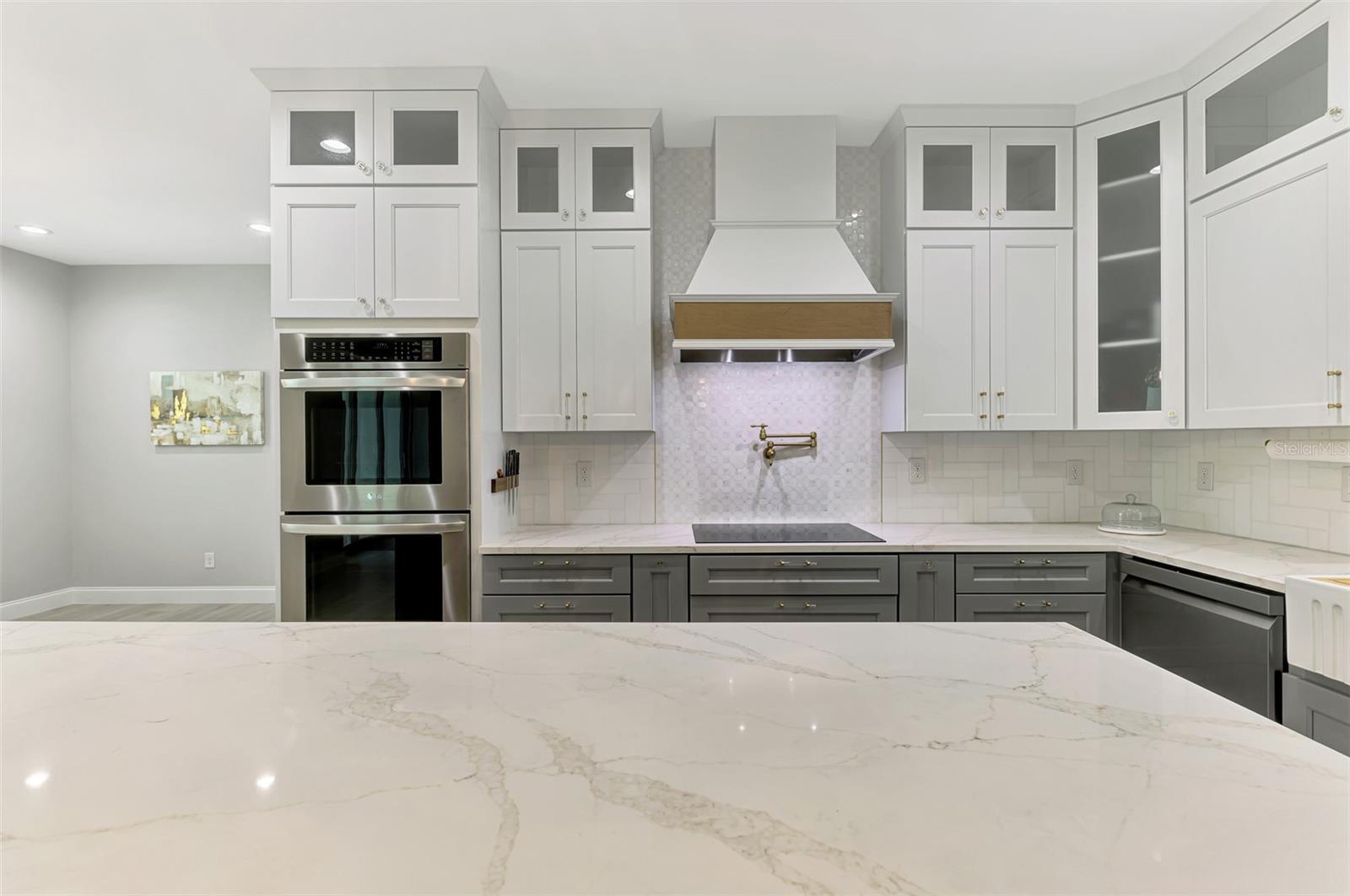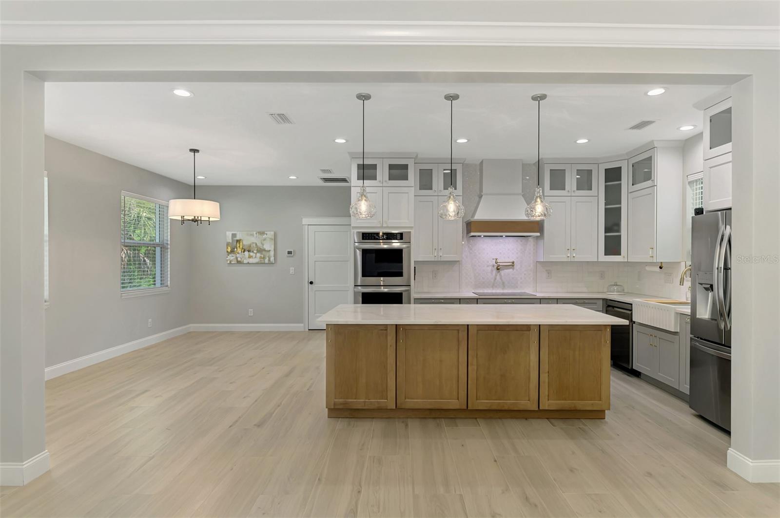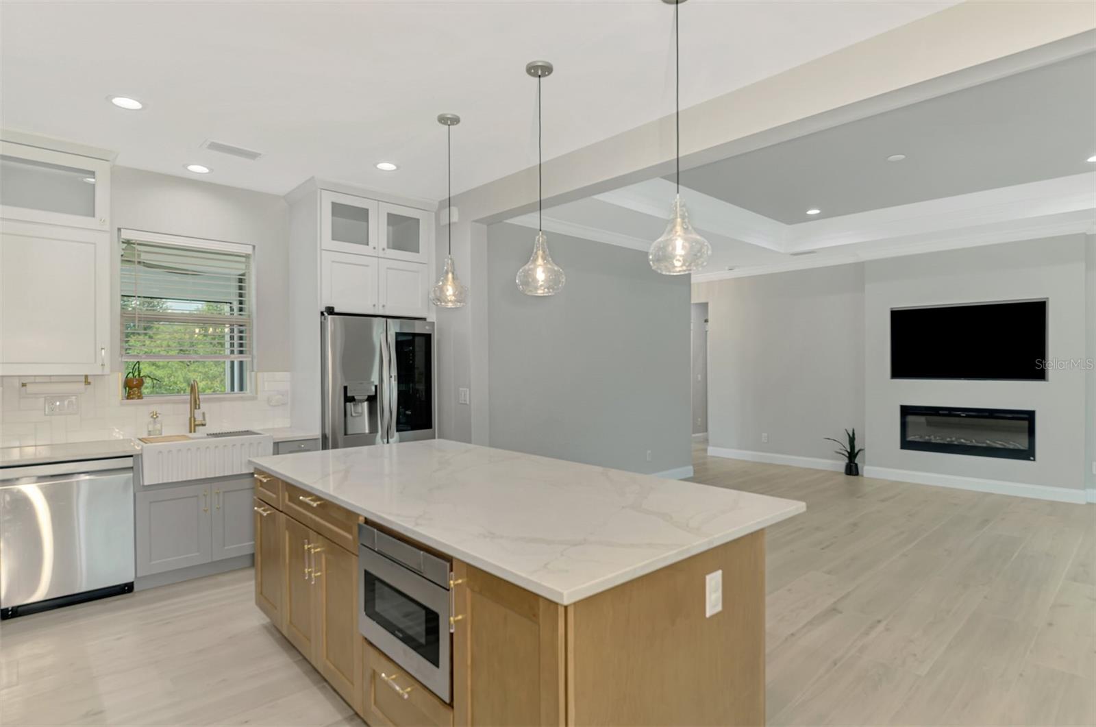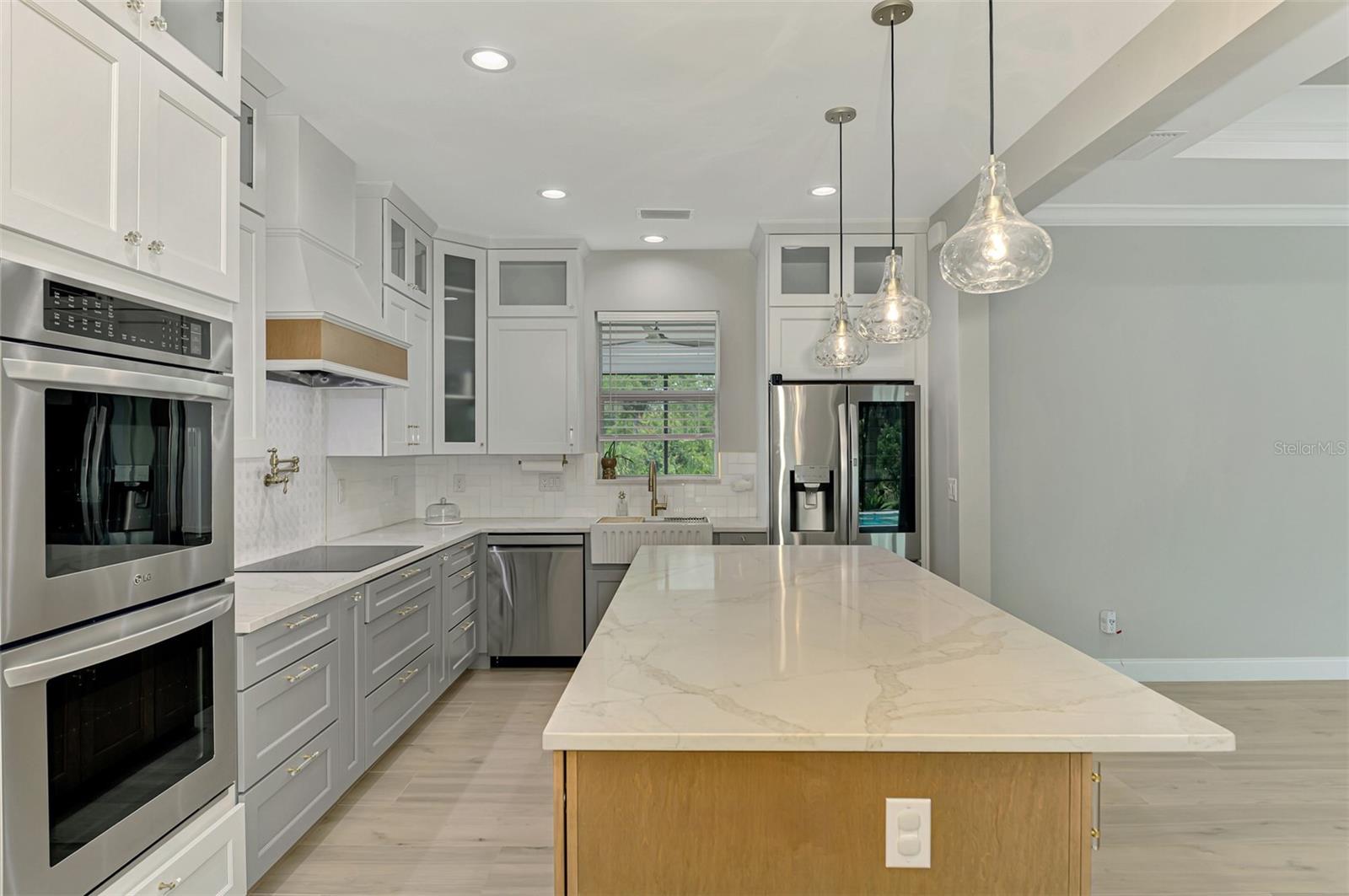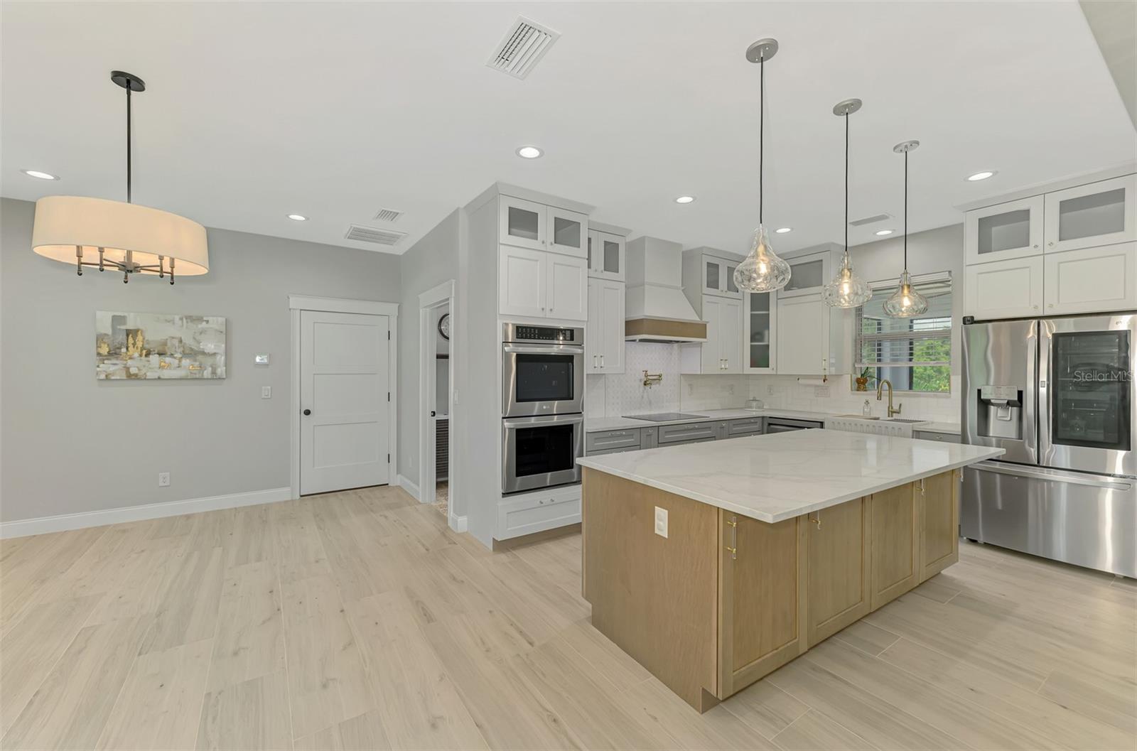 This beautiful 2023 canal-front pool home is packed with upgrades and custom touches, making it one of the most eye-catching homes on the market today. Tucked into a peaceful neighborhood that feels private yet keeps you close to shopping, schools, and restaurants, this property has the best of both worlds—comfort and convenience. Pulling into the oversized paver driveway, you’ll immediately notice there’s extra room for your boat or RV. The curb appeal is just the beginning. A screened and covered front porch is the perfect place to sip your morning coffee and take in the quiet charm of the area. Around the house, you'll find full gutters and clean modern lighting that adds a polished look to the exterior. Step inside, and you’re greeted by an open layout with smart design details throughout. The dedicated office with double doors and its own French doors out to the front porch gives you a peaceful space to work or relax. The living room is a true highlight with an electric fireplace, double tray ceilings, and detailed crown molding. Triple pocket sliders open wide, pulling your eyes straight to the canal and the show-stopping backyard. The saltwater heated pool is one of the home’s best features. With a large 50x28 pool deck, a sun shelf for relaxing, and an above-ground heated saltwater spa, this outdoor area is made for enjoying the Florida lifestyle. The covered lanai (16x15) gives you shade when you need it, and the full canal view is unforgettable. Inside the kitchen, you’ll find top-quality appliances including double ovens, a flat-top glass stove, stainless steel finishes, and a center island with a pull-out microwave. Wooden cabinets extend all the way to the ceiling, with glass doors and soft-close drawers that add an upscale touch. The spacious dining area is perfect for hosting and entertaining. The master suite overlooks the pool and canal and includes French doors, two walk-in closets, and a spa-style bathroom with dual sinks, a garden tub, and a rain shower with glass doors. Every bedroom includes a walk-in closet, and the entire home features wood-look tile flooring for easy maintenance and style. Additional features include an oversized garage with high ceilings, a fully equipped laundry room, impact windows, and professional landscaping with concrete curbing and flower beds. This one-of-a-kind home sits on an oversized lot right next to county-owned land and a scenic lake. Don’t miss your chance to see this remarkable property. Schedule your private tour today!