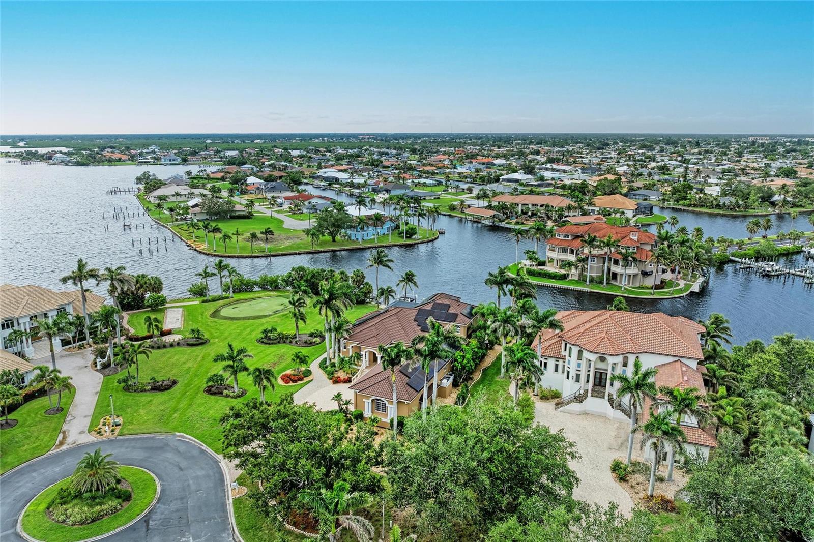 Welcome to Grassy Point Yacht Club, a rare 24-hour gated estate community on Charlotte Harbor offering private marina access, perfect for waterfront luxury living. This impeccably maintained home sits on the Elkcam Waterway, boasting panoramic harbor views and nightly sunset spectacles. The nearly 1,200-square-foot screened and covered lanai invites seamless indoor–outdoor living, with floor-to-ceiling sliding glass and glass pocket doors that open onto a gorgeous pool and spa deck. Additions include a private sunning area overlooking a neighbor’s putting green and custom Nebula lighting that sets a refined ambiance for evening entertaining. For boating enthusiasts, the property provides a 30,000-pound boat lift with upgraded remote-controlled Gem system, stainless steel cables, pulleys, and aluminum supports, plus a full-length, deep-water concrete dock accommodating vessels up to 55 feet. A second 6,000-pound lift offers convenience for jet skis or another boat, and all 22 pilings have been freshly serviced. Dockside amenities also include dual 50 amp and 30 amp power/water stations. In 2025, the residence received extensive luxury enhancements: the interior and exterior were freshly painted, the primary suite received elegant wide-plank porcelain tile flooring, and the home was outfitted with ten high-end ceiling fans, recessed LED lighting, and premium linear HVAC vents. The kitchen has been transformed with designer quartz countertops, backsplash, a new refrigerator, dishwasher, wine/beverage cooler, plus under- and over-cabinet lighting. Both covered porches have tongue-and-groove wood ceilings, and the landscape was fully renovated with new irrigation and an underground 250-gallon propane tank powering the outdoor kitchen and lanai fireplace. Built to stand the test of time, the home features a 50-year Boral stone-coated steel roof, a solar system generating 110% of its power needs, two high-efficiency water heaters, whole-house filtration, a Generac propane generator, and three high-efficiency HVAC systems. With hurricane-rated windows, storm coverings, and four ensuite bedrooms, including primary suites on both levels, plus custom plantation shutters throughout, every detail balances comfort and resilience. The oversized garage adds room for three to six vehicles, complete with epoxy flooring, hurricane-rated doors, built-in storage, and an EV charger, while the paver driveway and walkways lead to an additional RV hookup and accentuate the residence’s polished curb appeal. This property is not just a home, it’s a waterfront sanctuary designed for entertaining, relaxation, and luxurious everyday living. Schedule a private showing to experience its full splendor. See attached feature sheet for full list of upgrades. SELLER FINANCING AVAILABLE! BE SURE TO CLICK THE FULL VIRTUAL TOUR LINKS FOR DETAILS!