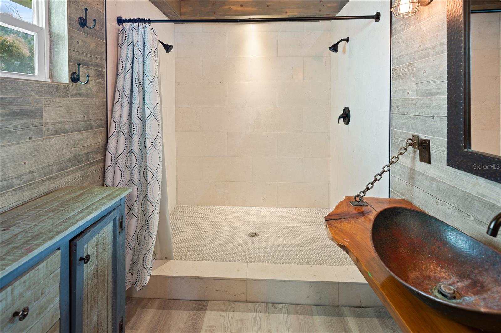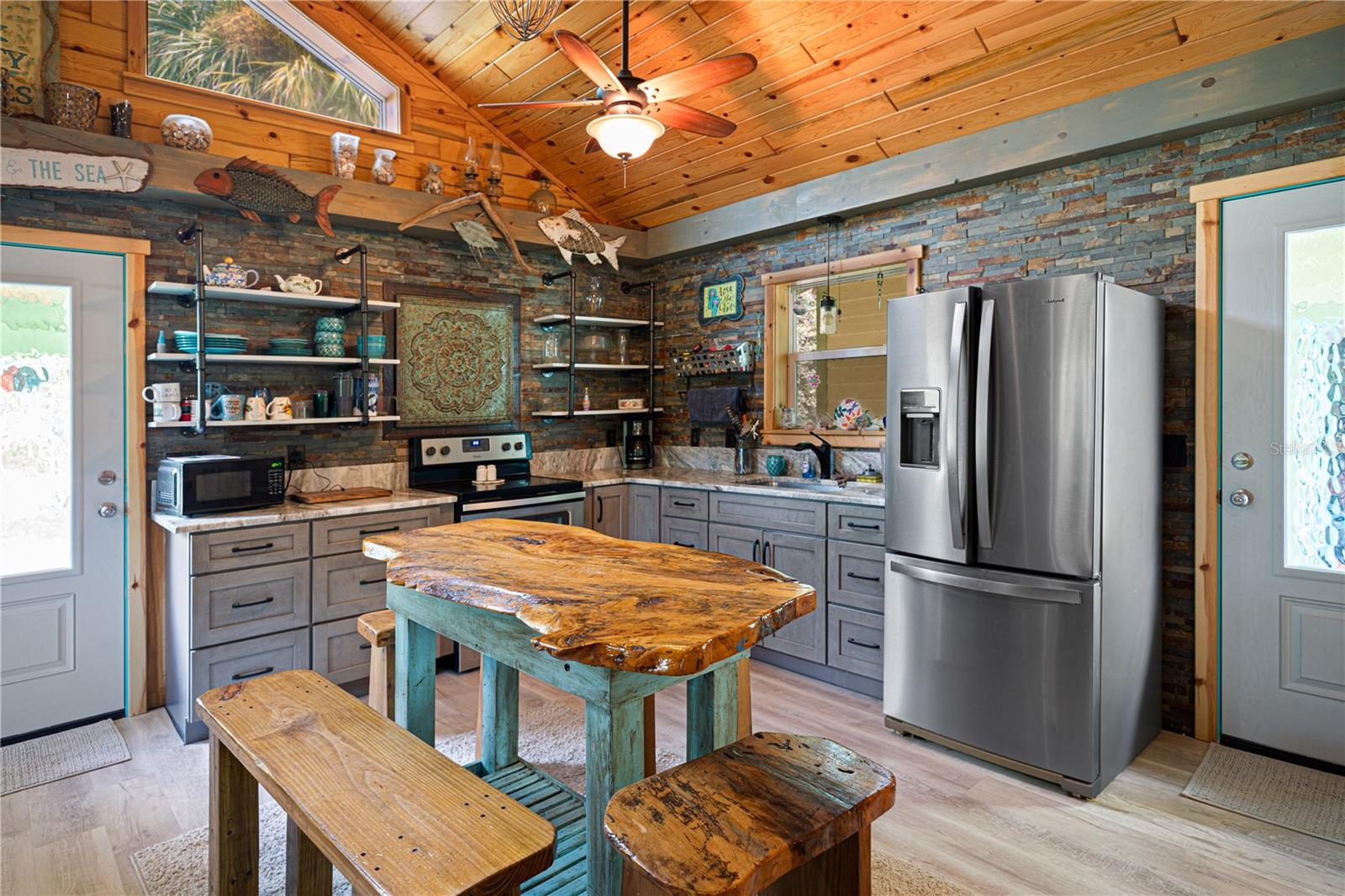 RARE OPPORTUNITY 1 Bedroom, 1 Bathroom, 2 Car Detached Garage with an upstairs 3 Bedroom, 1 Bathroom and kitchenette in-law suite, situated on a corner DOUBLE lot in Englewood. NO HOA FEES! CLICK ON THE VIRTUAL TOUR LINK 1 FOR THE VIDEO AND VIRTUAL LINK 2 FOR THE 3D TOUR. Welcome to this beautifully designed studio home, where modern style meets practical comfort. The open floor plan seamlessly blends living and dining spaces, highlighted by a sleek kitchen featuring granite countertops, stainless steel appliances, a tiled backsplash, and stylish open shelving—perfect for effortless entertaining and everyday living. The sleeping area includes a floating bed, two wardrobe closets and a matching dresser for ample storage. A spacious bathroom offers a luxurious walk-in shower with dual shower heads and two linen closets for added convenience. Step outside to a private oasis—enjoy a covered patio overlooking a wooded backdrop, a heated above-ground spa, and a breezeway that leads to a sun deck, an outdoor shower, and a separate entrance to the garage living space. Above the garage, a finished guest suite offers endless flexibility: host family, welcome visiting friends, or explore rental income opportunities. Situated on a rare double lot, this property is packed with potential—including an RV pad with full water and electric hookups. Whether you're looking for a full-time residence, a weekend escape, or a versatile investment, this unique property delivers it all. METAL ROOF - HURRICANE IMPACT WINDOWS & DOORS. Conveniently located close to 776 and US-41 providing easy access to shops at Price Crossing, Cocoplum Shopping Center, and the Port Charlotte mall, where you can choose from a variety of restaurants, grocery stores, retail shops, and a short car ride to award-winning beaches, making this an ideal location!! Schedule your showing TODAY!
