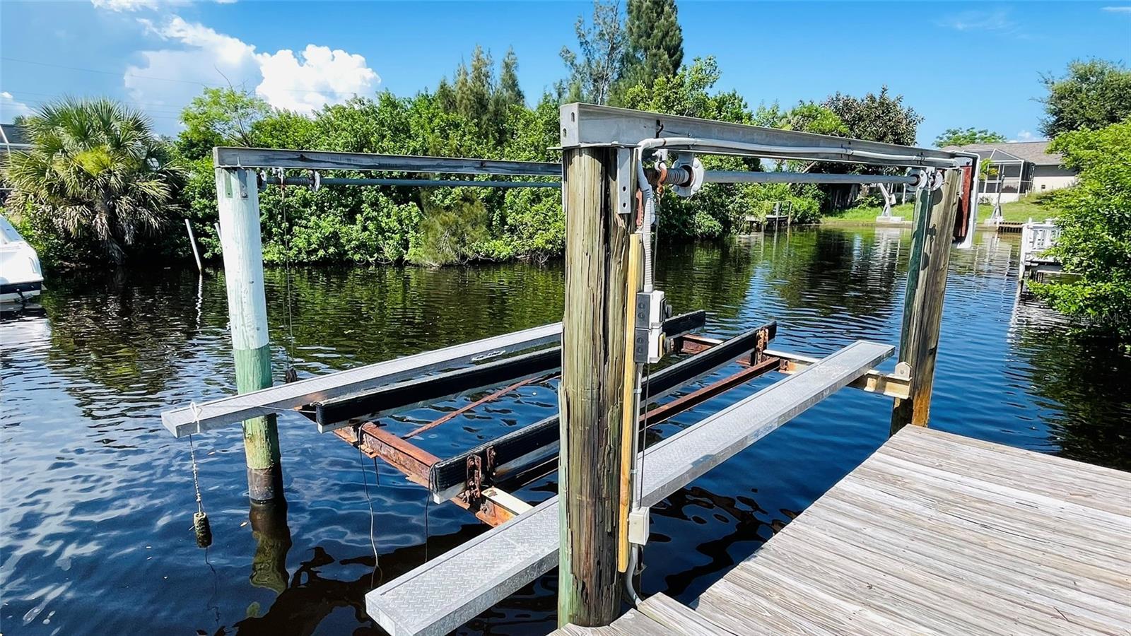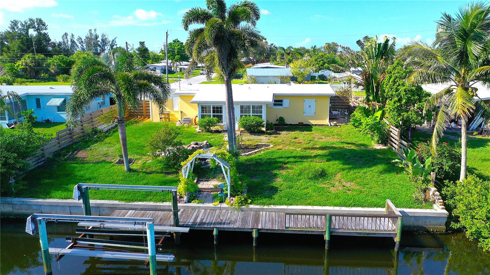 Price Reduced – Waterfront Fishing Opportunity with Dock & Boat Lift. This solid block-construction waterfront home offers a rare opportunity for boaters and anglers seeking direct water access, private dockage, and quick Harbor access at an attractive price point. Featuring 3 bedrooms, 1 bathroom, and a carport, this property is designed for practical coastal living with a strong focus on boating and fishing functionality. Enjoy approximately 7 minutes by boat to Charlotte Harbor, passing under one bridge with approximately 10-foot clearance, making this an ideal setup for inshore and nearshore anglers. The property includes a 75-foot concrete seawall, a 50-foot private dock, and a 7,000 lb boat lift, providing excellent accommodations for fishing vessels and watercraft. Inside, the home offers an open living layout that connects the kitchen and main living area—well suited for everyday living or hosting guests. The kitchen is equipped with Frigidaire appliances and ample storage. A flex room adds versatility and works well as a hobby space, tackle room, or additional storage. An 11x8 workshop under the carport provides a convenient area for boat gear, maintenance, or tools. Three bedrooms allow comfortable accommodations for family or visiting guests. Outdoors, the fenced and landscaped backyard offers privacy and a relaxed waterfront setting. Paver walkways lead through mature tropical landscaping to the dock, creating a functional and enjoyable outdoor space ideal for fishing, relaxing by the water, or enjoying evening views. The waterfront area also offers space for fish cleaning and waterside entertaining. Additional highlights include durable block construction, a newer roof, and a move-in-ready condition, making this property suitable as a primary residence, second home, or investment opportunity. With its combination of waterfront access, dock, boat lift, seawall, and proximity to Charlotte Harbor fishing grounds, this home presents strong value for boating and fishing enthusiasts. Schedule your private showing to explore the potential of this waterfront property and experience the Florida fishing lifestyle firsthand.