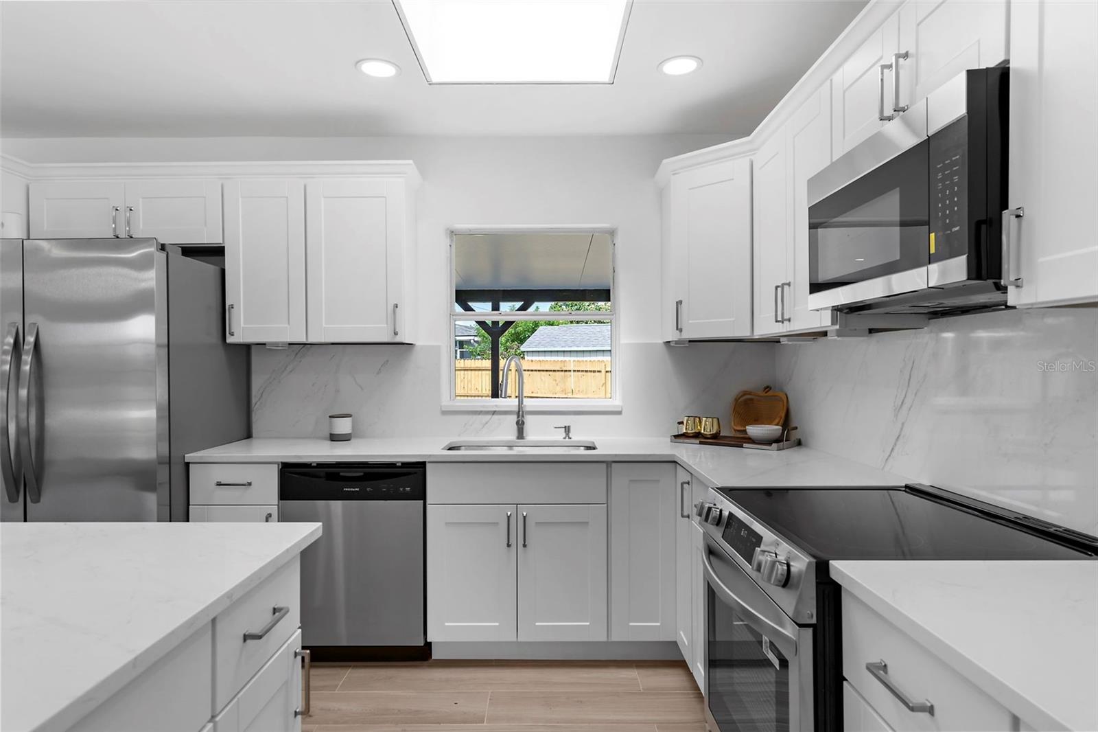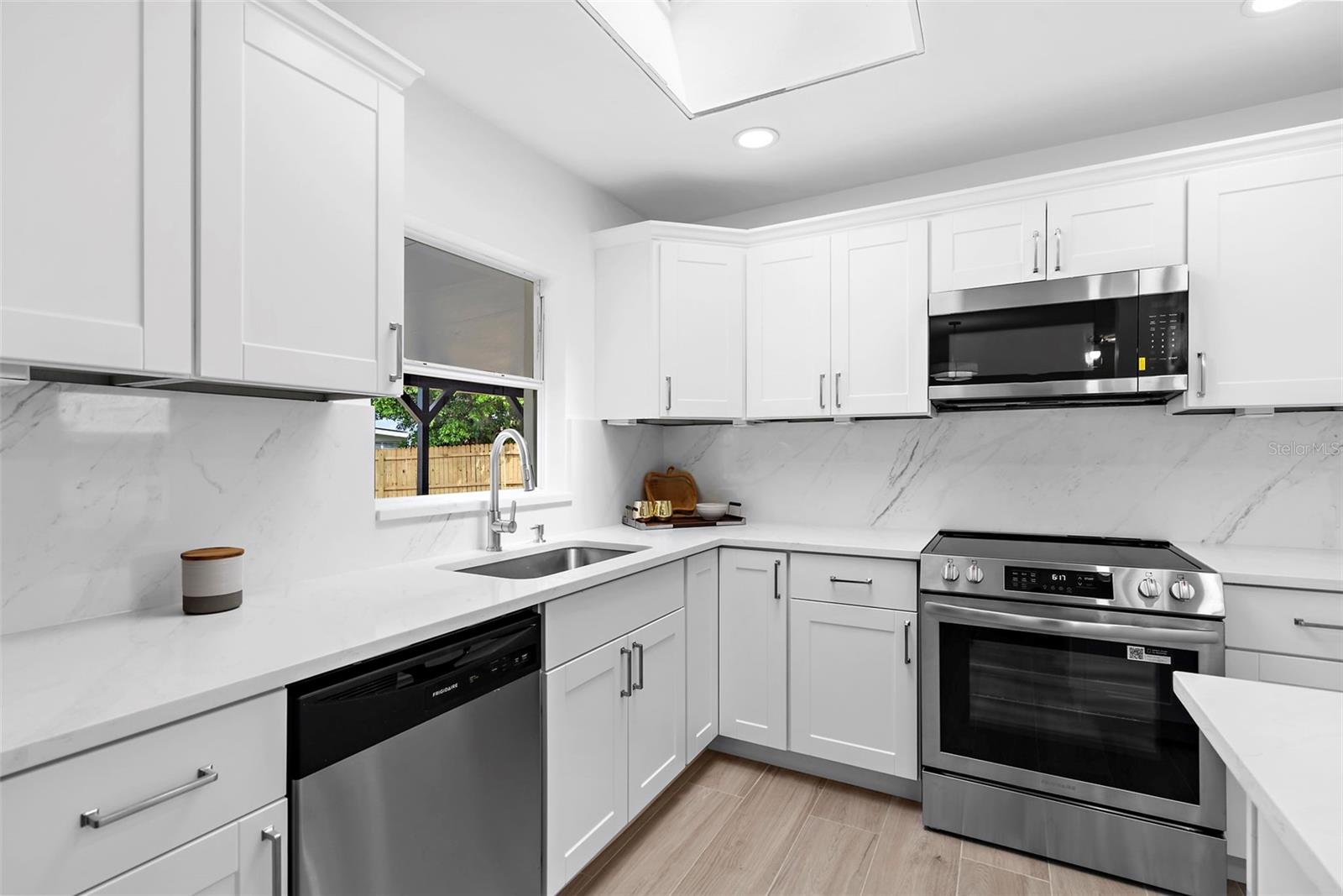 Looking for a move-in ready home near the beach? This freshly renovated THREE bedroom, 1 bathroom home in Port Charlotte is the perfect blend of comfort, style, and laid-back Florida living. Inside, everything’s brand new — from the ceramic tile flooring (no carpet!) to the shaker cabinets, quartz countertops, and stainless steel appliances in the kitchen. There’s even a cozy eat-in bar that’s perfect for morning coffee or casual dinners. The entire home has been freshly painted inside and out, and big-ticket updates have already been taken care of: new A/C, new plumbing, new electrical, and a metal roof that’s built to last. Step out back and enjoy your private yard, now with freshly planted palm trees adding that tropical vibe. Sitting on a corner lot, you’ll have extra space, plus a 1-car garage for storage or parking. Best part? You’re just minutes from the beaches, shopping, restaurants, and everything else that makes life on the Gulf Coast so relaxing. Whether you're looking for a full-time home, a weekend getaway, or a smart investment, this one checks all the boxes.
