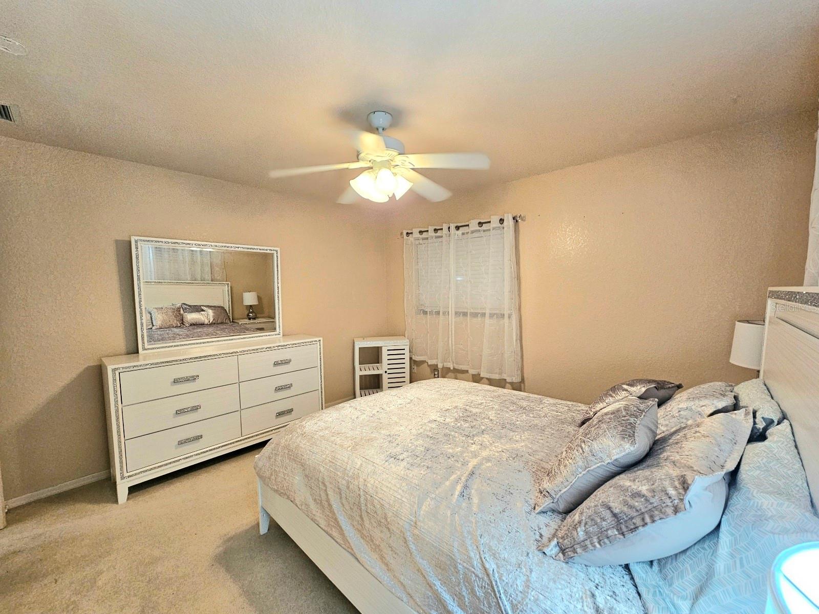 SELLER MOTIVATED TO SELL: ADDITIONAL PRICE REDUCTION Open Floor Plan 3 bedrooms, 2 baths, 2 car garage surrounded by 2 vacant lots that have been combined with the main house, so you have lots of privacy. A new Generac Generator recently Installed in February 2025 (This means you will never lose Electricity during any power failures) All plumbing has been updated (Re-piped-no copper pipes), Electrical updated to include Electric Power all along the Vinyl Fence (Approximately 250+ feet of Fence). Sprinklers on one of the vacant lot and main house. New Roof with Third Nail installed May 2023. Accordion Shutters on all windows including the screened in lanai and front door. This home is protected in every way. Landscaping with a plethora of Solar Lights to illuminate the property at nighttime. Solar Light Caps on the Vinyl Fence. The kitchen has updated cabinets and Corian Countertops, Side by Side Refrigerator, Dishwasher, new glass top stove & over the hood Microwave Oven, large pantry with bifold mirrored doors. Dining Room comes with a built in Mirrored/Glass Wall Unit to show off all your cherished heir looms or awards and whatever you want it to show off. The bottom cabinets can store all your cherished dinnerware & silverware. Living Room/Grand Room will accommodate a sectional sofa and large screen TV. Master Bedroom with ensuite bathroom has a Roman Type walk-in Shower with a bench and built in shelves for Shampoos & Soaps, updated vanity sink with granite countertop and a toilet closet, large linen closet. Guest bedrooms can accommodate queen beds or twin beds or used as a home office, both have built in closets with Bifold Mirrored Doors. Updated Ceramic Tile Flooring in Living Room, Dining Room, Kitchen, Hallways, & guest bathroom. Carpets in Master Bedroom and the 2 guest bedrooms. All rooms have ceiling fans with Lighting, including 2 ceiling fans in the lanai. Guest Bathroom comes with walkin Tub with Jacuzzi Jets and mood lighting. Laundry Room comes with LG Front Loaders with the bases, Bifold Mirrored Doors and across from the laundry room there is another large pantry closet to store pots & pans & whatever you want to use it for with bifold mirrored doors as well. This home is within a short driving distance to any type of Restaurants, shopping stores, medical facilities and hospitals, and schools. Charlotte Harbor Beach Complex is about 6 to 10 minutes away & has been very well maintained and cared for. Home is sold with the 2 additional lots plus two (2) 10 x 16 Sheds. Furniture not included: Furniture is optional at a separate transaction: