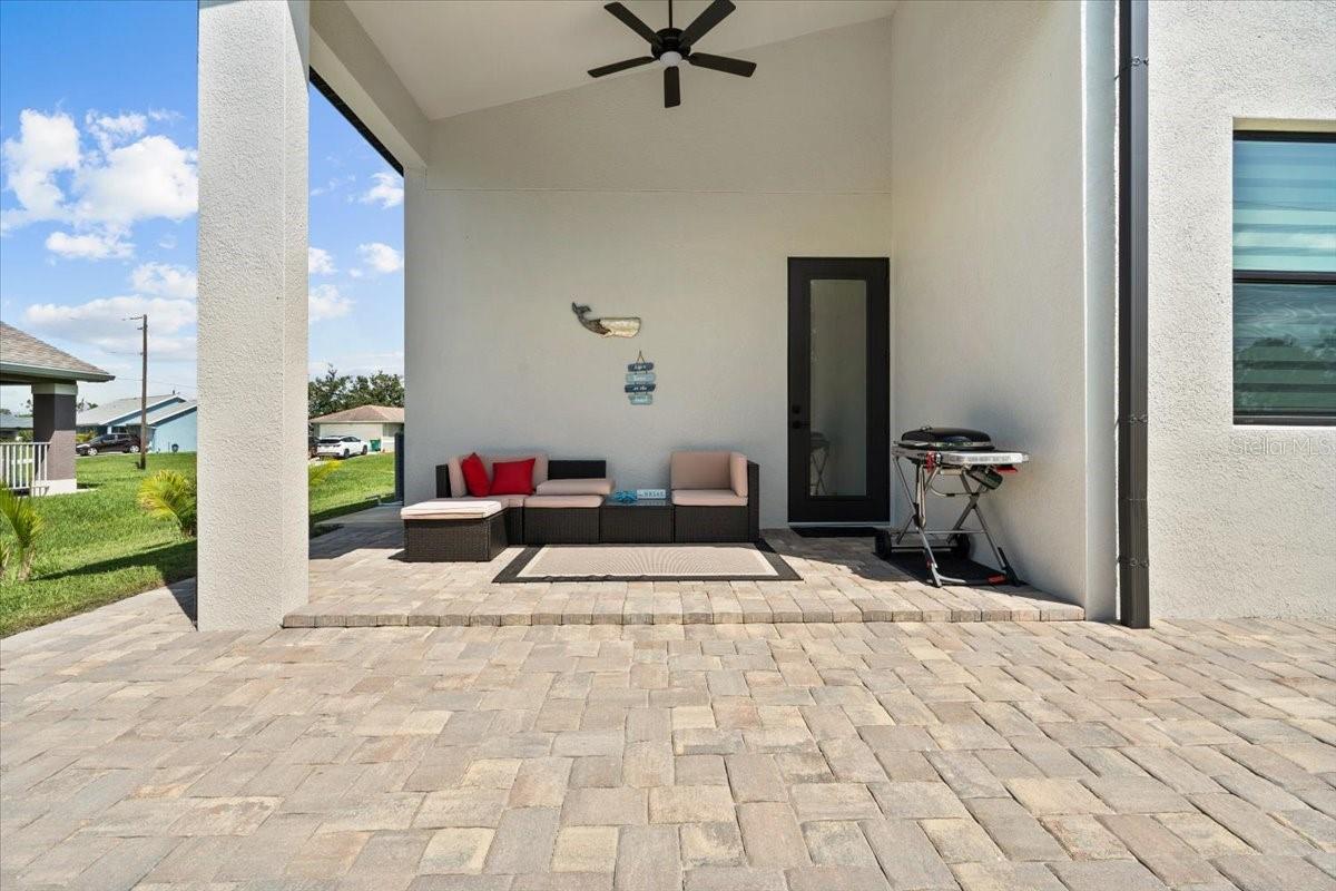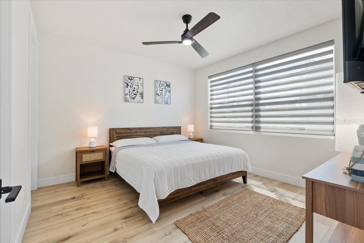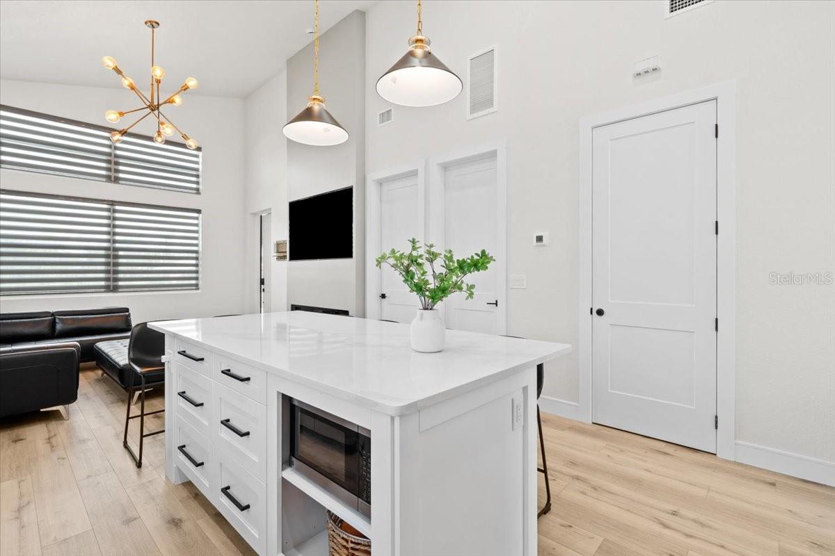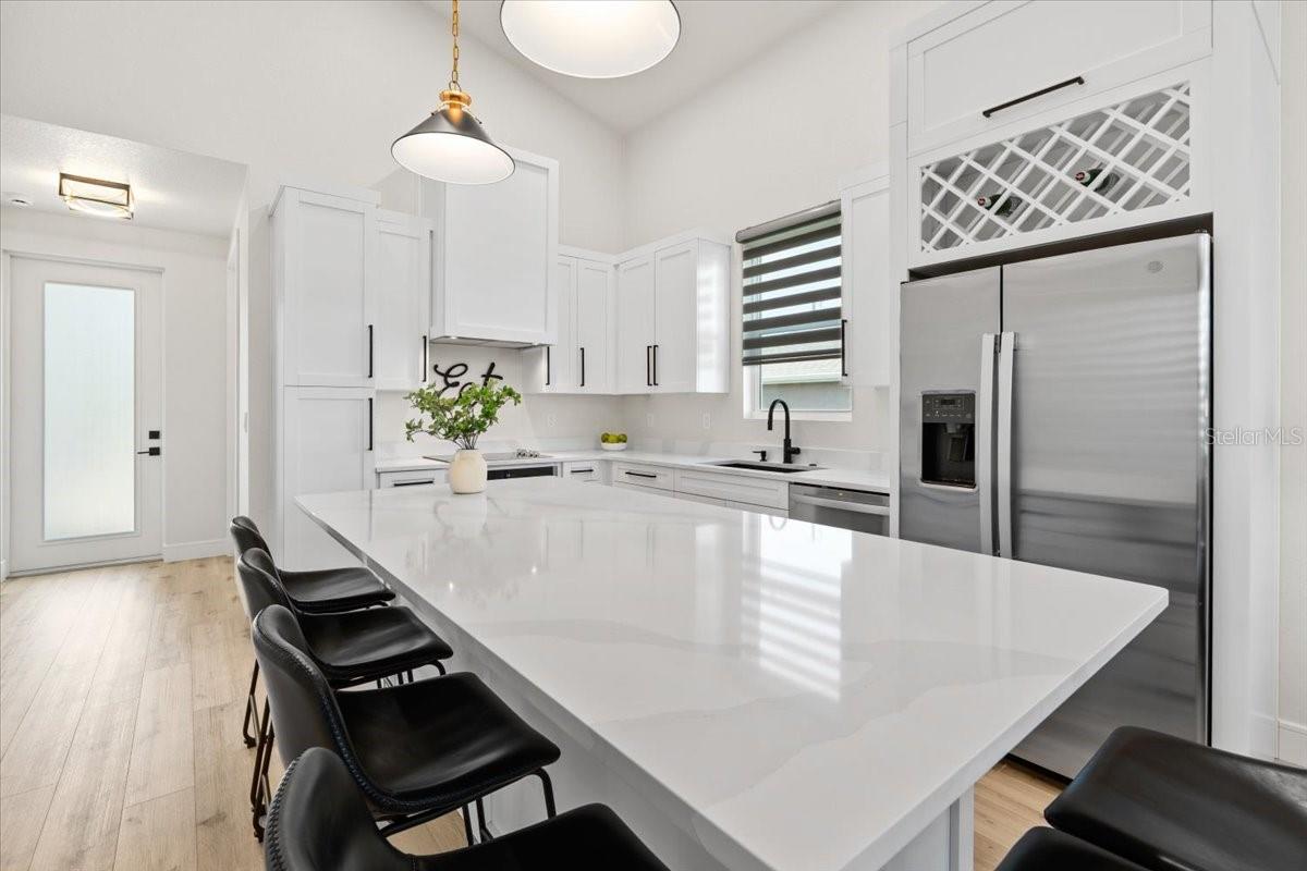 This meticulously crafted, light-filled home combines modern elegance with functional design. Enjoy vaulted ceilings, luxury vinyl plank flooring, and a spacious open-concept layout. The gourmet kitchen features 42" soft-close cabinets, Calacatta quartz countertops, a large island, walk-in pantry, and brand new luxury stainless steel appliances. Two generously sized bedrooms include walk-in closets and ceiling fans, while a versatile bonus room with private entry is ideal for a home office, guest suite, or creative space. The home features elegant modern lighting in the main living spaces that beautifully complements its open design. For added privacy and style, all windows feature double-layer designer shades. Step out to a spacious, covered lanai and generous backyard, perfect for entertaining or relaxing. Located in the desirable Gulf Cove community, offering *voluntary* HOA membership with access to a private boat ramp on the Myakka River—ideal for boating enthusiasts. The area has no deed restrictions, making it perfect for those with RVs or boats. Conveniently located near beaches, golf, shopping, and dining, with easy access to SR-776 and US-41. Additional upgrades include: hurricane-impact windows and doors, 8' interior doors, a 45' paved driveway, and a covered carport with EV charging outlet.