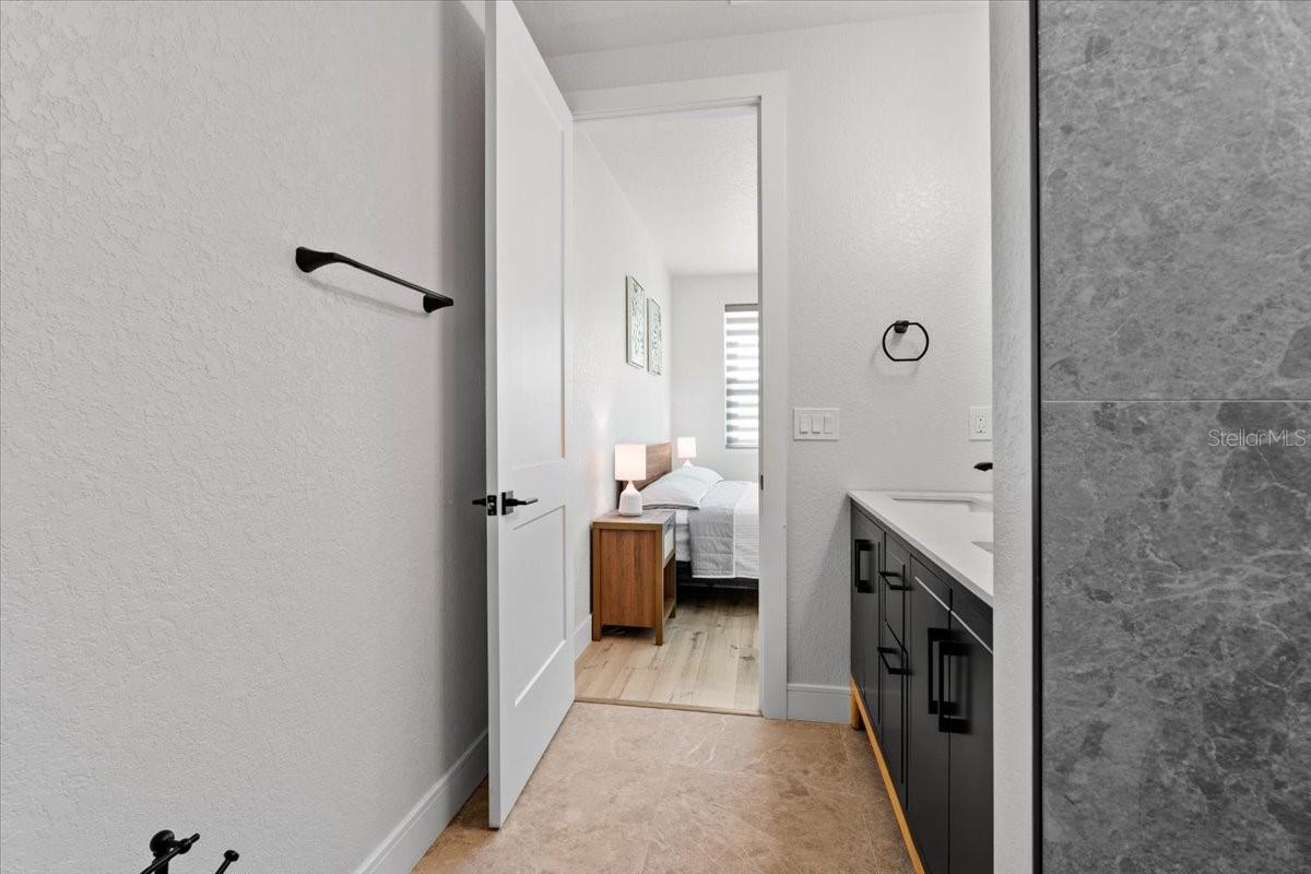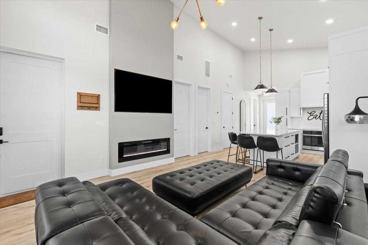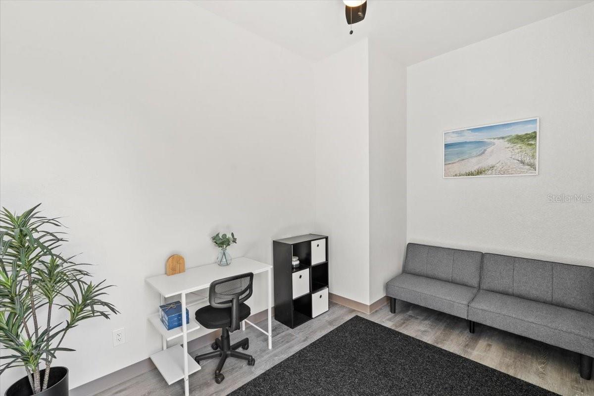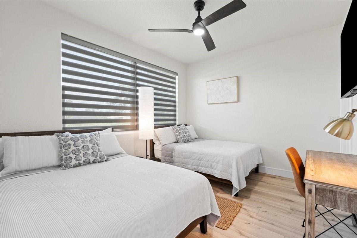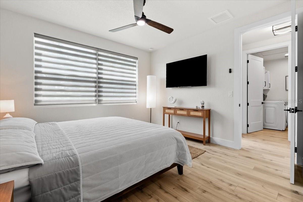 This meticulously crafted, light-filled home combines modern elegance with functional design. Enjoy vaulted ceilings, luxury vinyl plank flooring, and a spacious open-concept layout. The gourmet kitchen features 42" soft-close cabinets, Calacatta quartz countertops, a large island, walk-in pantry, and brand new luxury stainless steel appliances. Two generously sized bedrooms include walk-in closets and ceiling fans, while a versatile bonus room with private entry is ideal for a home office, guest suite, or creative space. The home features elegant modern lighting in the main living spaces that beautifully complements its open design. For added privacy and style, all windows feature double-layer designer shades. Step out to a spacious, covered lanai and generous backyard, perfect for entertaining or relaxing. Located in the desirable Gulf Cove community, offering *voluntary* HOA membership with access to a private boat ramp on the Myakka River—ideal for boating enthusiasts. The area has no deed restrictions, making it perfect for those with RVs or boats. Conveniently located near beaches, golf, shopping, and dining, with easy access to SR-776 and US-41. Additional upgrades include: hurricane-impact windows and doors, 8' interior doors, a 45' paved driveway, and a covered carport with EV charging outlet.