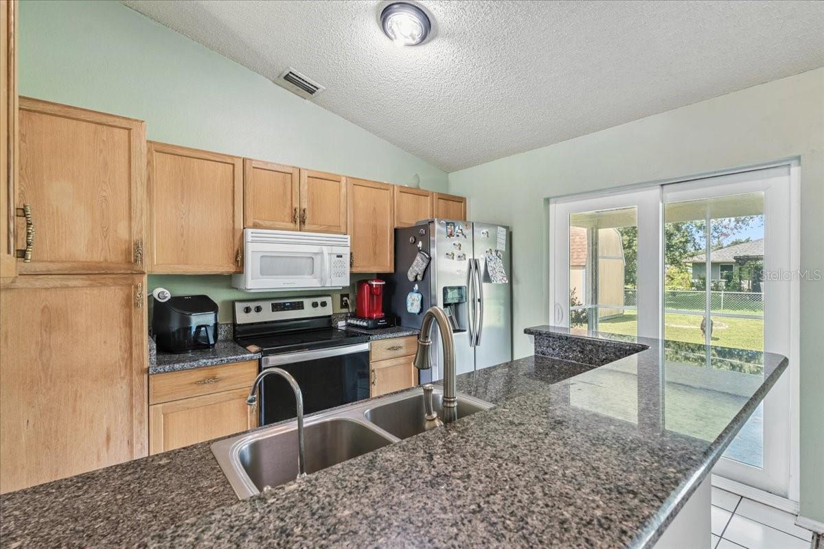 Situated on a double lot in Port Charlotte, this well-maintained 3-bedroom, 2-bath, 1,350 sq. ft. home with an attached 2-car garage is ready for you to move in. Step inside and you’ll be greeted by a desirable open, split-bedroom floor plan. The tiled foyer leads into a spacious living room with soaring ceilings and bamboo laminate flooring. The kitchen flows seamlessly into the dining area and features granite countertops, soft-close cabinets, newer stainless-steel appliances , and two sets of sliding doors opening to the lanai. The master suite offers brand-new carpet, both a walk-in closet and a standard closet, plus a beautifully updated bathroom with a large tiled walk-in shower, glass block window, and single vanity. The two guest bedrooms are generously sized with carpeted floors, ceiling fans, and large closets, and they share a full guest bath. Relax in your screened-in Lanai with a wood-paneled ceiling, ceiling fan, and accent lighting. The oversized backyard is fully fenced with chain link, offering plenty of room for pets, play, or even a future pool. A secured 11x10 woodshed with windows and a new ramp adds extra storage. Additional features include: 2-car garage with hurricane-impact door and laundry area Hurricane-impact, tinted windows and doors (2018) New roof (2020) 40’ boat/RV pad with 220V/50-amp hookup Extra side lot for additional space For boating enthusiasts, W. Spring Lake Park and its boat ramp are just 5 minutes away, offering quick access to Charlotte Harbor and the Gulf of Mexico. Centrally located between North Port and Punta Gorda, you’ll be close to beaches, shopping, dining, entertainment, and I-75/US-41.