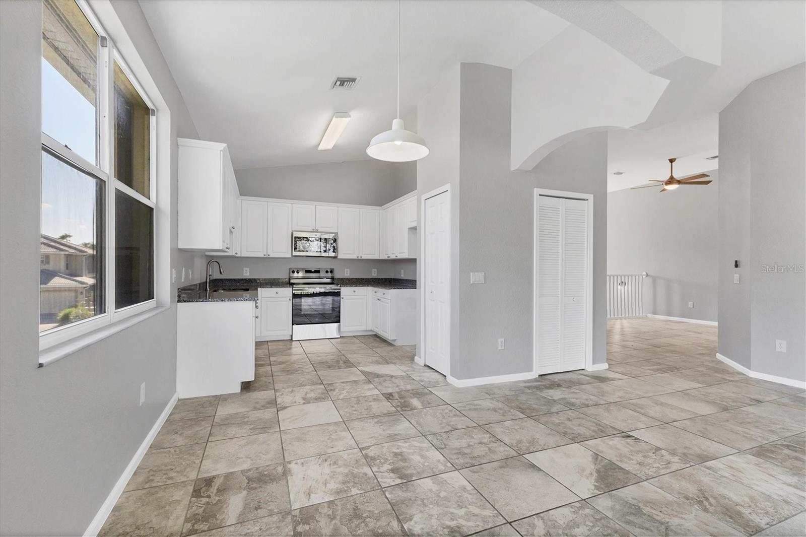 Nature abounds in the beautiful guard gated, golfing community of Riverwood. Rare fid of a 3 bedroom unit has foyer and stairway on first floor that leads to all living areas on 2nd floor of unit. At top of stairs you have an open "bonus room" perfect for formal dining if you so desire or whatever your imagination can dream up. Popular layout of living/dining room combo that flows effortlessly to your kitchen with raised panel cabinets and granite counter tops. Tile is throughout hoe with exception of wood laminate in all bedrooms. Primary bedroom has en suite that boasts garden tub, dual sinks and step in shower. To enjoy the mornings or end of day you can lounge on your screened lanai and enjoy what natures has to offer each day and views of the golf course. Enough amenities in this community (some with add'l costs) to keep you as busy as you choose to be including pool, tennis, fitness and more. Riverwood is situated centrally to Port Charlotte and North Port where you can enjoy spring training venues for Tampa Bay Rays or Atlanta Braves, as well as the Gulf beaches of Englewood/Manasota Key, shopping, dining, boating and more. As of this listing date the most affordable unit on the street. Call for your viewing today!!