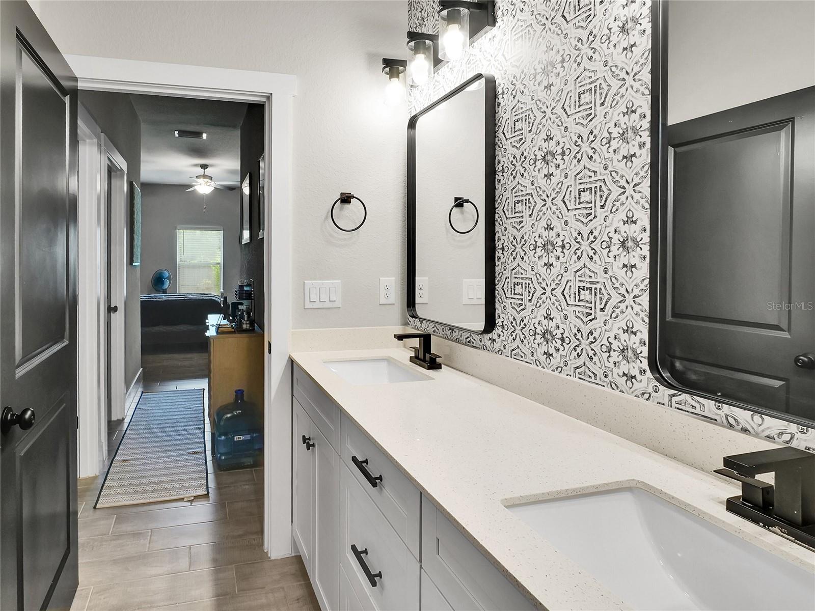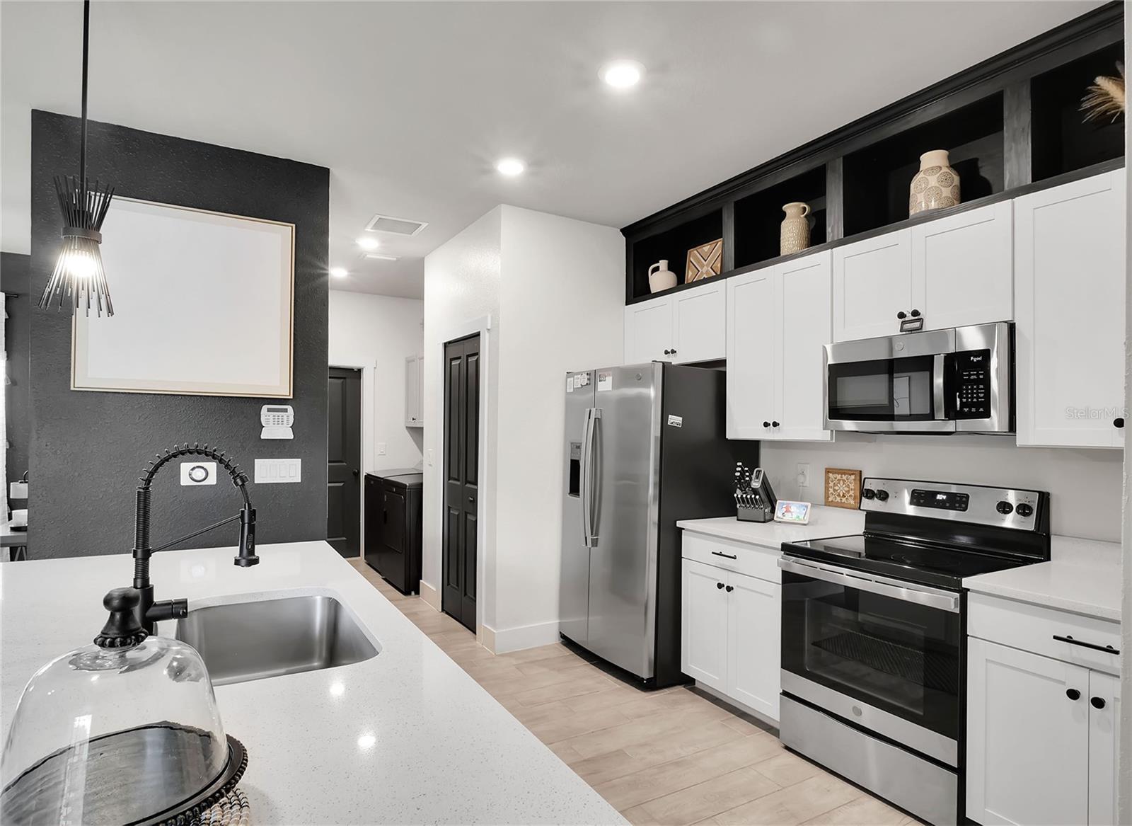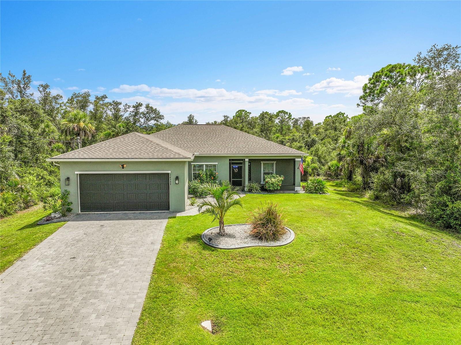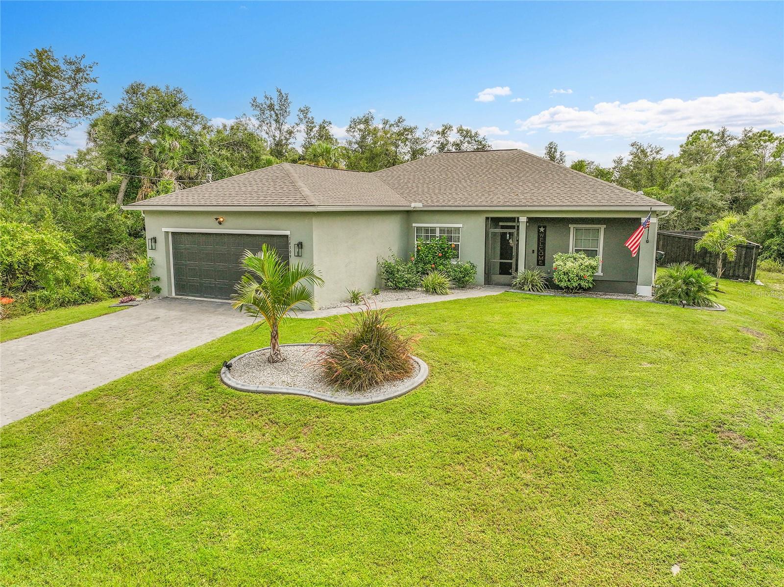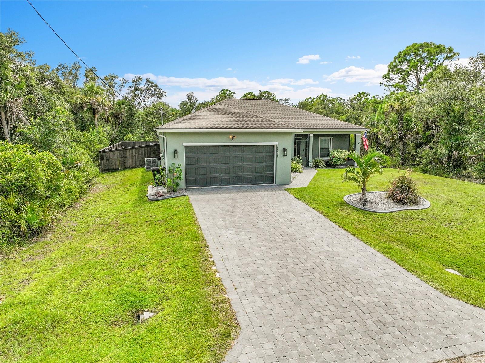 REDUCED! Welcome to this beautiful home, built in 2022, a 3 bedroom, 2 bath offering 1,548 square feet of comfortable living in a peaceful country setting. Designed with a desirable open floor plan and split-bedroom layout, this home is both functional and stylish. The bright kitchen is a chef’s delight, featuring a large pantry, as well as a large island with quartz counters, decorative accents, GE stainless steel appliances including the refrigerator, range, dishwasher, and disposal. The kitchen cabinets have been designed and completed up to the high ceiling with accent color cabinetry, and there is beautiful modern lighting in the living areas that highlights the upgrades in this newer home. Throughout the home, you’ll find gorgeous wood-like, plank tile flooring that offers durability and timeless appeal. The Primary Suite showcases a striking decorative shiplap wall, double walk-in closets, and a spacious bathroom with dual sinks and a walk-in shower. Both guestrooms are spacious with a shared bathroom. The third guestroom is currently being used as a workout space, offering flexibility for your lifestyle needs. Additional highlights include an indoor laundry room complete with Maytag washer and dryer. The Nest thermostat, a Security alarm system, and the Ring doorbell which includes the Ring garage floodlight and camera provides additional protection and conveniences. The home includes Storm shutters for full-home hurricane coverage and a 50-amp breaker should the buyer want to install their own generator. Enjoy Florida living at its best with a screened front porch for morning coffee and relaxation and a screened back lanai for enjoying the spacious back yard, complete with a solid wood privacy fence surrounding the property. The outdoor space also features an above-ground pool with a natural-look decorative frame, perfect for relaxing or entertaining. The driveway includes upscale pavers and lovely front yard landscaping. The home operates on well water with a septic system. This beautifully maintained property combines comfort, charm, and a country-living atmosphere, while still being close to all the best of Port Charlotte, North Port and all that Southwest Florida showcases! Daytrips to the beach, boating, and parks are all within a drivable distance!
