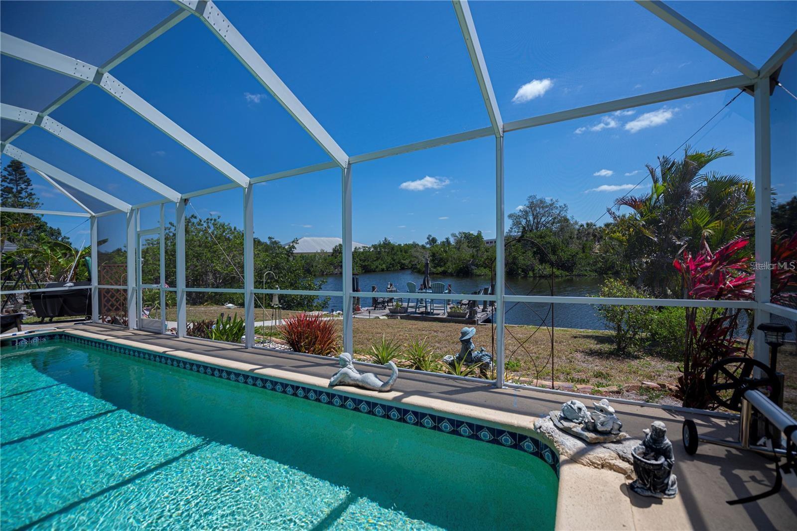 BACK ON THE MARKET | MOTIVATED SELLER- OPEN TO OFFERS. Step into refined Florida waterfront living. From the moment you enter, you 're captivated by sweeping views of the shimmering pool and tranquil waterway, where dolphins and manatees are frequent visitors. Enjoy effortless boating with the direct access to CHARLOTTE HARBOR and the PEACE RIVER, perfect for fishing, sunset cruises, or weekend adventures. Designed for elegant entertaining, the outdoor living space is a true showstopper, featuring a TIKI HUT, expansive heated pool, and serene water views framed by a new pool cage. Recent upgrades include a new roof, solar panels and solar hot water heater, AC, washer and dryer and fresh interior and exterior paint, offering both luxury and efficiency. Ideally located near parks, boat ramps, fine dining, and shopping, with convenient access to US-41 and I-75. World-class Gulf beaches are just within 30 minutes away. An exceptional waterfront retreat blending luxury, lifestyle, and location-this is Florida living at its finest.