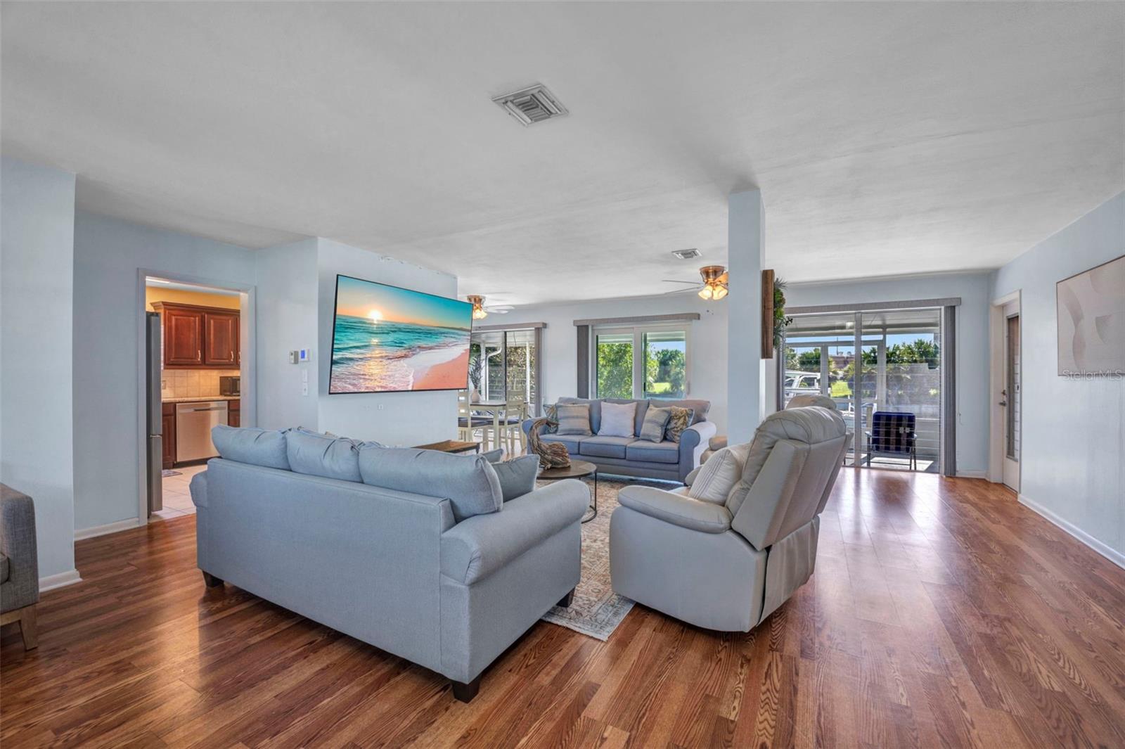 Quick Gulf access! Transferable flood insurance, Newer METAL ROOF, New ELECTRIC PANEL, and BRAND NEW Composite Dock, this partially updated 3 bedroom, 2 bath waterfront home with attached 1-car garage, boat lift, and Only 12 minutes at idle speed to open water! Did I mention it comes FURNISHED! Anyone looking to invest in an AirBNB? Interior features include wood laminate and tile flooring, updated kitchen with granite counters, tile back splash, cherry cabinets, stainless appliances, skylight, under-cabinet lighting, walk-in pantry, and full-size stack-able washer & dryer. Large windows across the back provide beautiful canal views from every angle. Exterior highlights include screened lanai with vinyl windows (22x12), New screened lanai (34x10), BRAND NEW dock with water & electric, wide driveway with side extension for trailer or extra vehicle, fenced yard, hurricane sliders, newer electric panel, extra storage, and garage with shelving & storage room. AND a (40x14) concrete slab by the water where you can picnic or have your favorite beverage of choice while watching the sunrise! Conveniently located near Hospitals, shopping, dining, schools, and beaches. Easy to show. Schedule your tour today!