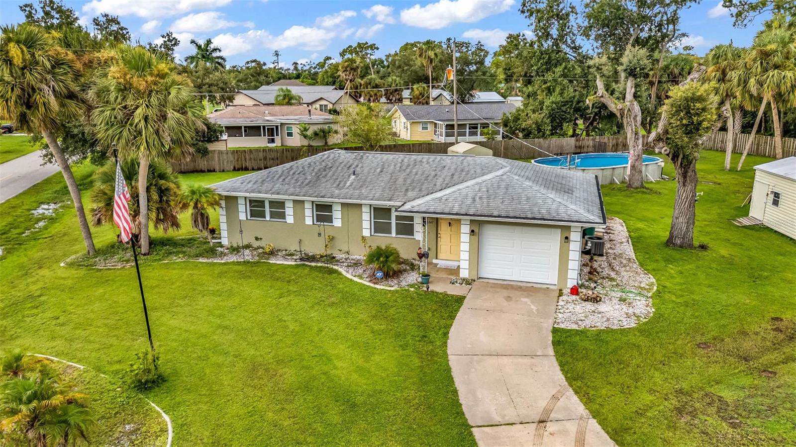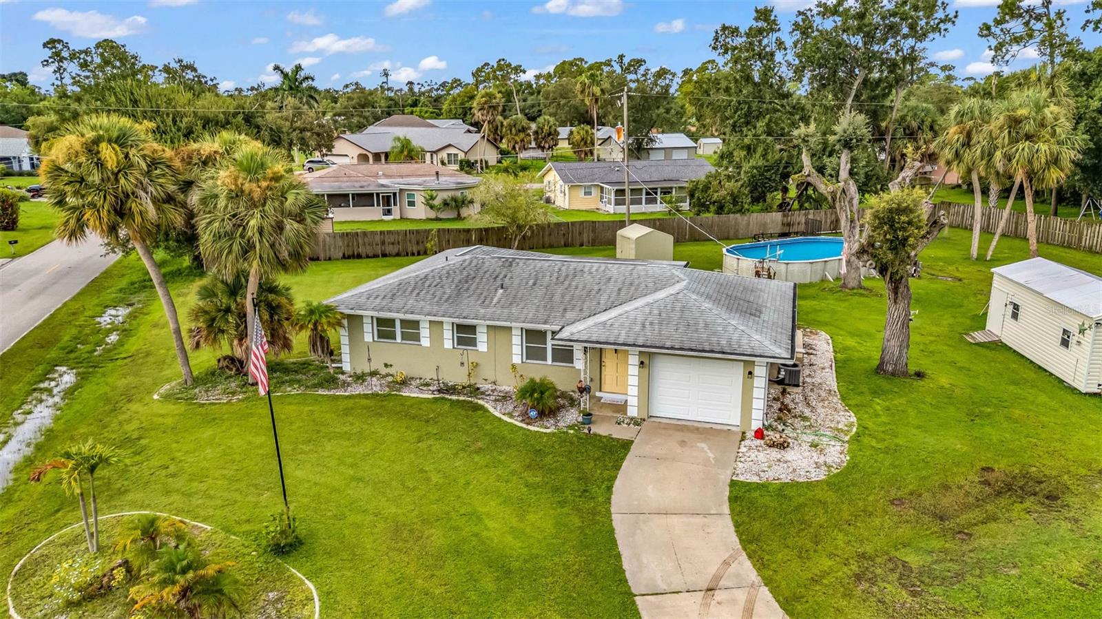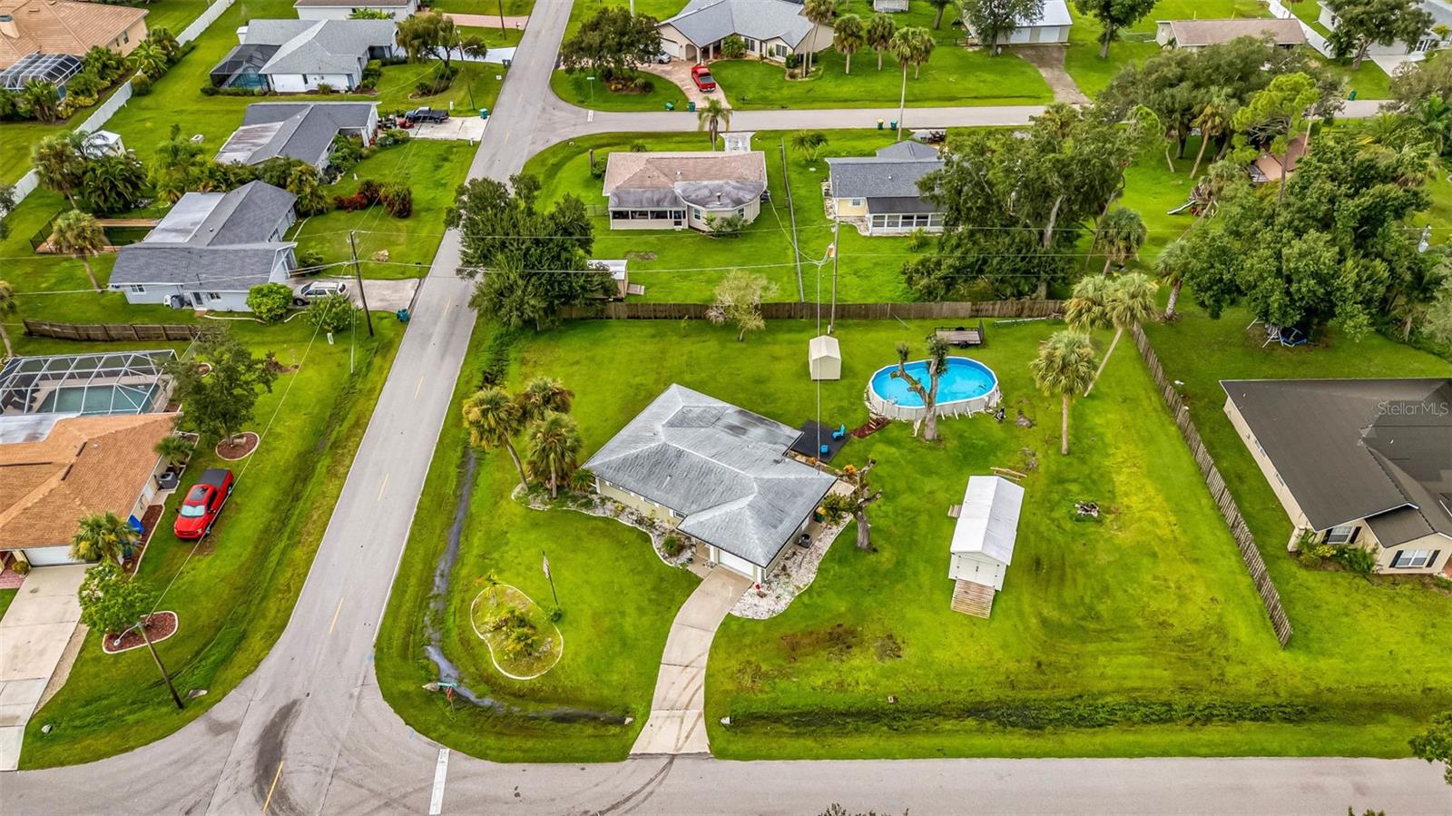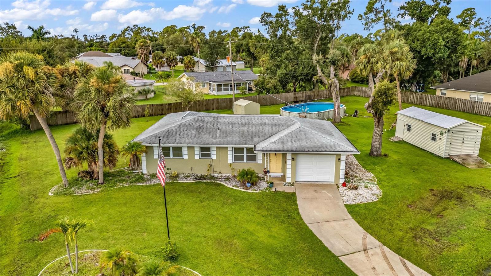 Step into Florida living with this charming 2 bedroom, 2 bathroom pool home nestled in the sought-after Port Charlotte Sec 26 community. This well-cared-for residence offers nearly 1,200 sq. ft. of living space on an oversized corner lot almost half an acre in size—plenty of room to relax, entertain, and enjoy the outdoors. At the heart of the home is a bright and open living and dining room combo with crown molding and ceramic tile flooring. The kitchen comes complete with appliances and flows easily into the main living spaces, making it perfect for gatherings. Both bedrooms feature built-in closets, with the primary suite offering a cozy retreat. Outdoors, you’ll find your own private paradise with a pool (18x33), an enclosed lanai, and a partially fenced backyard. Additional perks include a workshop with electricity, shed, and extra storage—ideal for projects or hobbies. Practical features like a new roof replaced in 2023, upgraded electrical panel, hurricane windows, and new HVAC unit, while the attached one-car garage adds secure parking. With no HOA, no lease restrictions, and a pet-friendly policy, you’ll have the freedom to truly make this home your own. Located just minutes from golf courses, schools, shopping, dining, and US-41, this property combines comfort, flexibility, and a fantastic location—everything you need to enjoy the Florida lifestyle.
