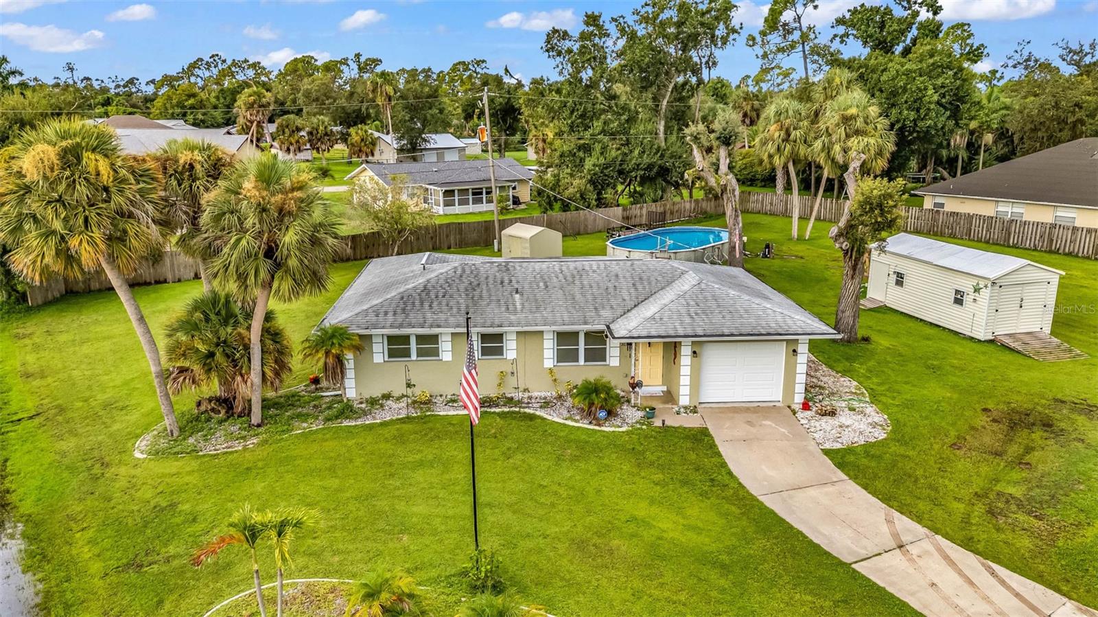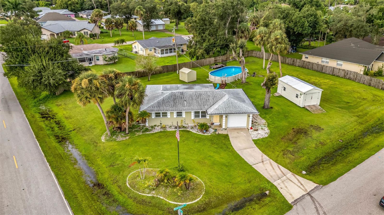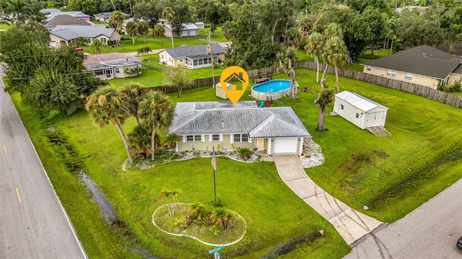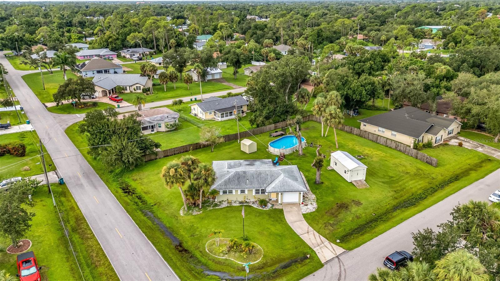 Step into Florida living with this charming 2 bedroom, 2 bathroom pool home nestled in the sought-after Port Charlotte Sec 26 community. This well-cared-for residence offers nearly 1,200 sq. ft. of living space on an oversized corner lot almost half an acre in size—plenty of room to relax, entertain, and enjoy the outdoors. At the heart of the home is a bright and open living and dining room combo with crown molding and ceramic tile flooring. The kitchen comes complete with appliances and flows easily into the main living spaces, making it perfect for gatherings. Both bedrooms feature built-in closets, with the primary suite offering a cozy retreat. Outdoors, you’ll find your own private paradise with a pool (18x33), an enclosed lanai, and a partially fenced backyard. Additional perks include a workshop with electricity, shed, and extra storage—ideal for projects or hobbies. Practical features like a new roof replaced in 2023, upgraded electrical panel, hurricane windows, and new HVAC unit, while the attached one-car garage adds secure parking. With no HOA, no lease restrictions, and a pet-friendly policy, you’ll have the freedom to truly make this home your own. Located just minutes from golf courses, schools, shopping, dining, and US-41, this property combines comfort, flexibility, and a fantastic location—everything you need to enjoy the Florida lifestyle.