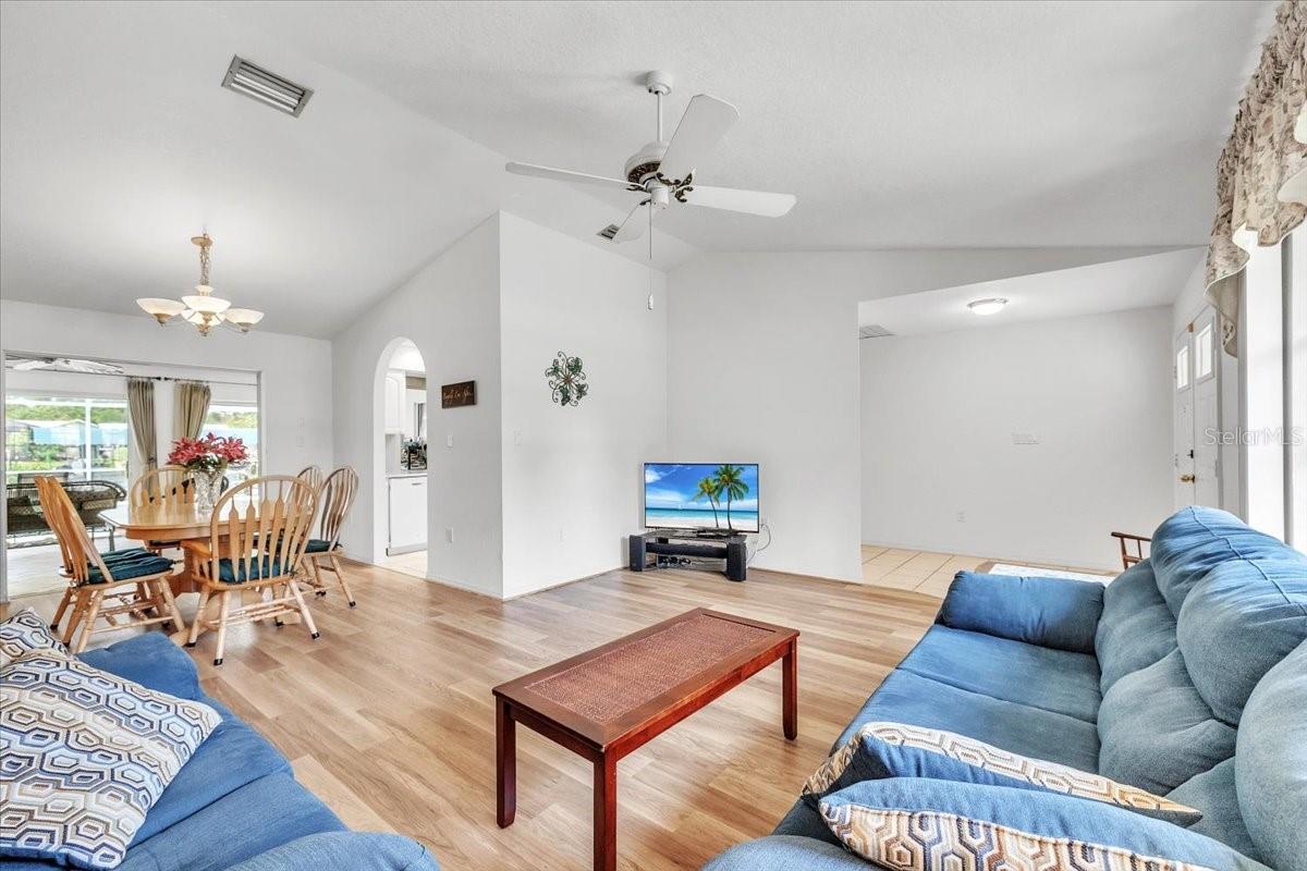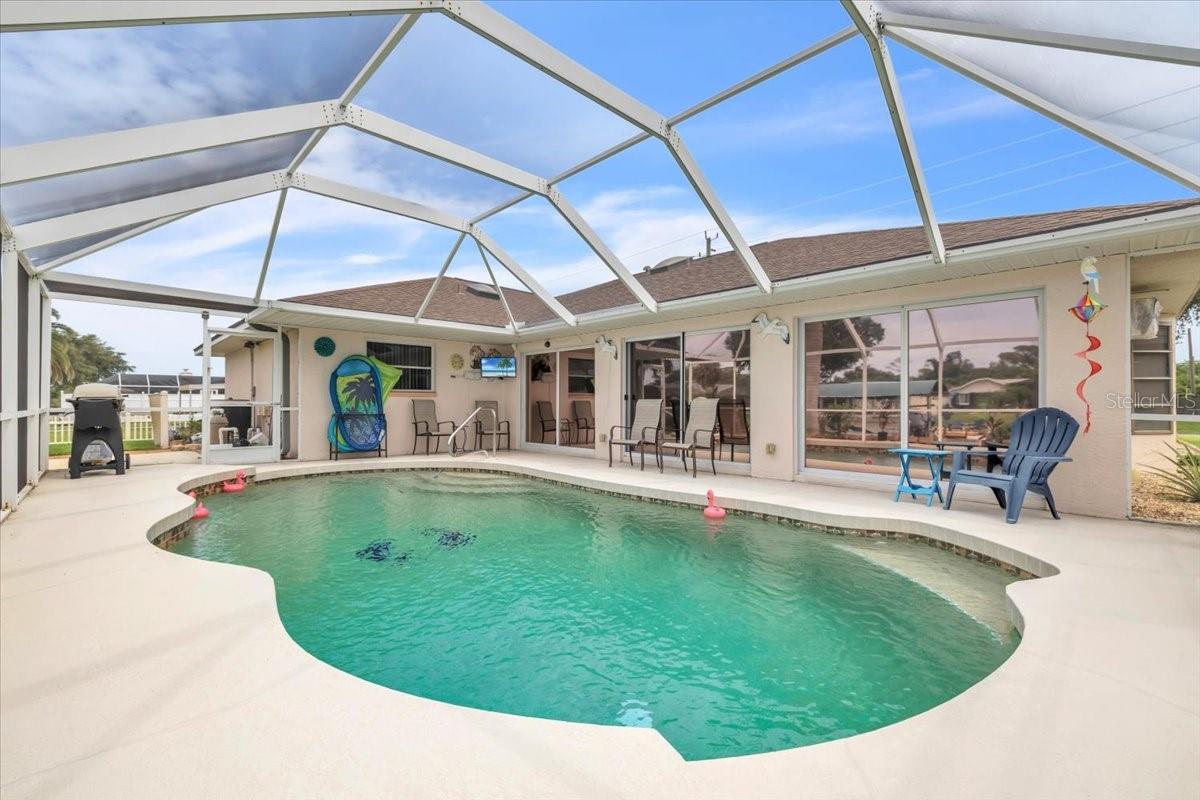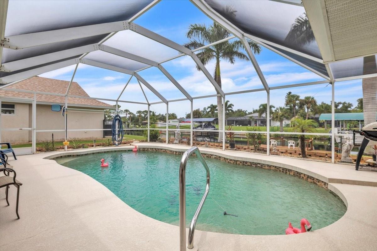 Don’t miss this exceptional opportunity to own a beautiful 3-bedroom, 2-bath waterfront pool home with attached garage, perfectly located in the heart of Port Charlotte. With 80 feet on the Pellam Waterway, this property offers a short boat ride to Charlotte Harbor and the Gulf of Mexico—an absolute boater’s dream. Featuring 2,239 sq. ft. of thoughtfully designed living space, the home blends comfort and functionality throughout. Step through the foyer into a bright and open living area with tile flooring and new wood laminate. Sliding glass doors lead to the expansive Florida Room, creating a seamless flow for indoor-outdoor living. A dedicated dining area sits just off the living room, while the spacious kitchen offers Corian countertops with matching backsplash, modern appliances, breakfast bar seating, a serving window to the Florida Room, an abundance of cabinet and drawer storage—all overlooking the family room with cathedral ceilings and skylight. The private primary suite is a peaceful retreat with direct pool access, plush carpet, dual walk-in closets, and an en-suite bath featuring dual vanities, large mirrors, a walk-in shower, and private water closet. Two additional bedrooms, each with walk-in closets, share a full bath. The 30x12 air-conditioned Florida Room, lined with sliders, opens to your backyard oasis. Enjoy the heated, screened-in pool with a relaxing bench and built-in jets, along with the spacious deck, or take advantage of the boater’s amenities: covered boat lift, dock with electric and water and a tiled patio overlooking the waterway. Notable upgrades include: extended laundry room, new A/C (2024), new pool chlorinator (2024), shingle roof (2022), four new skylights, whole house re-plumbed overhead (2020), Low Pressure Sewer County maintained (2021), well for irrigation, fresh exterior paint, updated light fixtures, and Boat Lift Canopy and frame (2023). Importantly, the home did not experience flooding from previous storms, offering peace of mind. Located in a quiet, established neighborhood, this home is minutes from Port Charlotte Beach Park with its public beach, boat ramp, picnic areas, and tennis courts, plus convenient access to US-41, I-75, shopping, dining, hospitals, and the area’s top-rated Gulf beaches. This is your chance to own a piece of waterfront paradise—schedule your showing today!**PLEASE ENJOY THE 3D INTERACTIVE VIRTUAL TOUR ASSOCIATED WITH THIS LISTING**