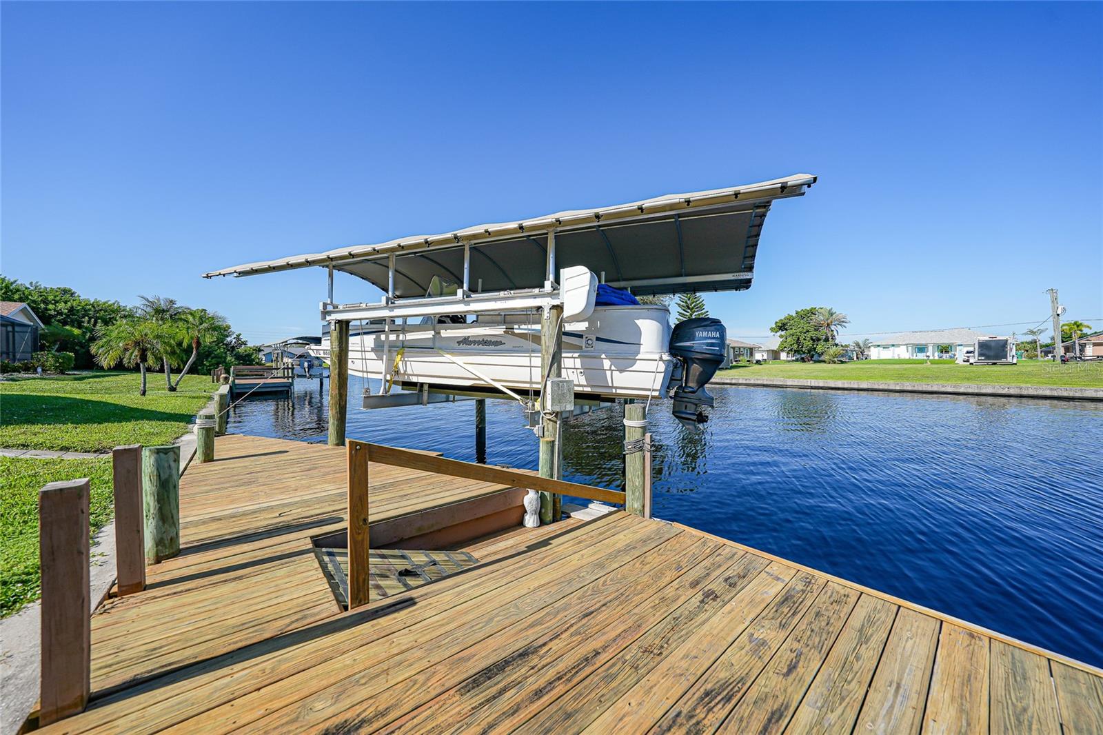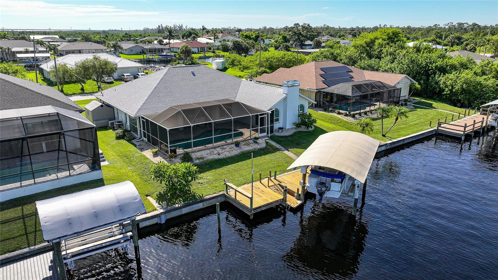 Welcome to 5265 Neville Terrace — a waterfront haven designed for the ultimate Florida lifestyle. With direct, bridge-free access to the Myakka River, Charlotte Harbor, and the Gulf of Mexico, this home offers quick open-water adventures for boating, fishing, jet skiing, and kayaking, right from your own backyard. Every detail of this property has been crafted by the owners for pristine comfort and an enjoyable living experience. Inside, the split floor plan provides both privacy and functionality, with vaulted ceilings and pocket sliders that fill the home with natural light and frame breathtaking water views. The spacious master suite is a true retreat, featuring two walk-in closets, a spa-inspired bathroom with dual sinks, a garden soaking tub, and a walk-in shower. For added comfort, a mini-split system has been installed in the master bedroom, ensuring year-round relaxation. Step outside to enjoy the very best of waterfront living. The heated pool and screened lanai create the perfect spot to unwind while overlooking the water. A 12,000 lb boat lift, dock with water and electric, and quick access to open waters make this a boater’s dream. Recent upgrades bring peace of mind and efficiency, including a new roof, gutters, and pool cage (2023), impact windows, and a solar electric system to keep energy costs low. The home also features a whole-house water filtration and reverse osmosis system, a 200-amp electric panel, and a storage shed. Located in an excellent area close to everything — from shopping, dining, and entertainment to beaches and golf — this property combines convenience with the beauty of waterfront living. Whether you’re hosting guests, setting out for a day on the water, or simply soaking in the tranquil views, this home offers it all. Don’t miss the chance to experience this exceptional waterfront lifestyle — schedule your showing today!