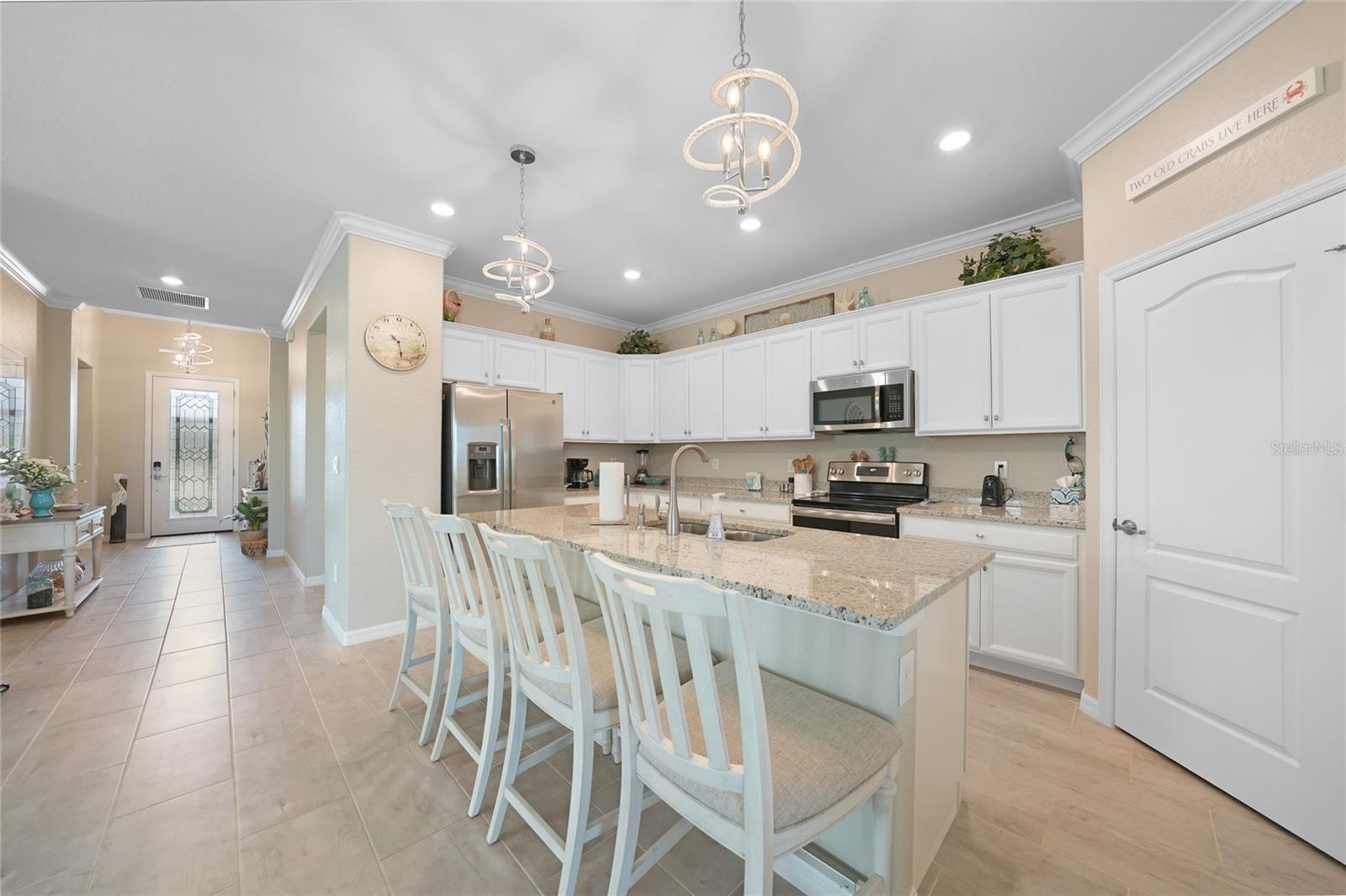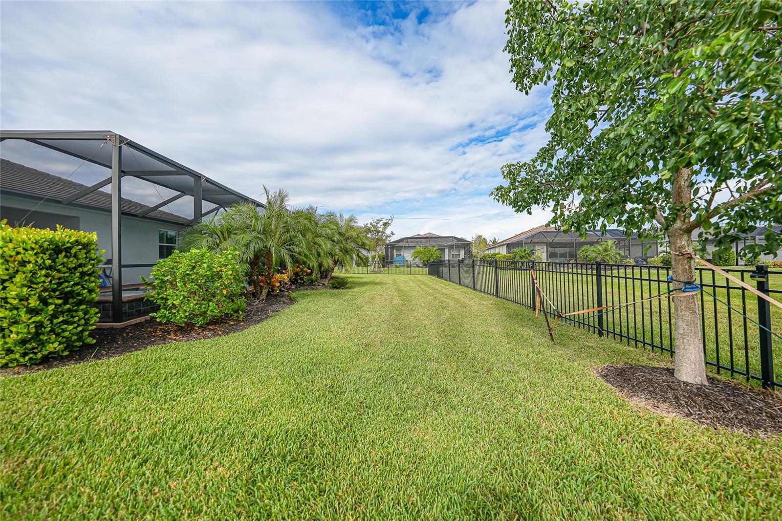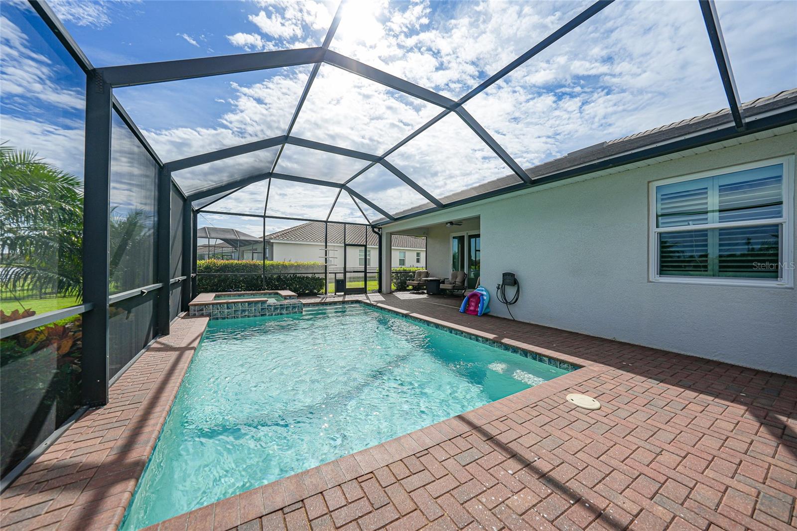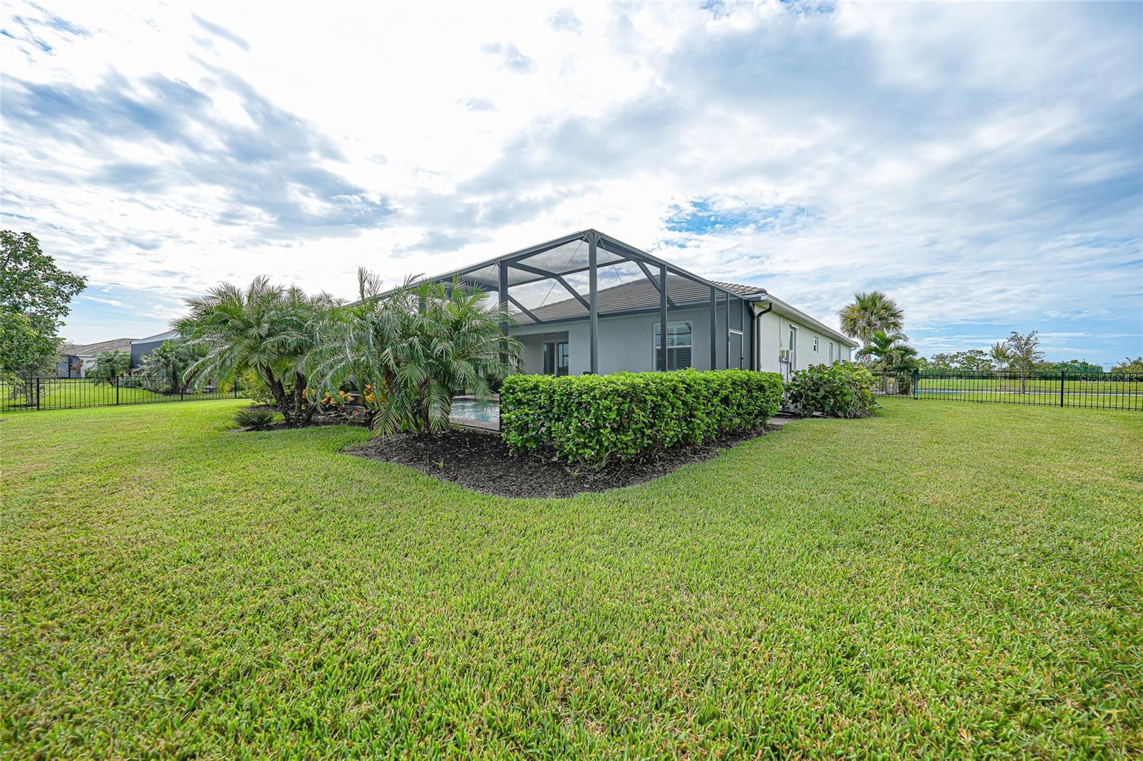 BEST VALUE IN HARBOR WEST! Enjoy the largest interior lot in the community that is completely FENCED and has a HUGE BACKYARD. This 4-bedroom, 3-bathroom home boasts a HEATED POOL & SPA, an EXTENDED LANAI and an already large patio that is perfect for relaxing and enjoying the serene LAKE-VIEW while sitting by the pool. The home is fitted with IMPACT WINDOWS AND SLIDERS that grant FULL HURRICANE PROTECTION but also give you the benefit of never having to worry about putting up or taking down any hurricane shutters. Enjoy the convenience of a TILE ROOF that typically last much longer than a standard shingle roof and gives the home a Mediterranean style look. Inside you'll find a spacious open-floor plan with a split bedroom layout outfitted with 12x24 throughout the home and beautiful granite countertops across all of the countertops in both the kitchen and bathrooms. The charming upgraded white kitchen features a large island for an informal dining space, a large pantry, and stainless-steel appliances. The primary bedroom is ample in space and comes with two big-walk in closets. The primary bathroom comes complete with his and her sinks and a large shower with a Kohler Artifacts Hydro rail system with a rain head attachment or a handheld attachment for your showering pleasure. The 2nd bedroom is also very spacious and is positioned in a private part of the home away from the other bedrooms and comes with its very own on-suite bathroom. The front wing of the home comes with two more well-sized bedrooms that can be used for a variety of things besides just a bedroom, maybe a den, office, workout room, etc. The front wing comes with its own convenient bathroom. Great for guests or for quick use. The large laundry room is located just off the 2-car garage and is outfitted with 42' soft close cabinets. Underrated features include charming plantation shutters on the interior of all the windows, elegant lighting and upscale fans, Koehler faucets in master bathroom and matching towel and toiletry bars in all baths. The brick paver patio has been maintained and resealed to increase its longevity. The paver driveway is large and wraps around to the air handler. The home has a nice screened in entryway with decorative front shutters. The whole house has gutters around it. Gray plank tile throughout and a warm light neutral gray interior lends the perfect backdrop for your designer inspirations. This is located in Harbor West which is a GATED COMMUNITY with NO CDD FEES. The lawn Maintenace and irrigation is taken care of by the community. This property is not one that you'll want to miss. BE SURE TO VIEW THE 3D VIRTUAL TOUR ON ZILLOW. Don't forget the close proximity this property has to both Manasota Key Beach and Englewood Beach as well to Restaurants, bars, grocery stores, medical offices. Tampa Rays and Atlanta Braves play Spring Training nearby every year. You won't be disappointed with this located! This home has NEVER FLOODED, and a Survey and Elevation Certificate are available. Call your agent to book your showing today!