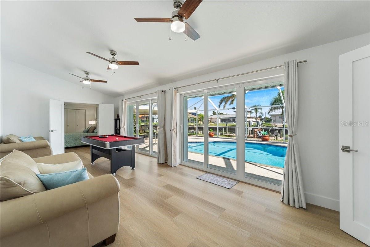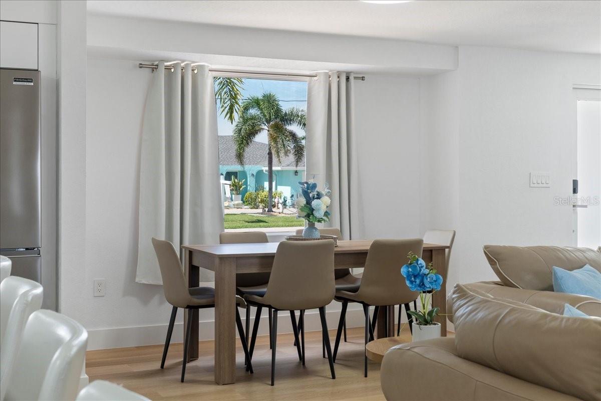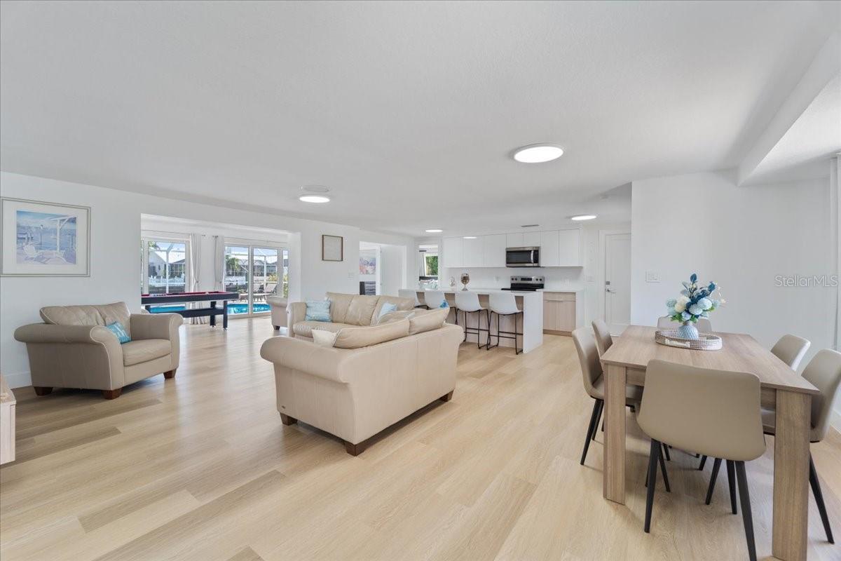 SAILBOAT ACCESS • SWIMMING POOL • FURNISHED Just minutes to open water, this home is a boater’s dream! Inside, the updated kitchen takes center stage with a stunning waterfall island with breakfast bar area, stainless steel appliances, sleek European-style cabinetry, quartz countertops and quartz backsplash. The open-concept living spaces feature designated dining area, new vinyl plank flooring, new interior doors, baseboards, fresh paint (inside and out), new modern light fixtures and a bright, inviting flow—perfect for both everyday living and entertaining. The split floor plan offers privacy, with both bathrooms freshly renovated. Each includes a wall-mounted floating vanity and striking large-format tile and LED mirrors. The primary suite boasts a glass-enclosed shower, while the guest bath showcases a beautifully tiled tub/shower combo with sleek glass doors. Step outside to your private retreat: an expansive screened pool area with a resurfaced pool, brand-new heater, shaded lounging space, and a summer kitchen setup that makes outdoor dining and entertaining easy. A 62x15 driveway addition provides ample parking, and a 10x14 shed adds convenient extra storage. Major updates bring peace of mind, including a NEW roof (2022) and NEW HVAC (2023) and Hurricane IMPACT windows (2025). Offered fully furnished, this property combines style, comfort, and the ultimate waterfront lifestyle. With 100 feet of concrete seawall, a private dock, and a 9,000 lb. boat lift, you’ll enjoy quick access to the harbor and beyond. Plus, Port Charlotte Beach Park is just minutes away, offering volleyball, kayaking, tennis, and a playground for endless outdoor fun.