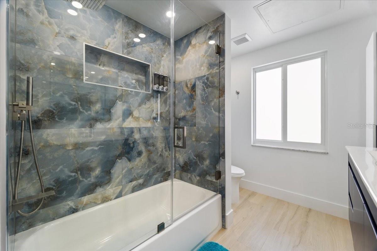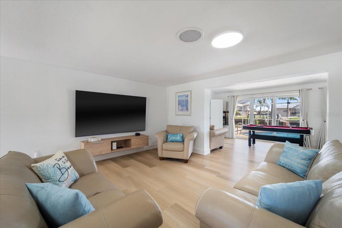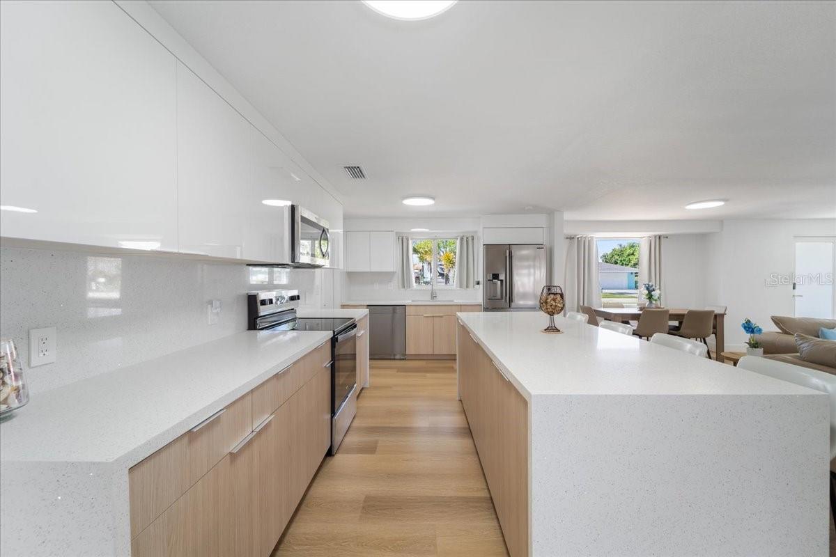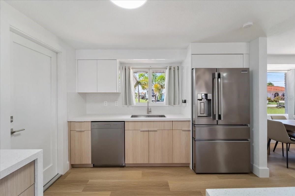 SAILBOAT ACCESS • SWIMMING POOL • FURNISHED Just minutes to open water, this home is a boater’s dream! Inside, the updated kitchen takes center stage with a stunning waterfall island with breakfast bar area, stainless steel appliances, sleek European-style cabinetry, quartz countertops and quartz backsplash. The open-concept living spaces feature designated dining area, new vinyl plank flooring, new interior doors, baseboards, fresh paint (inside and out), new modern light fixtures and a bright, inviting flow—perfect for both everyday living and entertaining. The split floor plan offers privacy, with both bathrooms freshly renovated. Each includes a wall-mounted floating vanity and striking large-format tile and LED mirrors. The primary suite boasts a glass-enclosed shower, while the guest bath showcases a beautifully tiled tub/shower combo with sleek glass doors. Step outside to your private retreat: an expansive screened pool area with a resurfaced pool, brand-new heater, shaded lounging space, and a summer kitchen setup that makes outdoor dining and entertaining easy. A 62x15 driveway addition provides ample parking, and a 10x14 shed adds convenient extra storage. Major updates bring peace of mind, including a NEW roof (2022) and NEW HVAC (2023) and Hurricane IMPACT windows (2025). Offered fully furnished, this property combines style, comfort, and the ultimate waterfront lifestyle. With 100 feet of concrete seawall, a private dock, and a 9,000 lb. boat lift, you’ll enjoy quick access to the harbor and beyond. Plus, Port Charlotte Beach Park is just minutes away, offering volleyball, kayaking, tennis, and a playground for endless outdoor fun.