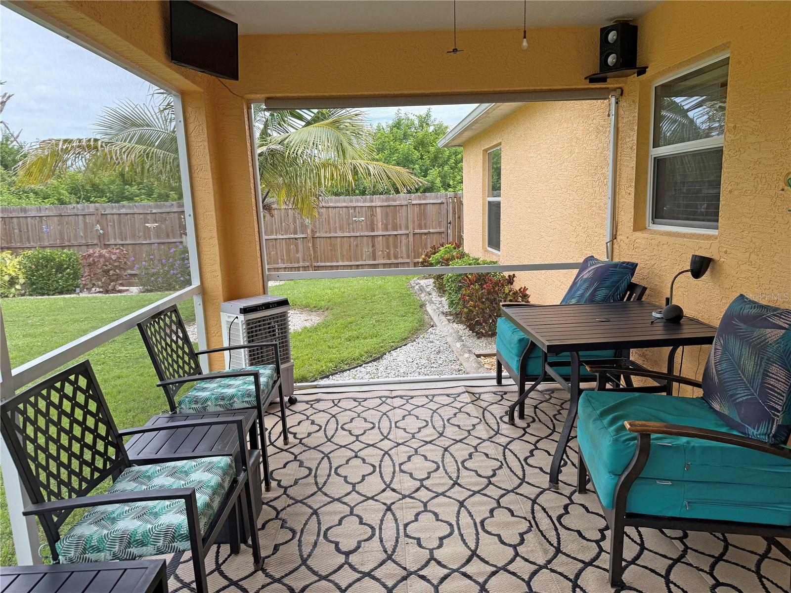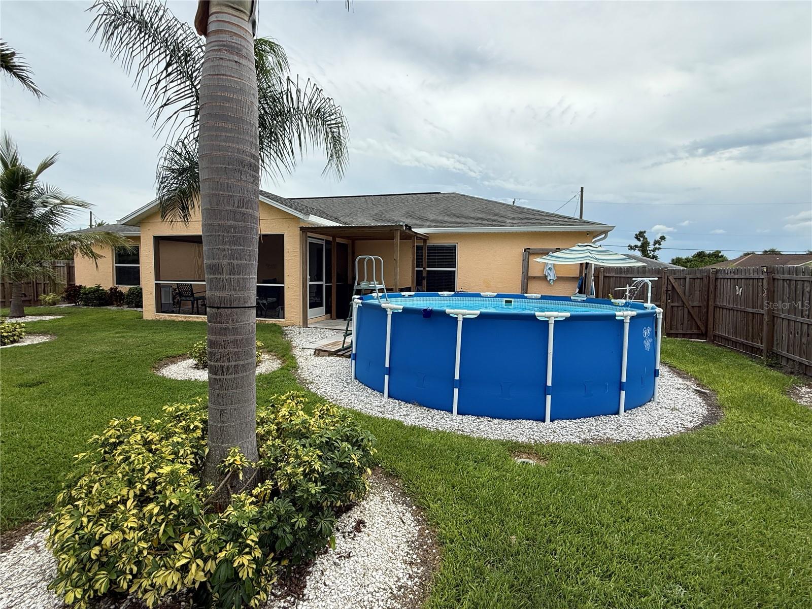 Impressive spacious home built in 2017 offers 3 Bedrooms, 2 Bathrooms and attached 2 Car Garage. This light and bright home offers an open and split bedroom floor plan with Great Room, well appointed Kitchen with Dining Area, Inside Laundry Room and screened porch. Beautiful design features throughout. The Great Room features large windows and cathedral ceiling. The kitchen offers white cabinetry, granite counters, breakfast bar, pass thru to lanai, double sink, large Dining Area and stainless appliances. Appliances include: double door refrigerator, dishwasher, oven/range, built in microwave.The Inside Laundry Room has a washer, dryer, laundry tub and storage closet. The 2 Car garage offers a door opener, attic access, side door, second refrigerator, hurricane overhead door. The spacious Master Bedroom suite has a walk in closet and private bathroom with walk in shower. There are two generous sized guest bedrooms, one with a double closet and the other with a walk in closet. The guest bathroom has a walk in shower. Your living space extends through French doors to the 16x10 screened porch with sunshades and continues to the stunningly landscaped fenced backyard. *There is also an inviting above ground POOL with crystal clear water.* Other features include rain gutters, screened front entry, privacy fence for the backyard, outdoor shower, covered patio area- perfect for griling, hurricane shutters, irrigation system, large windows, tile floors throughout. HWH replaced 6 months ago. The house faces south in the front and north in the back keeping the house cooler and your electric bills lower. Currently there are vacant lots on either side of this property. NOT in a flood zone, NO HOA and utilities are county water and sewer. This home is in a quiet neighborhood yet minutes from shopping, dining, medical care, Englewood Beach (15 minutes away).