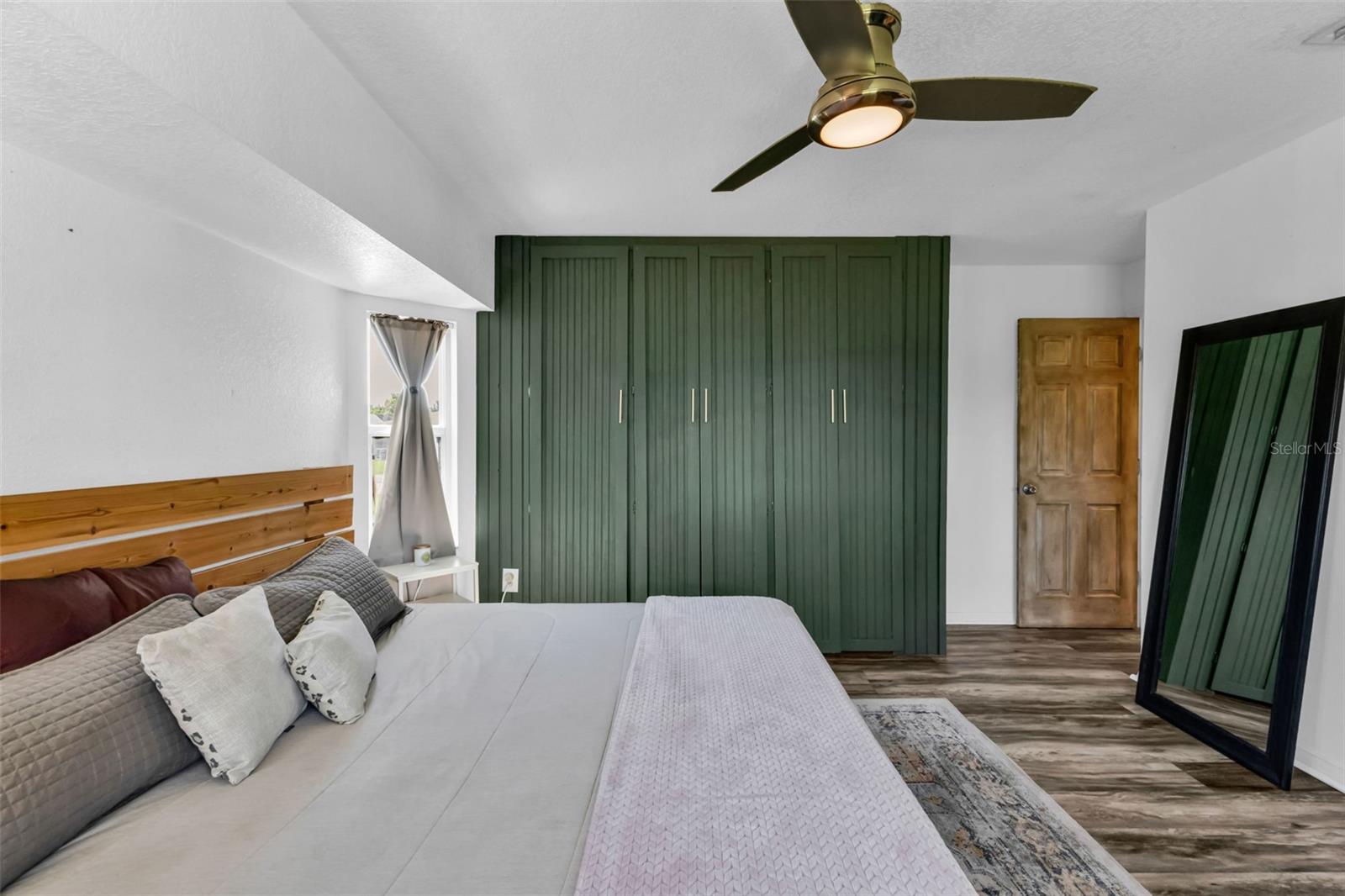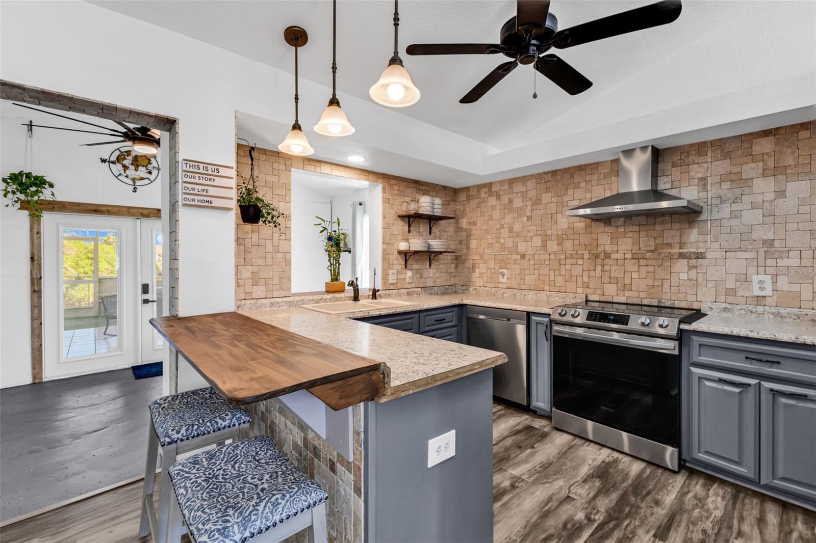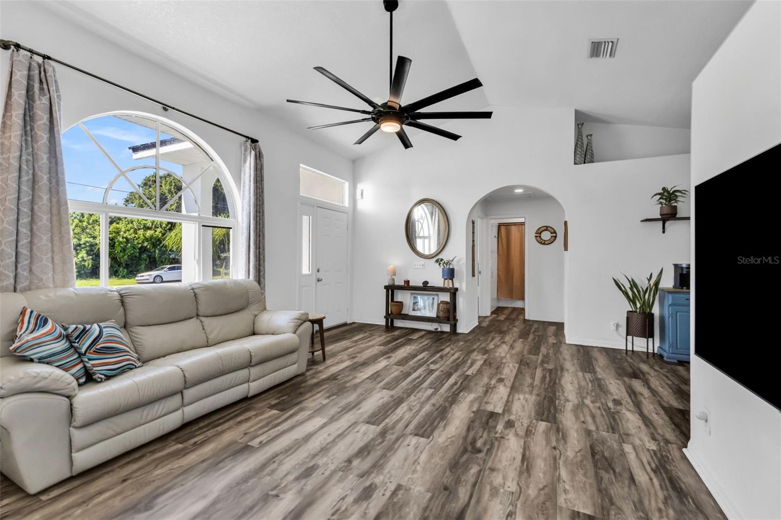 Welcome to this light, bright, and spacious waterfront home that instantly makes you feel at home. Filled with custom updates throughout, this property offers the perfect balance of comfort, style, and functionality. Enjoy peace of mind with a durable metal roof and fully paid solar panels, which keep the FPL bill to only $30 a month. The home is also equipped with a whole-home Culligan water filtration system and an additional double-filtered drinking station at the kitchen sink. The beautifully updated kitchen is designed with modern convenience in mind, featuring Samsung SmartThings appliances, a Bespoke Flex refrigerator with a convertible freezer/fridge compartment, a convection/standard oven, and eye-catching blue cabinets with shelving. A coffee bar and microwave will remain for the new owner’s enjoyment. The home offers spacious bedrooms that provide comfort and flexibility for family and guests. The master suite serves as a private retreat, complete with a generously sized bedroom and a beautifully designed bathroom featuring a relaxing soaking tub—the perfect place to unwind at the end of the day. Perfect for entertaining, the open living area features recessed lighting and Govee smart light strips above the living room and kitchen. Step outside to the large lanai, complete with a spa, hot tub, and mounted TV bracket, where you can relax while overlooking the water. This home also includes RV, boat, or toy parking with an electric hook-up for both an RV and generator, ample attic storage, and all new light fixtures and ceiling fans, including two impressive 72-inch fans. For added convenience, there is a dog yard, Starlink equipment ready for activation, and underground fiber optic connectivity. This welcoming home has been thoughtfully updated and offers an exceptional blend of efficiency, charm, and Florida waterfront living.