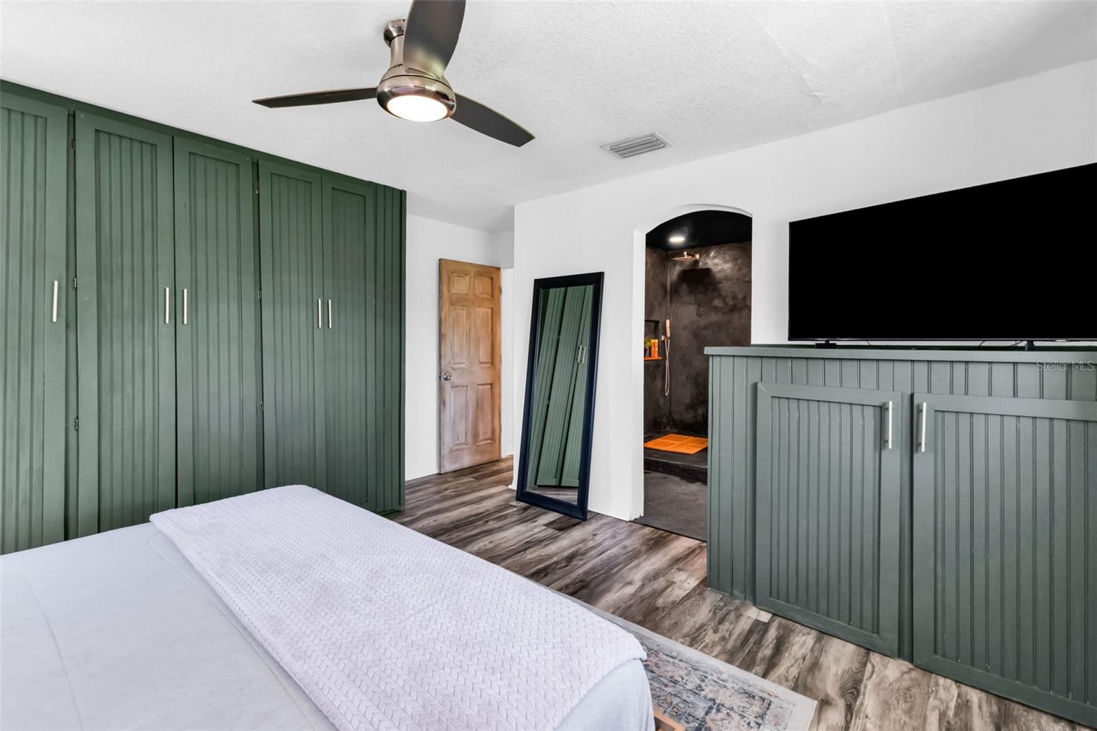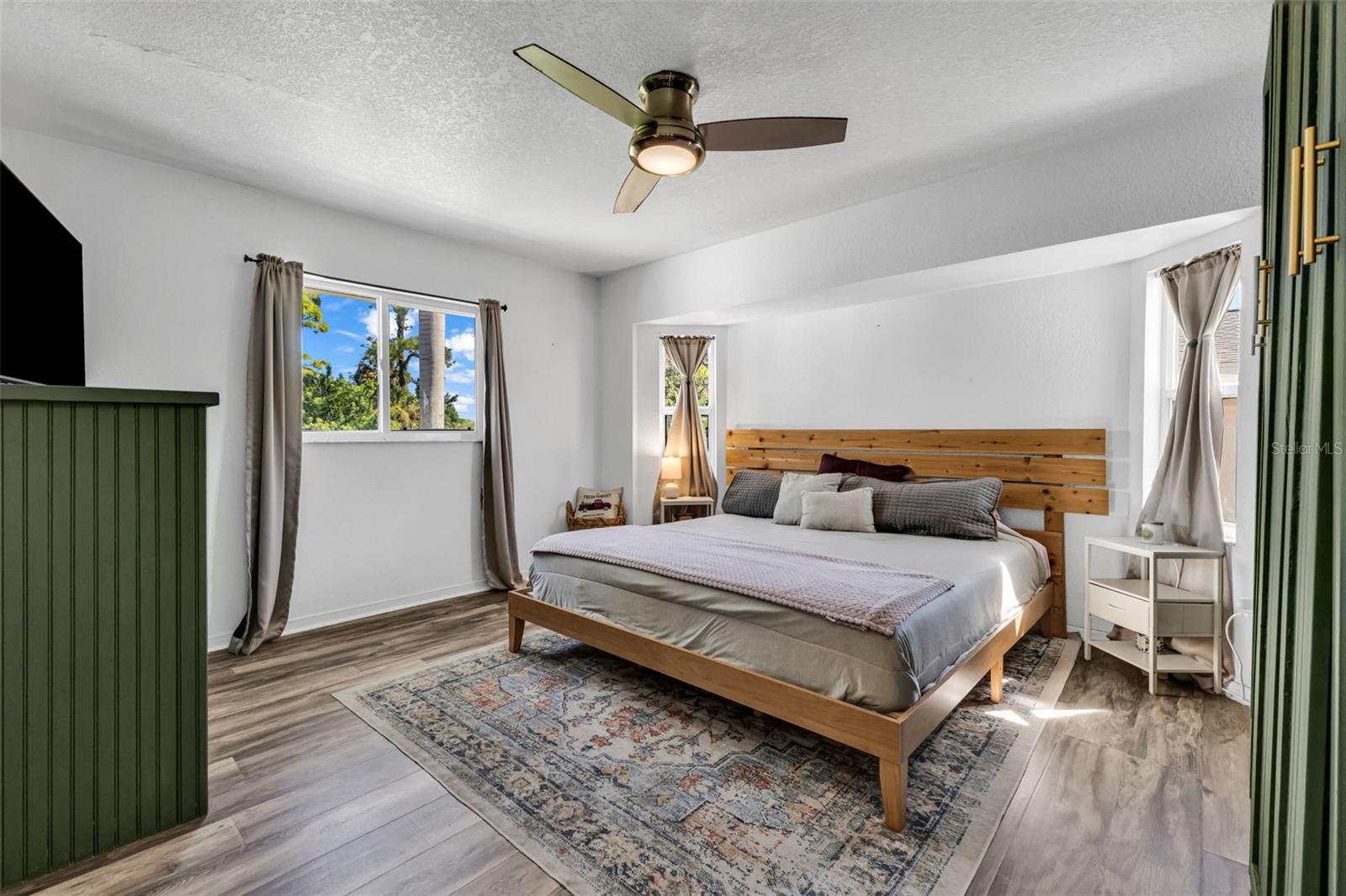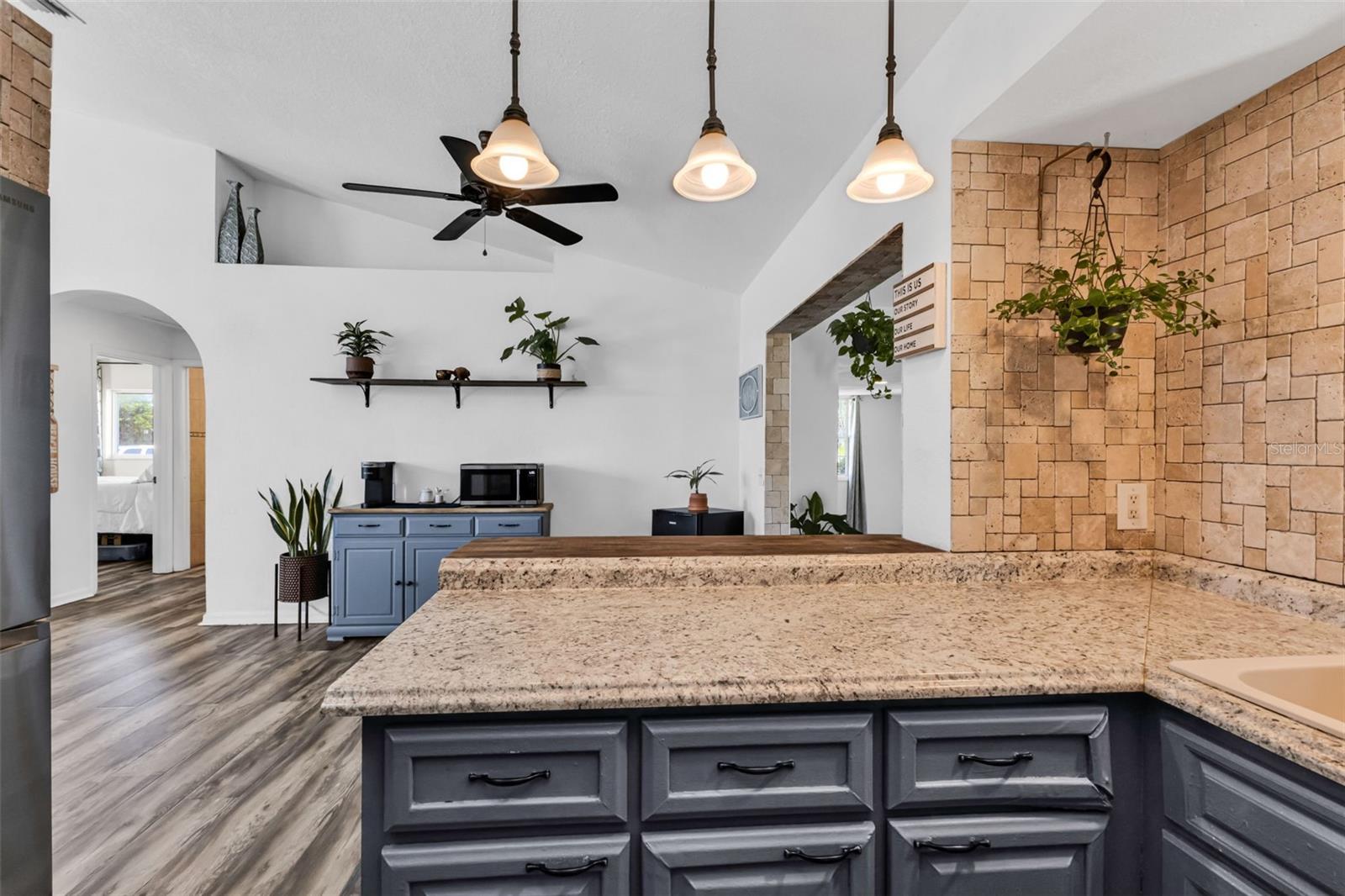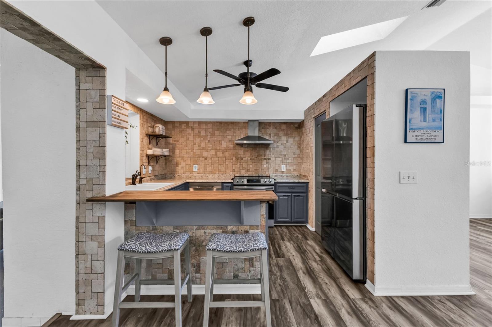 Welcome to this light, bright, and spacious waterfront home that instantly makes you feel at home. Filled with custom updates throughout, this property offers the perfect balance of comfort, style, and functionality. Enjoy peace of mind with a durable metal roof and fully paid solar panels, which keep the FPL bill to only $30 a month. The home is also equipped with a whole-home Culligan water filtration system and an additional double-filtered drinking station at the kitchen sink. The beautifully updated kitchen is designed with modern convenience in mind, featuring Samsung SmartThings appliances, a Bespoke Flex refrigerator with a convertible freezer/fridge compartment, a convection/standard oven, and eye-catching blue cabinets with shelving. A coffee bar and microwave will remain for the new owner’s enjoyment. The home offers spacious bedrooms that provide comfort and flexibility for family and guests. The master suite serves as a private retreat, complete with a generously sized bedroom and a beautifully designed bathroom featuring a relaxing soaking tub—the perfect place to unwind at the end of the day. Perfect for entertaining, the open living area features recessed lighting and Govee smart light strips above the living room and kitchen. Step outside to the large lanai, complete with a spa, hot tub, and mounted TV bracket, where you can relax while overlooking the water. This home also includes RV, boat, or toy parking with an electric hook-up for both an RV and generator, ample attic storage, and all new light fixtures and ceiling fans, including two impressive 72-inch fans. For added convenience, there is a dog yard, Starlink equipment ready for activation, and underground fiber optic connectivity. This welcoming home has been thoughtfully updated and offers an exceptional blend of efficiency, charm, and Florida waterfront living.