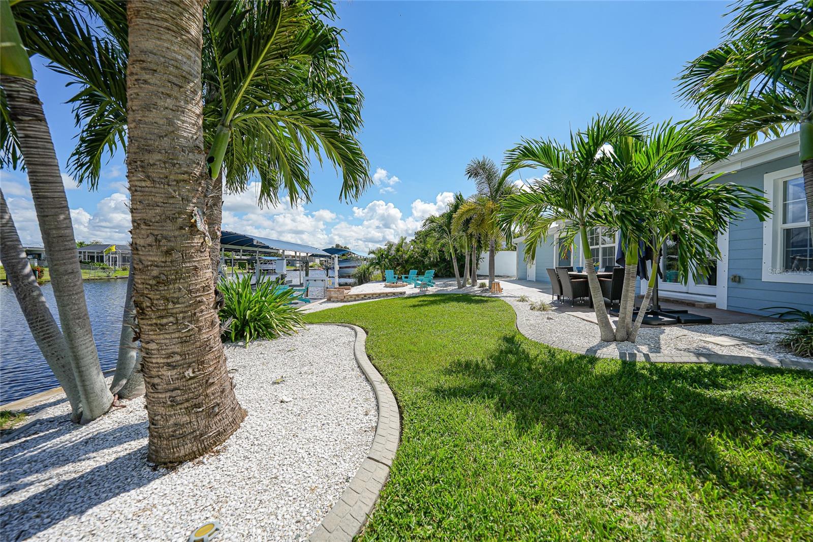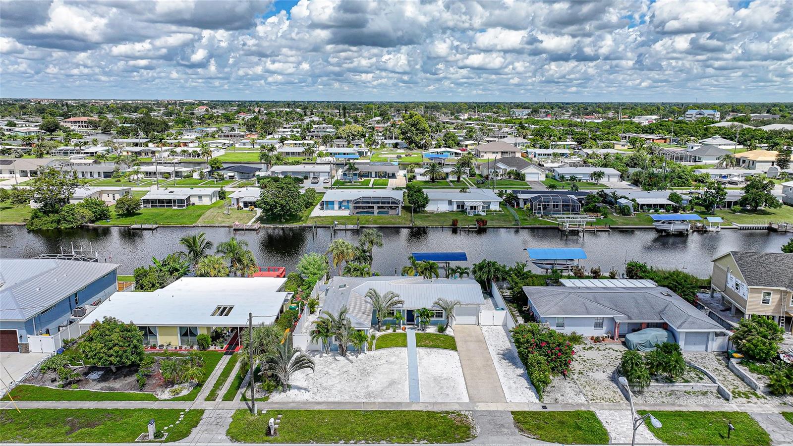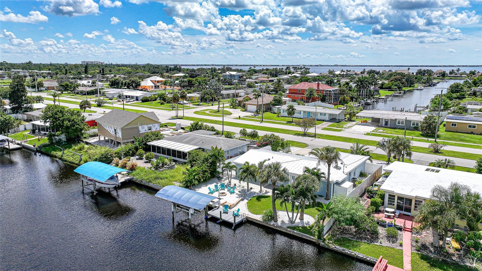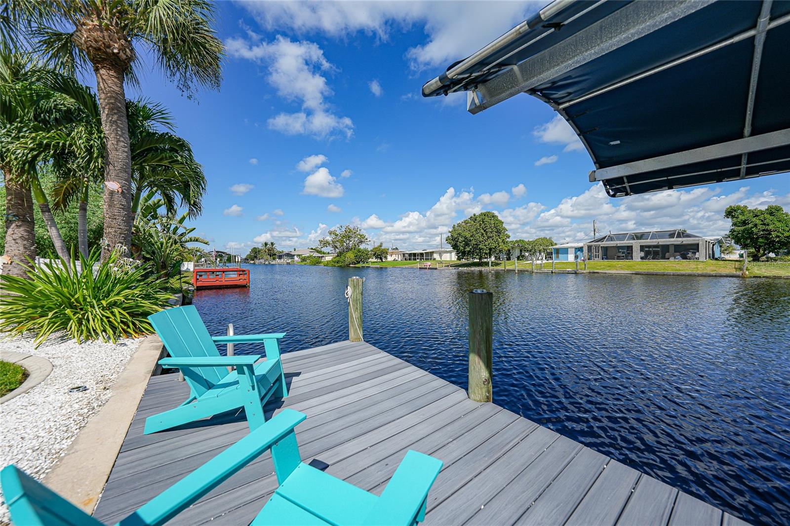 Welcome to your own slice of Florida paradise! This beautifully remodeled Key West–style, turnkey waterfront home offers 3 bedrooms, 2 bathrooms, and direct access to Charlotte Harbor—just minutes by boat to world-class fishing and boating, including Boca Grande Pass, famous for its tarpon fishing, and the Gulf of Mexico beyond. Step inside and immediately notice the pride of ownership. The spacious open living area showcases water views, while the master suite offers a roomy walk-in closet and all-new, tastefully updated bathroom. Both bathrooms shine with stylish finishes. The kitchen has been fully upgraded with shaker-style cabinets, soft-close doors and drawers, new granite countertops, tile backsplash, and stainless steel appliances. Fresh interior paint, new doors, baseboards, and case molding pair with tile flooring throughout the home to create a crisp, coastal feel. Updates give peace of mind, including a new electrical panel and power riser, upgraded windows, a durable metal roof, new soffit, fascia and gutters, and a new HVAC (2022). The dock features composite decking, new lift motors, aluminum lift cradles, and a new lift cover, making it ready for your boat and waterfront adventures. The property is wired for a generator and even includes a 30-amp RV hookup. The outdoor space was designed for true Florida living. The low-maintenance yard includes shell rock in front, while the private backyard oasis offers your own sandy beach with fire pit, tropical landscaping, privacy fencing, and a dock with underwater lighting to enjoy the snook at night. Perfectly located in the heart of Port Charlotte, you’ll have easy access to shopping, dining, beaches, golf, hospitals, and Sunseeker Resort—just 1.7 miles away. A quick trip over the Barron Collier Bridge takes you to downtown Punta Gorda and Fishermen’s Village for waterfront dining and entertainment. Whether it’s watching the sunset from your dock, relaxing with your toes in the sand, or exploring Charlotte Harbor by boat, this move-in ready home captures everything Florida living is all about. With countless upgrades including new lighting and fans (2025), new blinds (2025), shiplap-style stucco exterior (2023), and a transferable Sentricon termite protection guarantee, this property is a rare find. Call today for your private showing and start living the waterfront lifestyle you’ve been dreaming of.