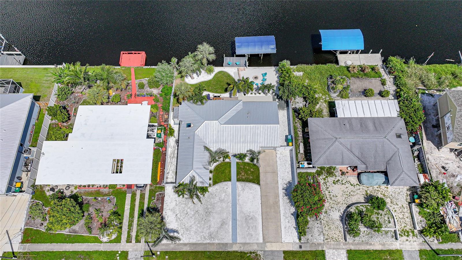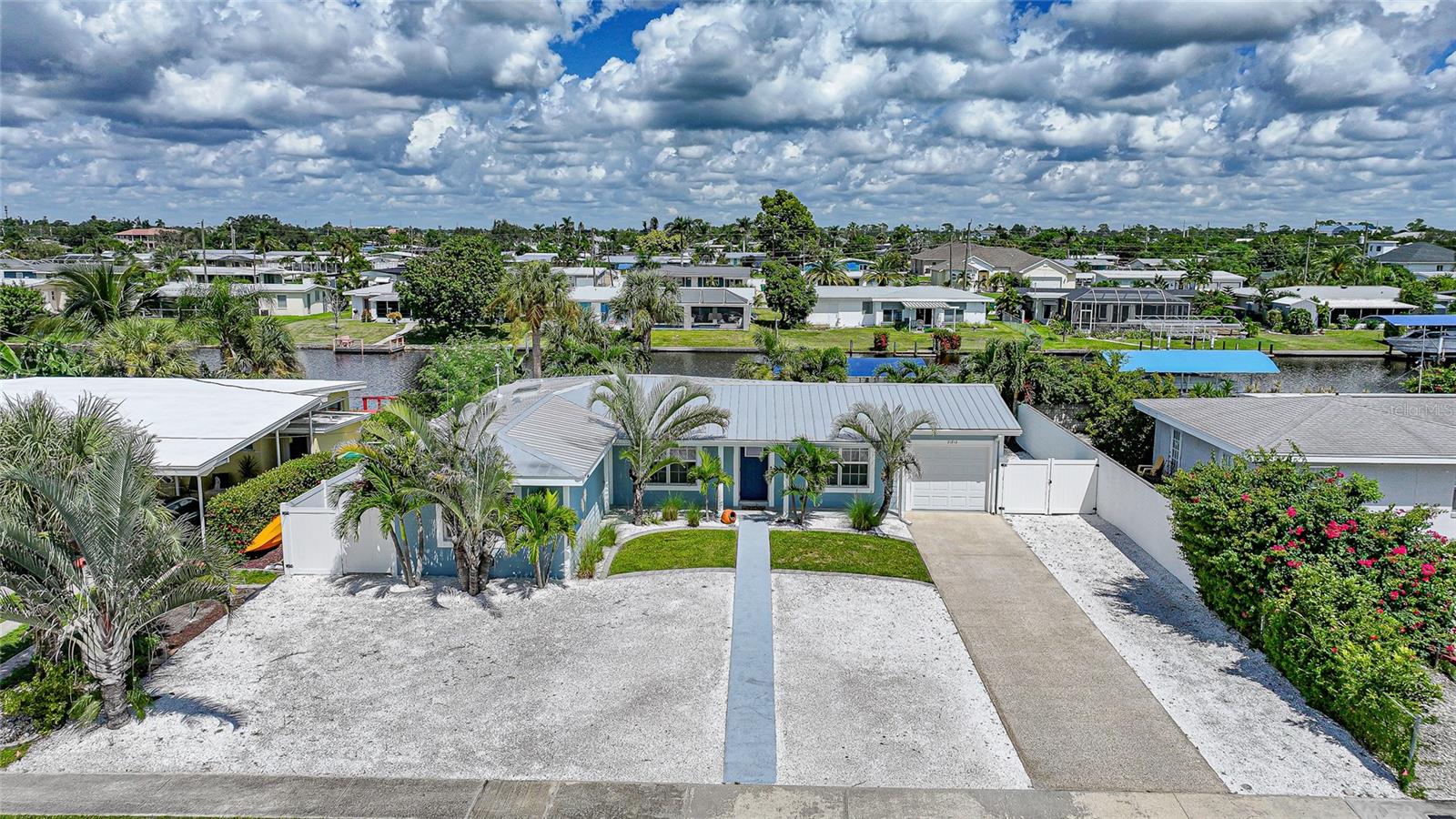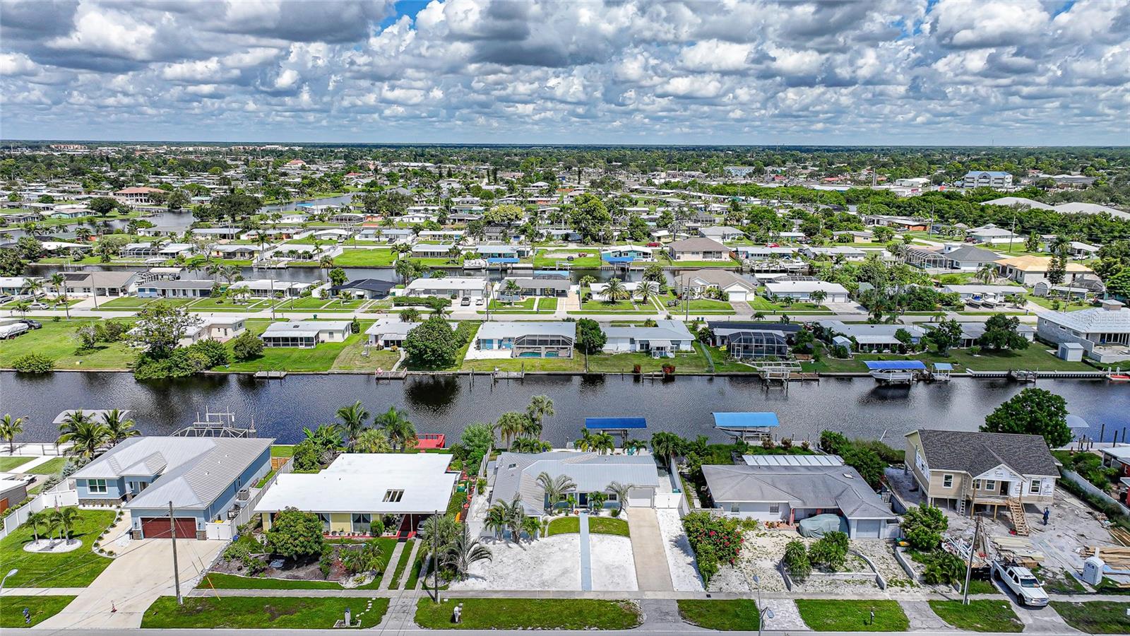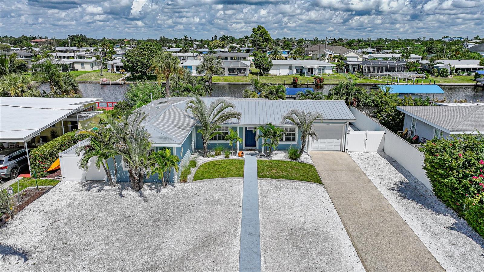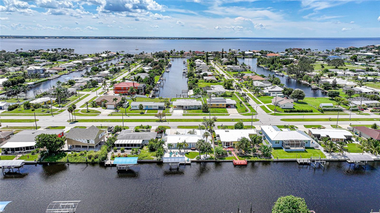 Welcome to your own slice of Florida paradise! This beautifully remodeled Key West–style, turnkey waterfront home offers 3 bedrooms, 2 bathrooms, and direct access to Charlotte Harbor—just minutes by boat to world-class fishing and boating, including Boca Grande Pass, famous for its tarpon fishing, and the Gulf of Mexico beyond. Step inside and immediately notice the pride of ownership. The spacious open living area showcases water views, while the master suite offers a roomy walk-in closet and all-new, tastefully updated bathroom. Both bathrooms shine with stylish finishes. The kitchen has been fully upgraded with shaker-style cabinets, soft-close doors and drawers, new granite countertops, tile backsplash, and stainless steel appliances. Fresh interior paint, new doors, baseboards, and case molding pair with tile flooring throughout the home to create a crisp, coastal feel. Updates give peace of mind, including a new electrical panel and power riser, upgraded windows, a durable metal roof, new soffit, fascia and gutters, and a new HVAC (2022). The dock features composite decking, new lift motors, aluminum lift cradles, and a new lift cover, making it ready for your boat and waterfront adventures. The property is wired for a generator and even includes a 30-amp RV hookup. The outdoor space was designed for true Florida living. The low-maintenance yard includes shell rock in front, while the private backyard oasis offers your own sandy beach with fire pit, tropical landscaping, privacy fencing, and a dock with underwater lighting to enjoy the snook at night. Perfectly located in the heart of Port Charlotte, you’ll have easy access to shopping, dining, beaches, golf, hospitals, and Sunseeker Resort—just 1.7 miles away. A quick trip over the Barron Collier Bridge takes you to downtown Punta Gorda and Fishermen’s Village for waterfront dining and entertainment. Whether it’s watching the sunset from your dock, relaxing with your toes in the sand, or exploring Charlotte Harbor by boat, this move-in ready home captures everything Florida living is all about. With countless upgrades including new lighting and fans (2025), new blinds (2025), shiplap-style stucco exterior (2023), and a transferable Sentricon termite protection guarantee, this property is a rare find. Call today for your private showing and start living the waterfront lifestyle you’ve been dreaming of.