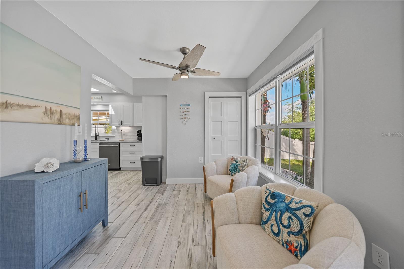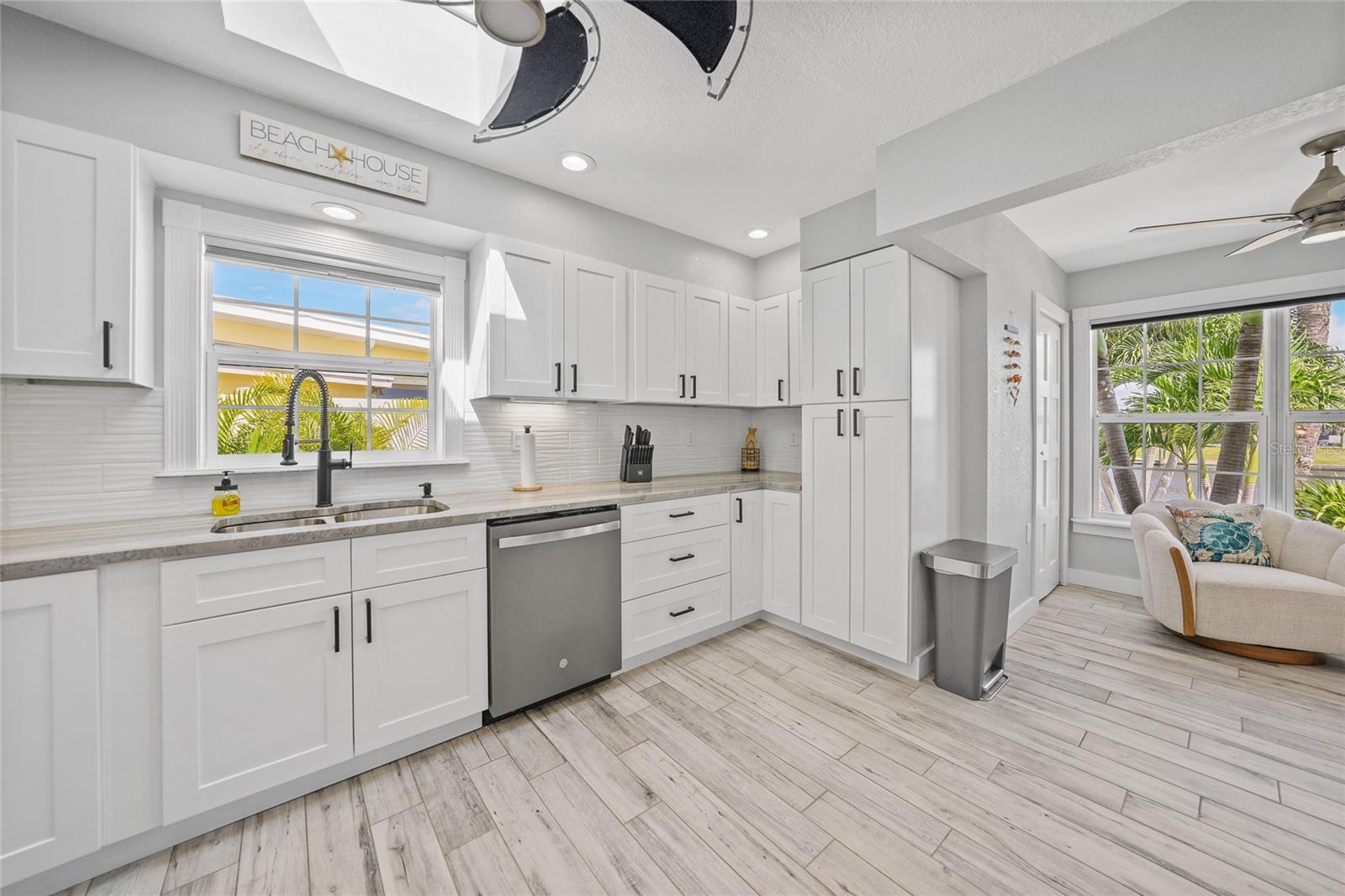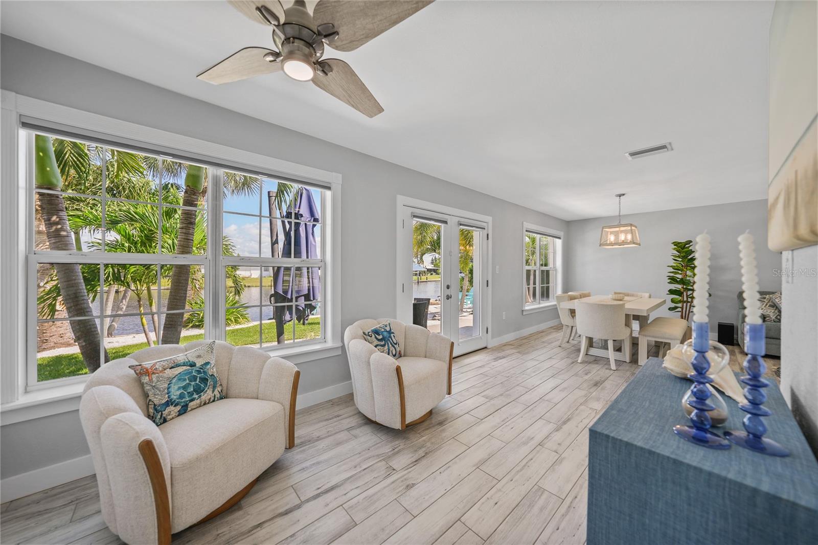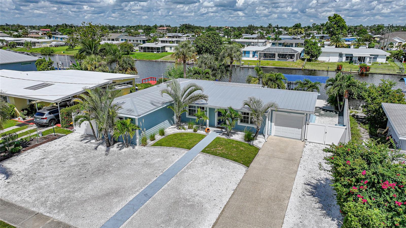 Welcome to your own slice of Florida paradise! This beautifully remodeled Key West–style, turnkey waterfront home offers 3 bedrooms, 2 bathrooms, and direct access to Charlotte Harbor—just minutes by boat to world-class fishing and boating, including Boca Grande Pass, famous for its tarpon fishing, and the Gulf of Mexico beyond. Step inside and immediately notice the pride of ownership. The spacious open living area showcases water views, while the master suite offers a roomy walk-in closet and all-new, tastefully updated bathroom. Both bathrooms shine with stylish finishes. The kitchen has been fully upgraded with shaker-style cabinets, soft-close doors and drawers, new granite countertops, tile backsplash, and stainless steel appliances. Fresh interior paint, new doors, baseboards, and case molding pair with tile flooring throughout the home to create a crisp, coastal feel. Updates give peace of mind, including a new electrical panel and power riser, upgraded windows, a durable metal roof, new soffit, fascia and gutters, and a new HVAC (2022). The dock features composite decking, new lift motors, aluminum lift cradles, and a new lift cover, making it ready for your boat and waterfront adventures. The property is wired for a generator and even includes a 30-amp RV hookup. The outdoor space was designed for true Florida living. The low-maintenance yard includes shell rock in front, while the private backyard oasis offers your own sandy beach with fire pit, tropical landscaping, privacy fencing, and a dock with underwater lighting to enjoy the snook at night. Perfectly located in the heart of Port Charlotte, you’ll have easy access to shopping, dining, beaches, golf, hospitals, and Sunseeker Resort—just 1.7 miles away. A quick trip over the Barron Collier Bridge takes you to downtown Punta Gorda and Fishermen’s Village for waterfront dining and entertainment. Whether it’s watching the sunset from your dock, relaxing with your toes in the sand, or exploring Charlotte Harbor by boat, this move-in ready home captures everything Florida living is all about. With countless upgrades including new lighting and fans (2025), new blinds (2025), shiplap-style stucco exterior (2023), and a transferable Sentricon termite protection guarantee, this property is a rare find. Call today for your private showing and start living the waterfront lifestyle you’ve been dreaming of.