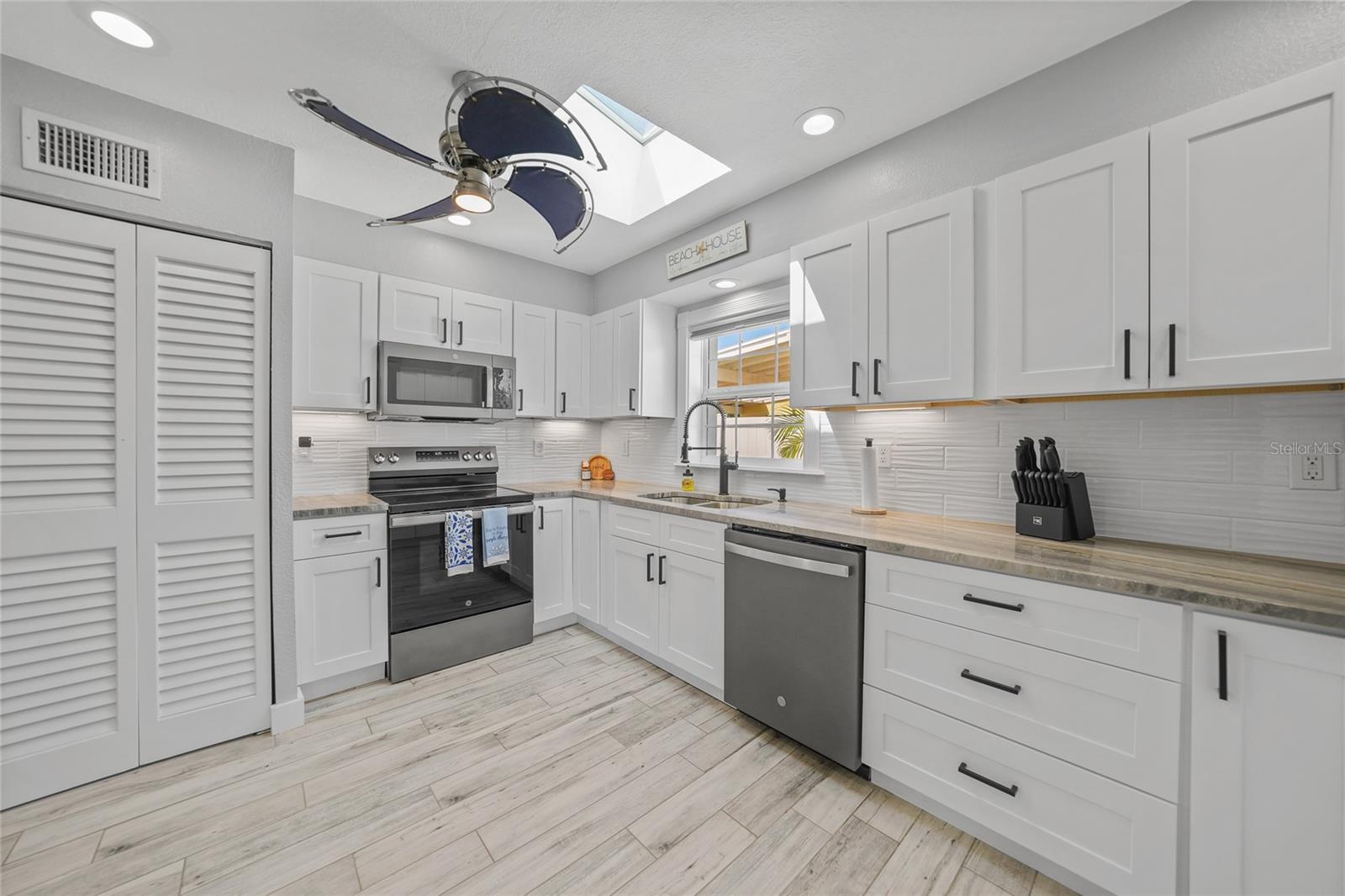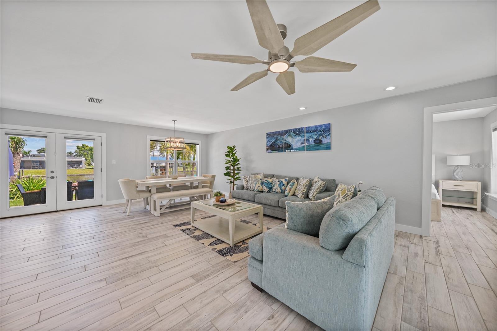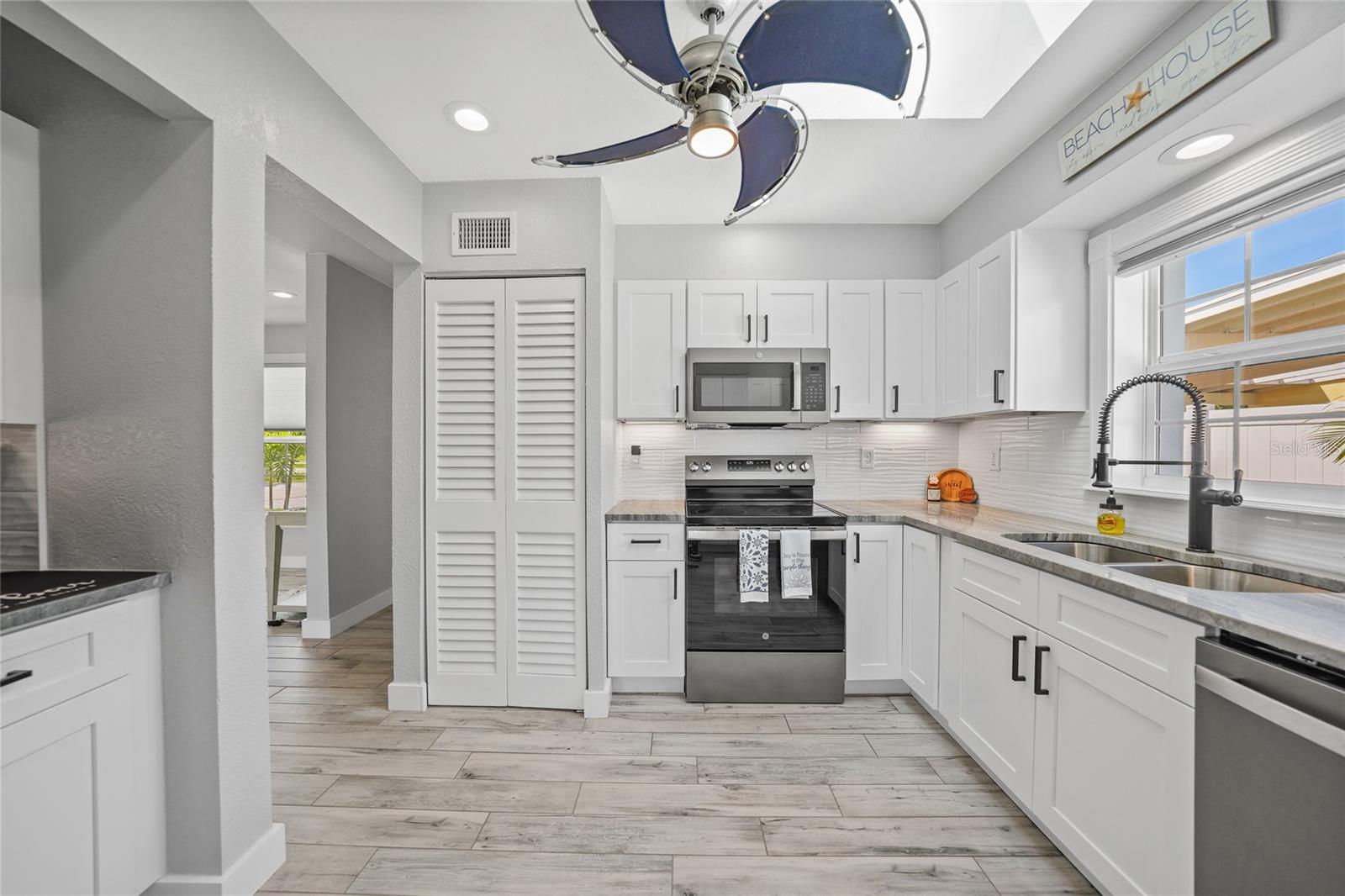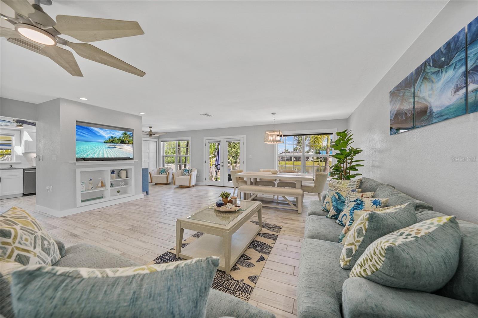 Welcome to your own slice of Florida paradise! This beautifully remodeled Key West–style, turnkey waterfront home offers 3 bedrooms, 2 bathrooms, and direct access to Charlotte Harbor—just minutes by boat to world-class fishing and boating, including Boca Grande Pass, famous for its tarpon fishing, and the Gulf of Mexico beyond. Step inside and immediately notice the pride of ownership. The spacious open living area showcases water views, while the master suite offers a roomy walk-in closet and all-new, tastefully updated bathroom. Both bathrooms shine with stylish finishes. The kitchen has been fully upgraded with shaker-style cabinets, soft-close doors and drawers, new granite countertops, tile backsplash, and stainless steel appliances. Fresh interior paint, new doors, baseboards, and case molding pair with tile flooring throughout the home to create a crisp, coastal feel. Updates give peace of mind, including a new electrical panel and power riser, upgraded windows, a durable metal roof, new soffit, fascia and gutters, and a new HVAC (2022). The dock features composite decking, new lift motors, aluminum lift cradles, and a new lift cover, making it ready for your boat and waterfront adventures. The property is wired for a generator and even includes a 30-amp RV hookup. The outdoor space was designed for true Florida living. The low-maintenance yard includes shell rock in front, while the private backyard oasis offers your own sandy beach with fire pit, tropical landscaping, privacy fencing, and a dock with underwater lighting to enjoy the snook at night. Perfectly located in the heart of Port Charlotte, you’ll have easy access to shopping, dining, beaches, golf, hospitals, and Sunseeker Resort—just 1.7 miles away. A quick trip over the Barron Collier Bridge takes you to downtown Punta Gorda and Fishermen’s Village for waterfront dining and entertainment. Whether it’s watching the sunset from your dock, relaxing with your toes in the sand, or exploring Charlotte Harbor by boat, this move-in ready home captures everything Florida living is all about. With countless upgrades including new lighting and fans (2025), new blinds (2025), shiplap-style stucco exterior (2023), and a transferable Sentricon termite protection guarantee, this property is a rare find. Call today for your private showing and start living the waterfront lifestyle you’ve been dreaming of.