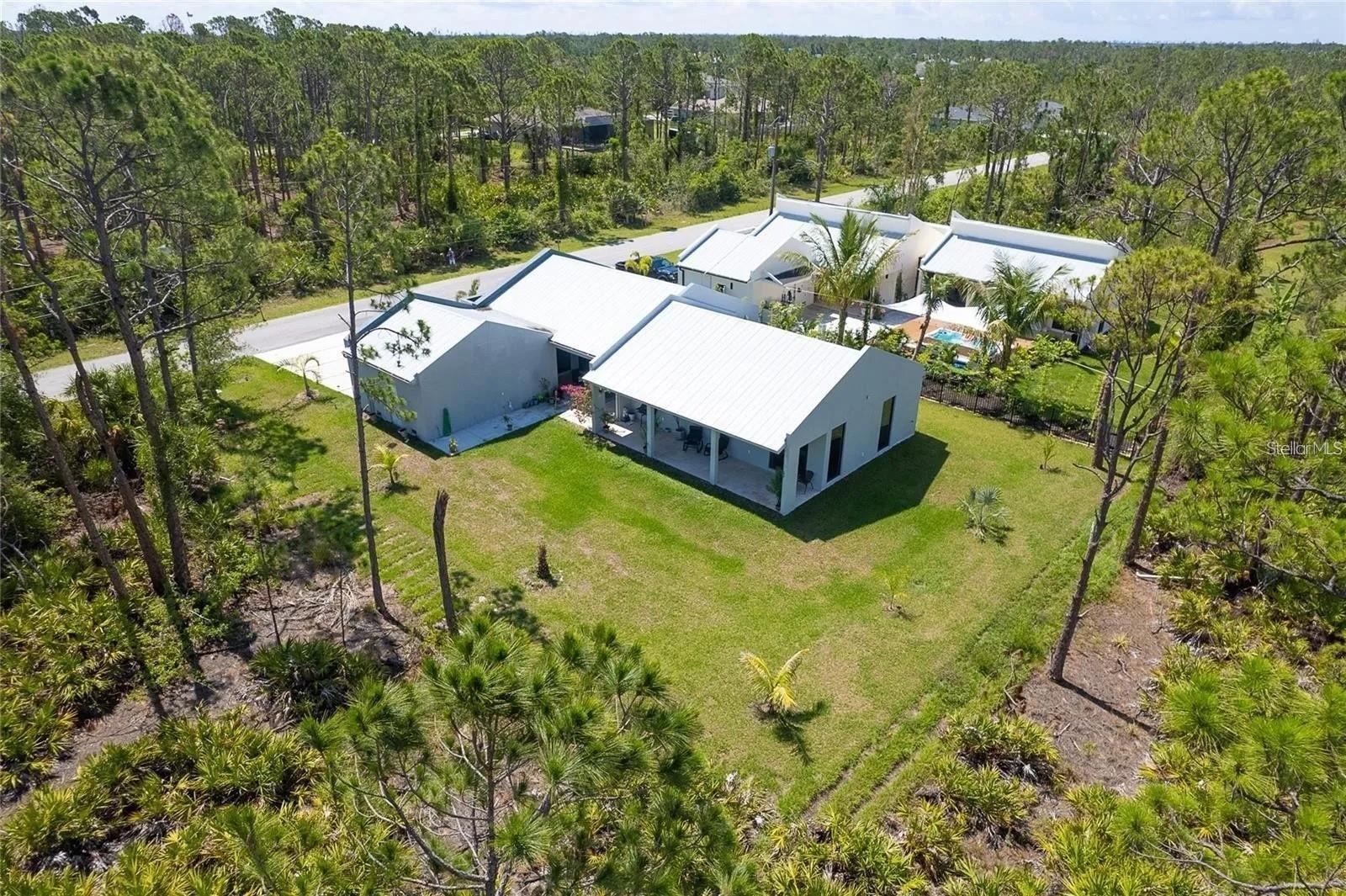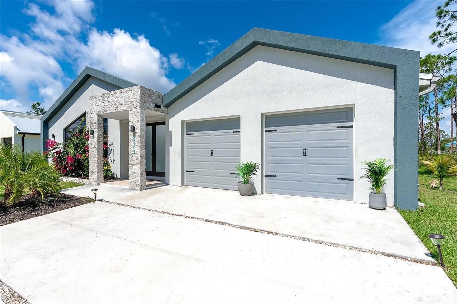 Modern Luxury Meets Coastal Serenity in Southwest Florida Step into unparalleled luxury with this fully furnished, custom-designed steel-frame home, where sleek modern architecture seamlessly blends with the natural beauty of Southwest Florida. Completed in 2021, this single-level residence offers three bedrooms, two and a half bathrooms, and a spacious two-car garage—all thoughtfully constructed with contemporary style, structural integrity, and lasting quality in mind. Tucked away in a quiet, well-maintained neighborhood, the home offers a peaceful retreat that feels both private and connected. Inside, the open-concept floor plan effortlessly merges living, dining, and kitchen spaces, creating a fluid environment perfect for both everyday living and entertaining. High ceilings and expansive windows fill the home with natural light, while refined design elements throughout create a sense of relaxed sophistication. The living area invites comfort and style with a modular sofa arrangement, elegant electric fireplace, and carefully curated furnishings that are both functional and beautiful. The kitchen stands as the heart of the home, featuring sleek quartz countertops, a striking waterfall island, stainless steel appliances, and French glass doors that open gracefully to the outdoors. Whether you’re preparing a quiet dinner or hosting guests, this space is designed to inspire. Retreat to the tranquil primary suite, where sunlight filters in through large windows and a spa-inspired ensuite bathroom awaits, complete with dual vanities, quartz countertops, LED mirrors, and a custom tile walk-in shower. The additional bedrooms offers comfort and versatility for family, guests, or home office use, with each space echoing the same high standards of design and finish found throughout the home. A thoughtfully placed half bath adds convenience, while a fully equipped laundry room enhances functionality. Throughout the home, tile flooring offers clean lines and easy maintenance, while the metal roof and high-impact windows provide durability, energy efficiency, and peace of mind during Florida’s seasonal weather. Every finish, fixture, and piece of décor has been carefully selected to create a cohesive, move-in-ready experience that feels both luxurious and welcoming. Outside, two covered lanais extend the living space and offers the perfect setting to enjoy morning coffee, evening cocktails, or simply soak in the year-round sunshine. Surrounded by quiet beauty and minimal upkeep, the property provides the ideal setting for embracing the Florida lifestyle. Located just minutes from the world-class golf courses of Rotonda West, the light sand beaches of Boca Grande and Manasota Key, and only 1.5 miles from Publix and everyday conveniences, this home offers a rare blend of serenity, sophistication, and accessibility. Whether you’re looking for a full-time residence, seasonal escape, or turnkey investment opportunity, this modern coastal home delivers the best of Southwest Florida living—fully furnished, exquisitely finished, and ready for you to move in and enjoy..