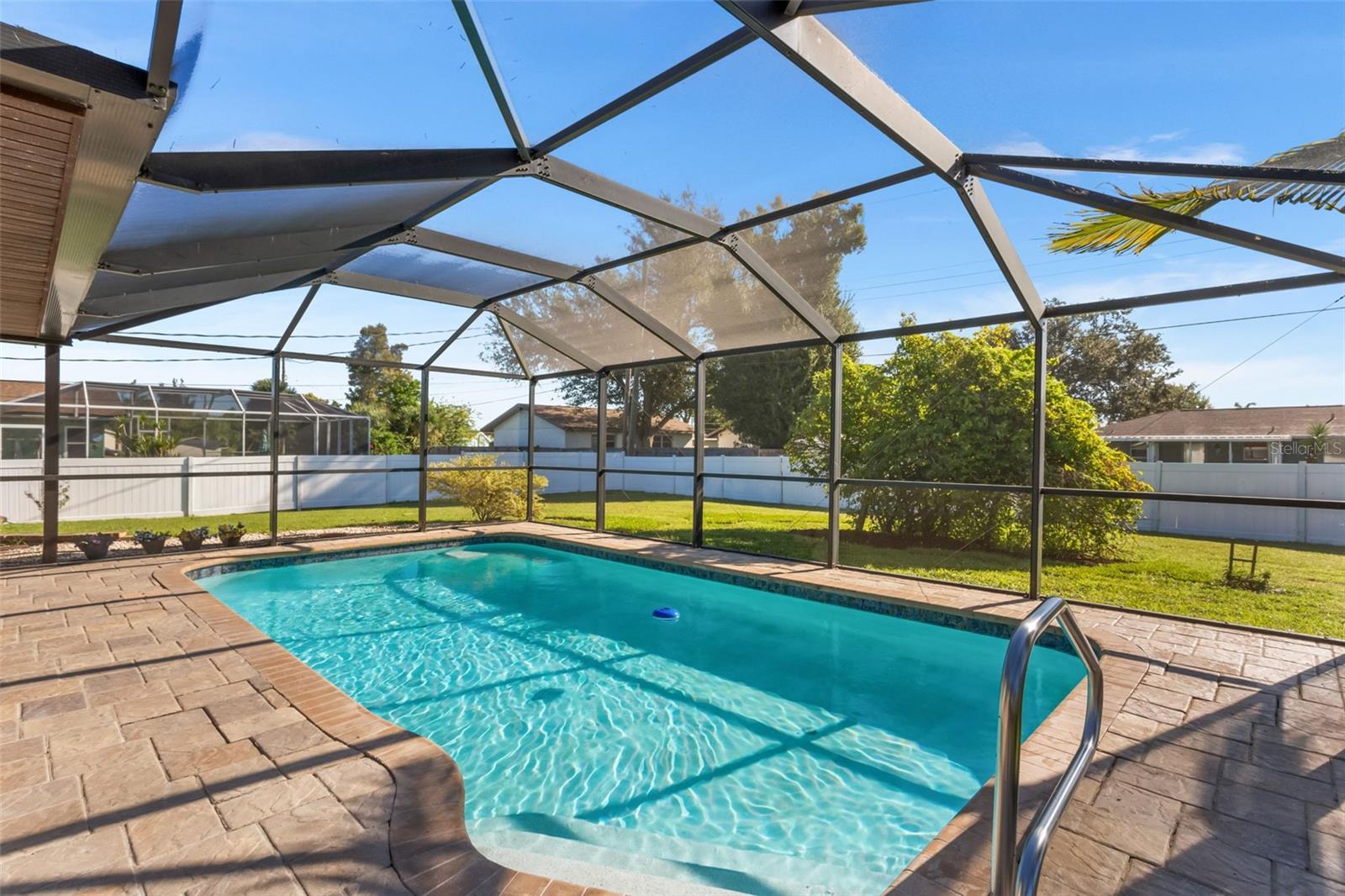Price Reduction! Seller offering $3,000.00 towards Buyer's Closing Costs. Welcome to this Beautiful 2 Bedroom, 2 Bathroom, 2 Car Garage home with an In-Ground Pool and Fully Fenced in Back Yard! This home features many high value upgrades such as remodeled Bathrooms, Newer Kitchen Appliances, Impact Windows, a Newer Roof (December 2023), Water Heater (2024) and Laminate Flooring throughout! This home offers a Hallway entrance with niche to accommodate an entrance table or Hall Bench along with a Coat Closet for additional storage! Once in the Living Room, enjoy the volume of the cathedral ceilings and a neutral color palate of the walls and flooring contrasted by colorful accents and elegant window coverings that create an inviting atmosphere! Wander into the spacious open concept dining area while enjoying views of the sparkling pool through the sliding glass door! In the Kitchen, you'll find newer Stainless-Steel appliances, brilliant white countertops offering plenty of space for food prep and cooking, overhead colorful ambient lighting and a great Pantry! Enjoy privacy and separation from your family and guests with a Split Bedroom Floorplan. The Primary Suite boasts ample space to accommodate large bedroom furniture and is filled with an abundance of natural light! The Primary En-Suite Bathroom is Fully Remodeled and is Stunning! Stylish finishes Adorn each space from carefully chosen penny tile for the shower floor to the gorgeous vessel sink atop shimmering tiled countertops! All finishes are neutral, light and bright! Additionally, the Primary Suite offers a spacious walk-in closet and a hall closet for additional storage! Across the home is a Fully Remodeled Guest Bathroom with Brilliant attractive finishes that will be appreciated! Neutral multi-color Hexagonal tiled flooring catches your attention as your eye pans to a gleaming New tub and tile surround and another vessel style sink to give a luxurious feel! In the Guest Bedroom, Neutral light flooring continues reflecting an abundance of natural light! This room also features a spacious Walk-in Closet! This home design was well planned with a sizable laundry room complete with an additional area for overflow pantry items or storage! The 2 Car Garage with Hurricane Rated Door offers an abundance of additional storage or plenty of room for vehicles and power toys! Step outside for the Show-Stopping lanai and In-Ground Pool (2021)! Surrounded by updated pavers, Enjoy the dazzling, sparkling water from your own Private swimming pool! Complete with a Full Screen Enclosure, this swimming pool is a Must Have! Also enjoy the Large Outdoor Covered Dining Area, also a Must Have for SWFL! Beyond the Pool, a Roomy, Fully Fenced-in Backyard helps to add privacy, security, and a great space for little ones (Furry or Not) to enjoy! This home is excellent for all types of buyers! This a great retirement home, family home or investment opportunity! Start living your Best SWFL lifestyle today!