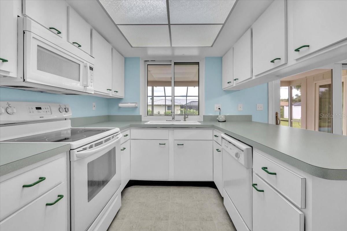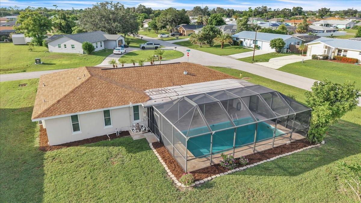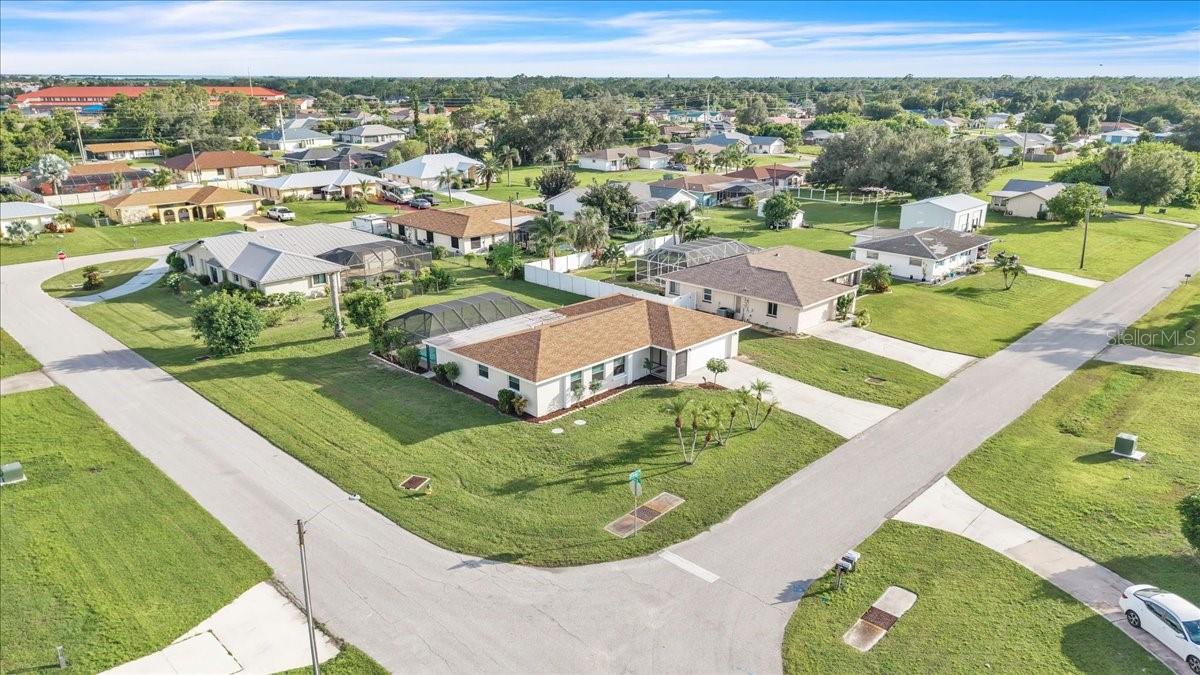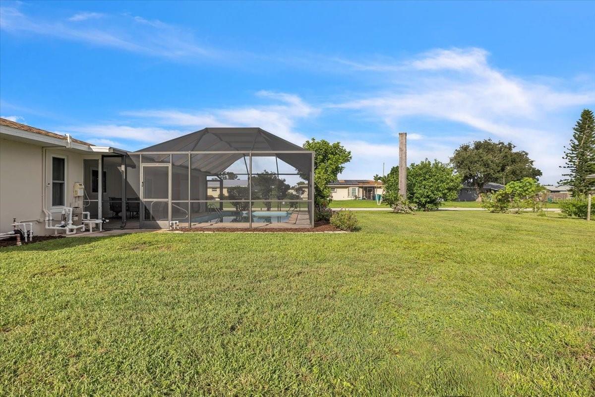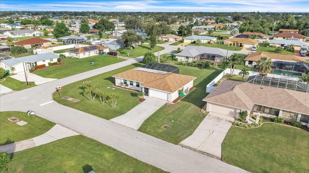 Don't miss this incredible opportunity to own a beautiful 3-bedroom, 2-bathroom pool home with an attached garage, ideally situated on an oversized corner lot in the heart of Port Charlotte. Offering 1,360 square feet of well-designed living space, the home blends comfort and functionality throughout. Step through the foyer into a spacious and inviting living/dining area with a mix of tile and carpeted flooring throughout and sliding glass doors open directly to the screened-in pool and lanai—perfect for effortless indoor-outdoor living and entertaining. Adjacent to the living room is a dedicated dining space, providing a comfortable setting for family meals or gatherings. The kitchen features a clean and bright design with a functional layout. White cabinetry with green handles adds a subtle pop of color, while light gray countertops provide plenty of workspace. The appliances, including a stove, refrigerator, microwave, and dishwasher, are all in white, blending seamlessly with the cabinetry for a cohesive look. A large window over the sink allows natural light to fill the space and offers a pleasant view of the backyard and pool area. Soft blue walls create a refreshing contrast against the white finishes, giving the kitchen a cheerful and airy atmosphere. This kitchen is designed for both practicality and charm, making it a welcoming space for everyday cooking and entertaining. The primary suite is a peaceful retreat, complete with private pool access, two large built-in closets, and tiled walk-in shower. Two additional bedrooms are generously sized (one with pool access) and share a conveniently located full bathroom. The inviting screened-in pool area is the ultimate outdoor retreat, perfect for year-round Florida living. The sparkling pool is surrounded by a spacious, stamped-concrete deck with plenty of room for lounge chairs or dining sets. A covered lanai provides shaded seating, making it ideal for entertaining or simply relaxing poolside. The full screened enclosure keeps the space open and breezy while protecting against insects and debris, ensuring a low-maintenance outdoor oasis. With peaceful views of the backyard and surrounding greenery, this pool area offers the perfect blend of comfort and resort-style living right at home. Additional features oversized attached 2 car garage that includes laundry room with washer/dryer, utility sink and an abundance of storage, A/C (2017), shingle roof (2024), spray foam insulation in the attic. Located in an established neighborhood, this home is just minutes from Port Charlotte Beach Park, where you'll find a public beach, boat ramp, picnic areas, tennis courts, and more. Enjoy easy access to US-41, I-75, shopping, dining, hospitals, and top-rated local parks and beaches. This is your chance to own a piece of waterfront paradise—schedule your showing today! **PLEASE ENJOY THE 3D INTERACTIVE VIRTUAL TOUR ASSOCIATED WITH THIS LISTING**