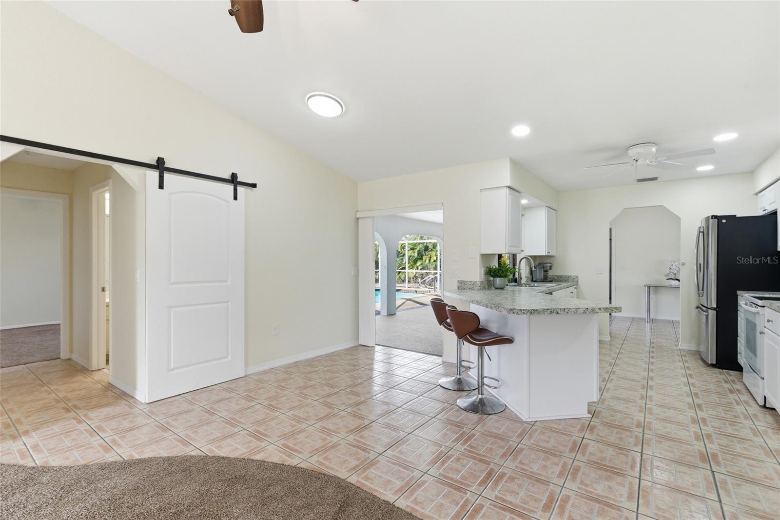 Welcome to this Charming Waterfront 3 Bedroom, 2 Bathroom, 2 Car Garage, pool home with a Family room, situated on an OVERSIZED CORNER LOT in Port Charlotte. NO HOA FEES & NO FLOOD REQUIRED! CLICK ON THE VIRTUAL TOUR LINK 1 FOR THE VIDEO AND VIRTUAL LINK 2 FOR THE 3D TOUR. Nestled along a freshwater canal with 103 feet of water frontage, this home offers a serene setting with plenty of potential. Step inside to find a spacious living room that seamlessly flows into the dining area, creating an inviting space for entertaining family and friends. The kitchen comes complete with all appliances, abundant countertop space, a convenient service window to the lanai, a breakfast bar, and a cozy dinette area. Adjacent to the kitchen, the family room expands the living and entertaining space, and features a glass slider leading out to the lanai. The master bedroom is generously sized and includes a walk-in closet and an en-suite bathroom with a walk-in shower and a single sink vanity. The guest bedrooms are thoughtfully arranged on a split floor plan, ensuring privacy, with walk-in closets and a shared bathroom nearby with lanai access. The covered lanai is the perfect spot to sip your morning coffee or unwind with an evening beverage, with plenty of room for entertaining. Enjoy a private screened pool with plenty of room for soaking up the sun from the pool deck. The large backyard is fully fenced and landscaped, providing plenty of room for gardening, outdoor activities, or expanding your entertainment space. Plus, you have access to the freshwater canal, perfect for fishing and enjoying the outdoors. Conveniently close to US-41, 776 & I-75 for easy access to local favorites such as Fishermen’s Village, Sun Seeker Resort, Ponce De Leon Park, shopping & boutiques, fine & casual dining, and LIVE entertainment. Schedule your showing TODAY!