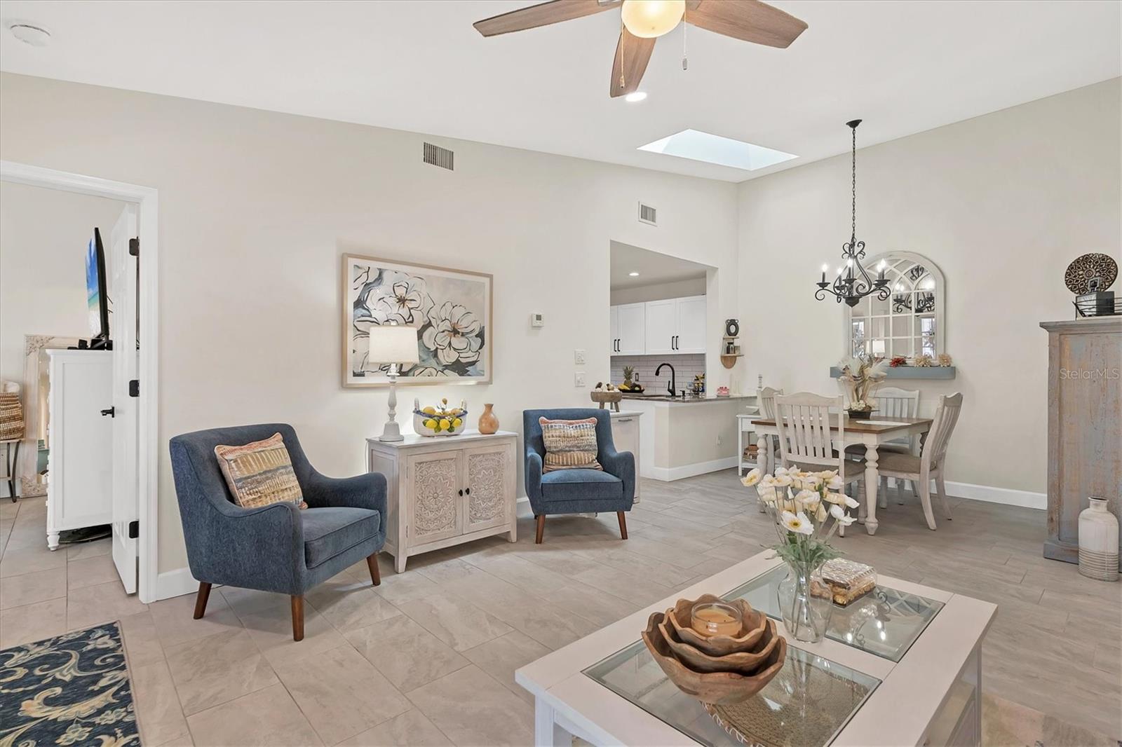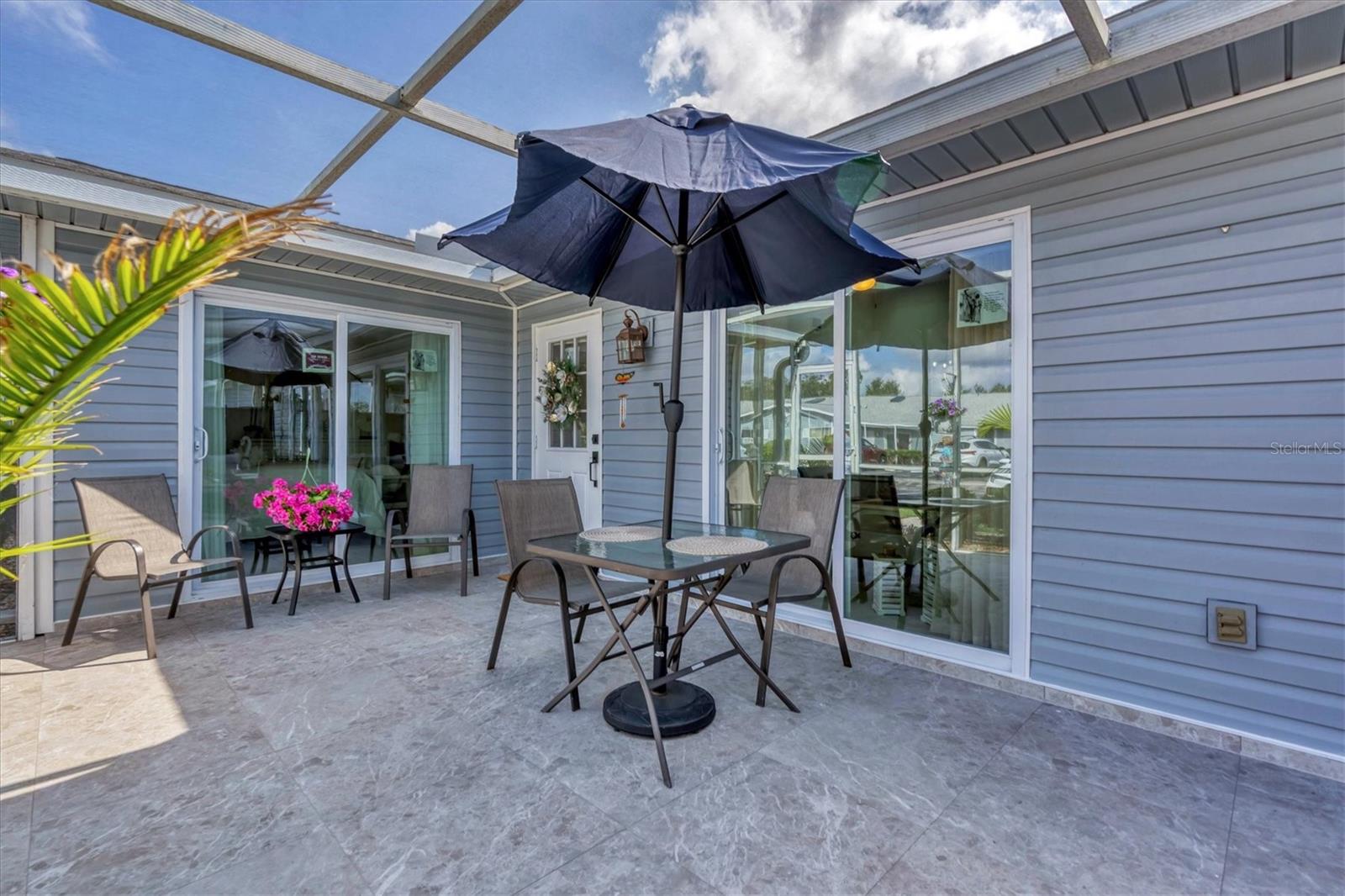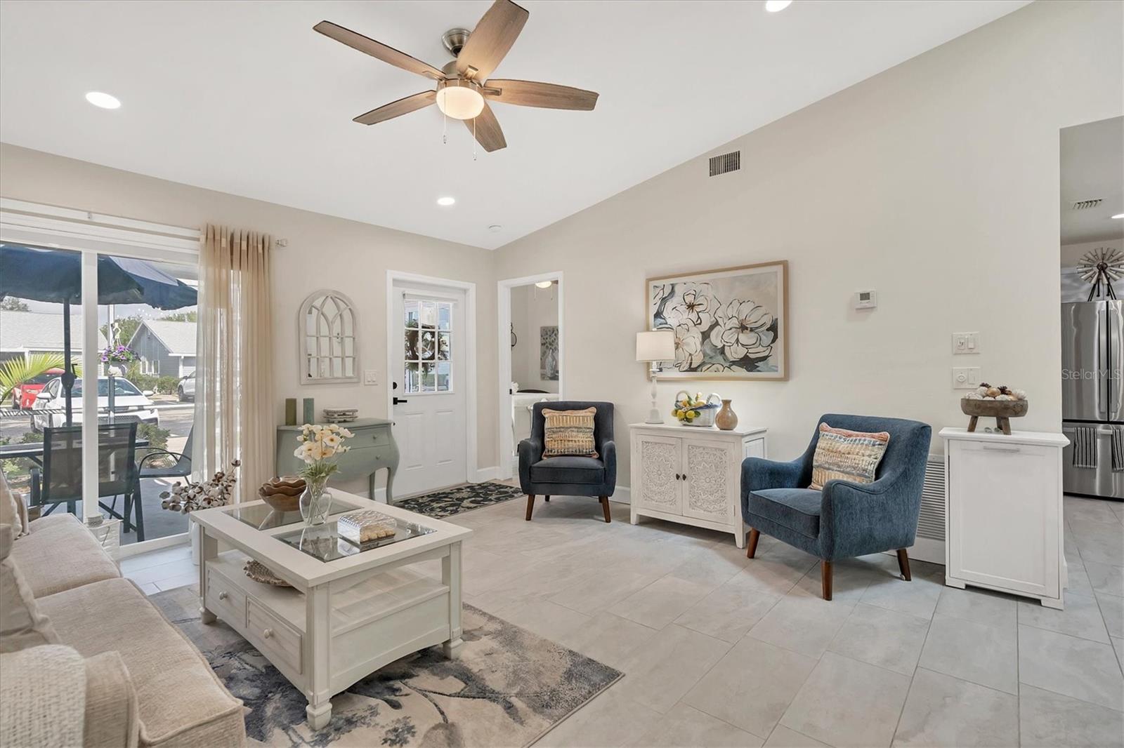 Enjoy living in this Luxury Villa with an upscale contemporary remodel at a great price! Nothing to do after your purchase but experience the elegance and modern comfort in this fully remodeled villa, featuring high-end finishes and impeccable design. From the gourmet kitchen to the spa-like bathrooms, every detail has been thoughtfully upgraded to create a stylish and functional living space. A classic renovation with premium materials and designer touches throughout. The kitchen has brand-new wood cabinets for a sleek and timeless look. Stunning quartzite countertops with a subway tile backsplash for a contemporary feel. Newer stainless steel appliances for a high-end cooking experience. Upon entering you will notice the consistent porcelain tile flooring throughout all living areas, including bedrooms for a seamless and elegant flow. The Primary Bathroom has an entry barn door for a modern and space-saving touch, custom glass shower door enhancing the luxurious feel, marble shower floors and subway tile shower walls and vanity surround. The guest bathroom also has a custom shower door, marble shower flooring and marble shower walls for an elegant look. The entry and bedroom doors feature bronze ergonomic lever handles for both style and functionality. All sliding glass doors are hurricane impact-rated, providing safety and peace of mind. Consistent designer ceiling fans throughout the home for a cohesive aesthetic. The 5.25-inch baseboards add a refined finishing touch to every room. This decked-out villa combines high-end materials, luxurious finishes, and hurricane-impact upgrades, new roof, new insulated vinyl siding, 2021 AC, updated electrical panel and a new skylight making it the perfect place to call home. The location is close to all your shopping and entertainment needs. This villa could provide a great income opportunity as a seasonal rental. Come see this stunning move-in ready, packed with value villa and make it yours!
